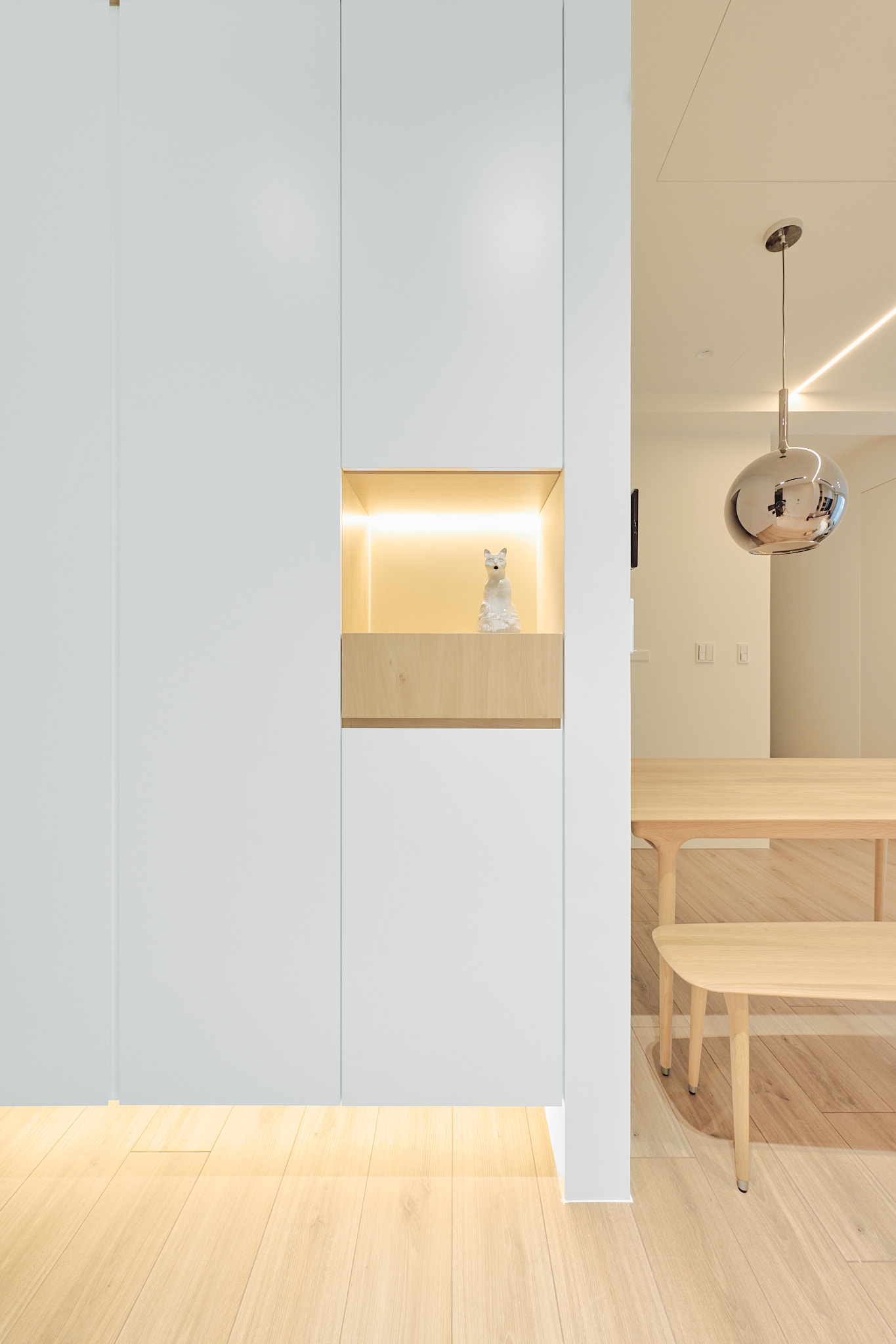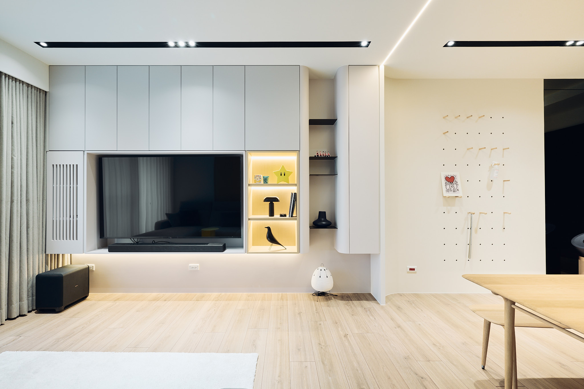 This project reimagines contemporary living through modular adaptability, spatial precision, and a human-centric design philosophy. Conceived for multigenerational families, the interior balances private and shared zones while embracing seamless integration with its architectural context. Existing structural beams and corners are intelligently transformed into multifunctional storage, merging AV systems, display shelving, and concealed compartments in a cohesive visual language.A refined palette of light-toned wood and soft neutrals promotes psychological comfort, while promoting flexibility and long-term relevance. Sustainability is addressed through material durability, efficient circulation, and passive lighting strategies. The result is a space that flows intuitively—safe, enduring, and emotionally resonant.Marrying innovation with simplicity, the design elevates everyday life into a quietly sophisticated experience—where elegance is not imposed, but embedded in the details.
