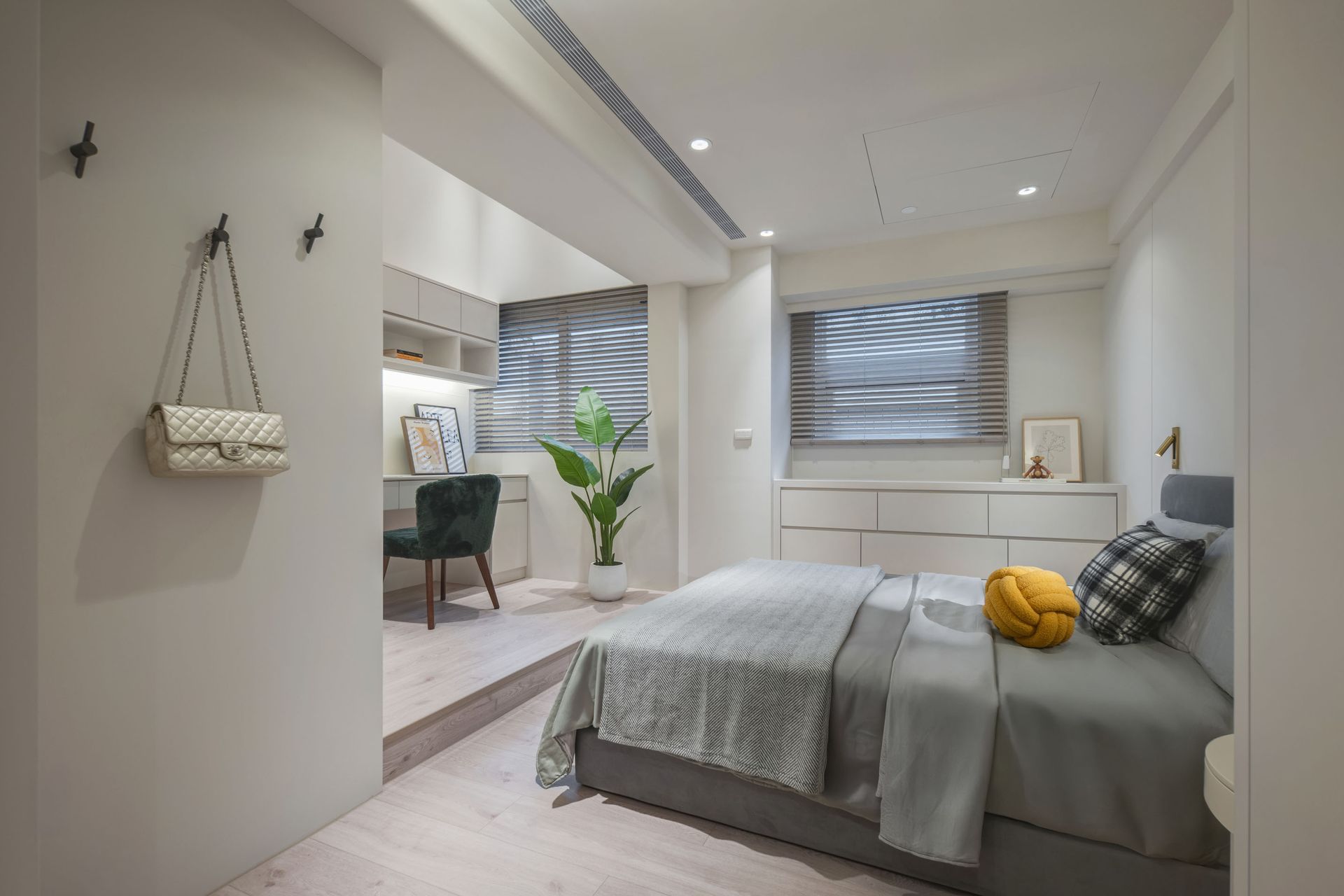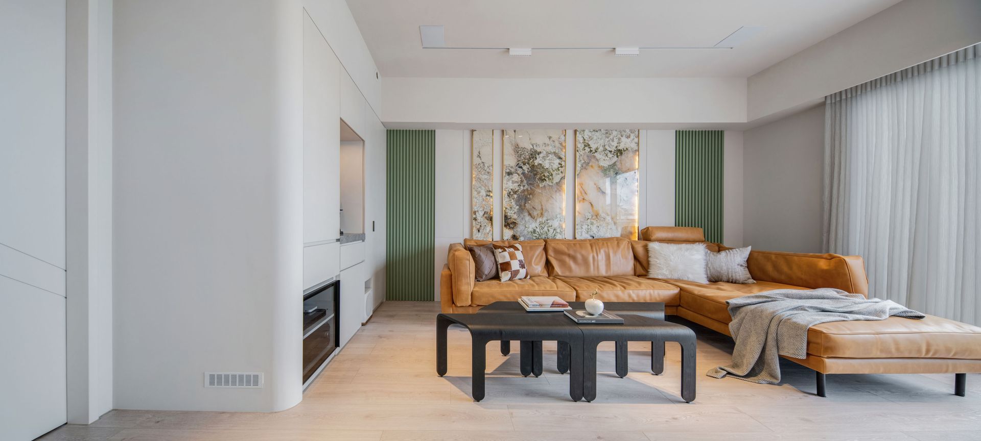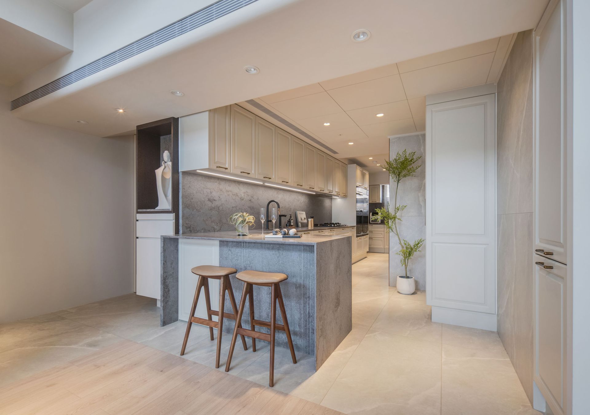Located on a high floor, this residence incorporates several passive and active strategies to enhance thermal comfort and energy efficiency. A thermal insulation blanket was added beneath the rooftop to significantly reduce indoor heat gain. The use of Low-E glass further prevents external heat from penetrating the interior, contributing to improved energy performance. Given the home’s exposure to intense eastern and western sunlight, ventilation design plays a critical role—push-out windows were installed to harness prevailing winds and promote natural air circulation, effectively cooling the space and improving airflow efficiency. Existing window openings were retained and paired with double-height spatial planning to enhance natural daylighting throughout the home.