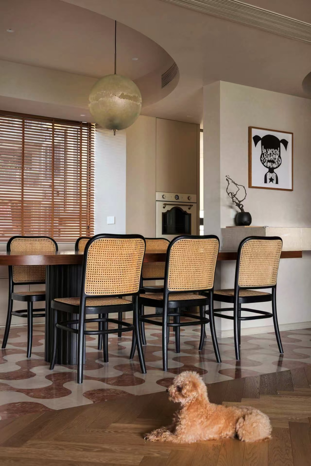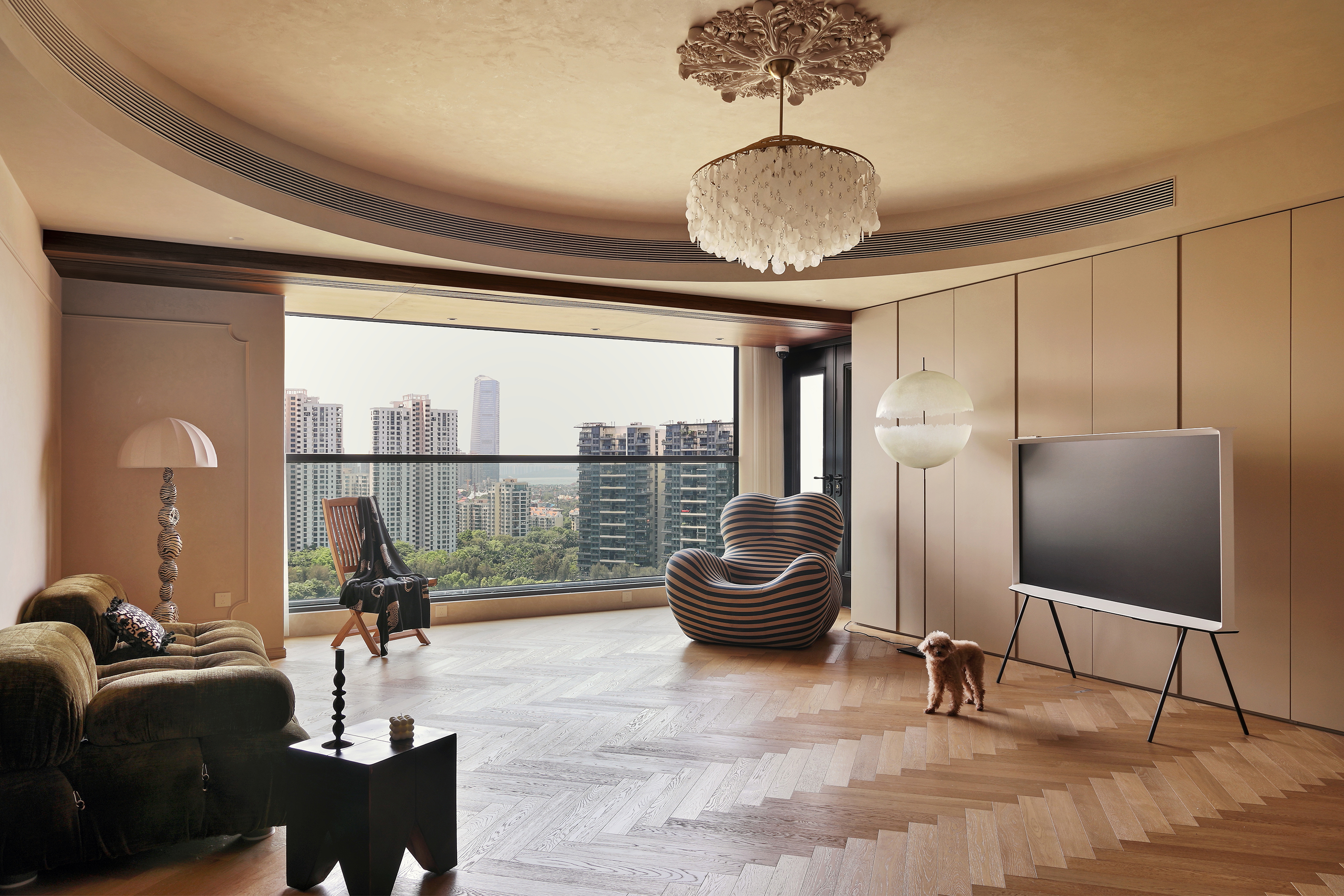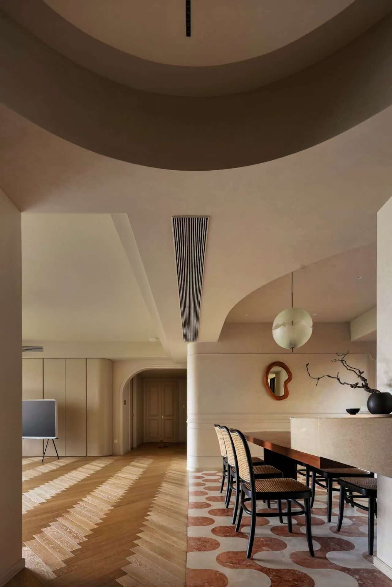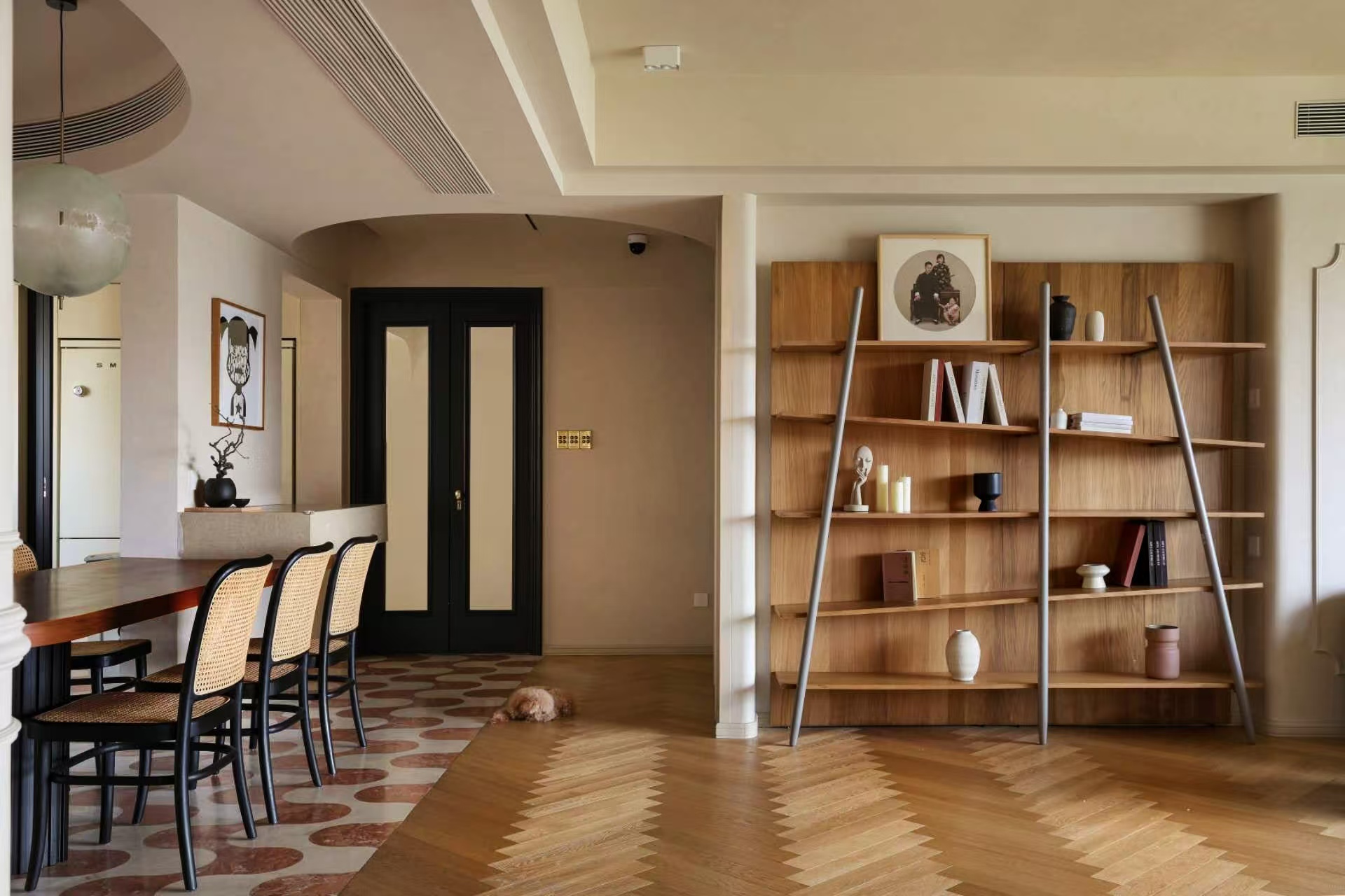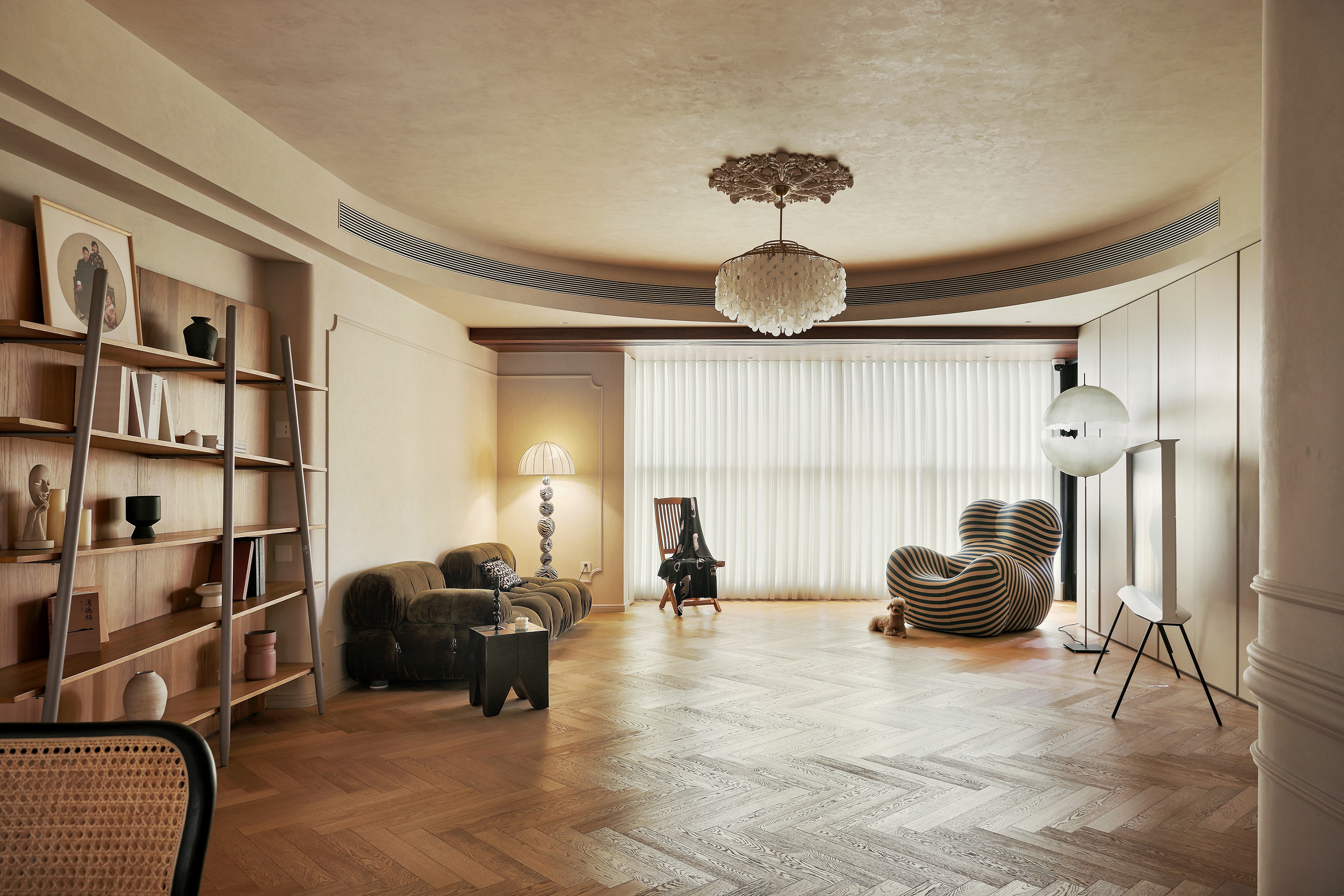 Chris Dépôt, a 169m² private house in Shenzhen, China, was fully executed by emerging design firm Sanpu Design. Using French Mid-Century Aesthetics as its medium, the project’s core intent is to construct a temporal dialogue across past, present, and future while revitalizing vintage design with contemporary relevance.