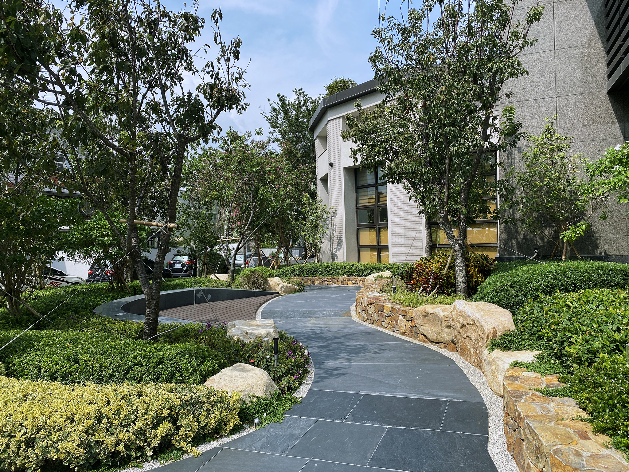 5. Secret Trail through the Forest - the shady Liquidambar trail running through the forests forms a tree-lined visual axis. People sitting here can see the mountains in distance and meditate while waiting for the children after school.