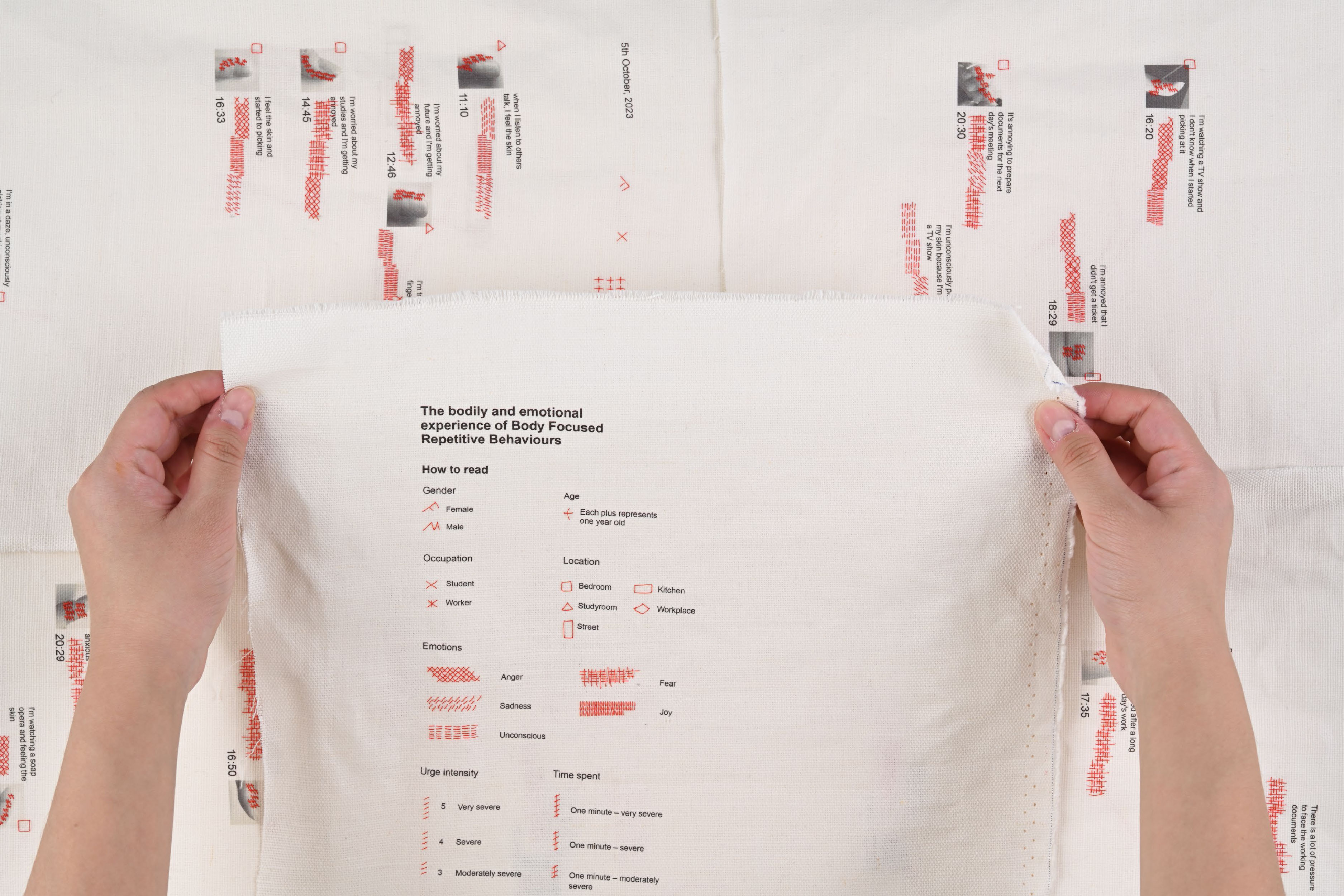 This project aims to explore the connection between marginalised groups in society and the relationship between illness and emotions, using an emotional data language to provide psychological support for Body-Focused Repetitive Behaviours (BFRBs). BFRBs refer to compulsive behaviours such as skin picking, hair pulling, and other actions that often result in bodily harm. Many people conceal this issue out of fear of societal judgment.
