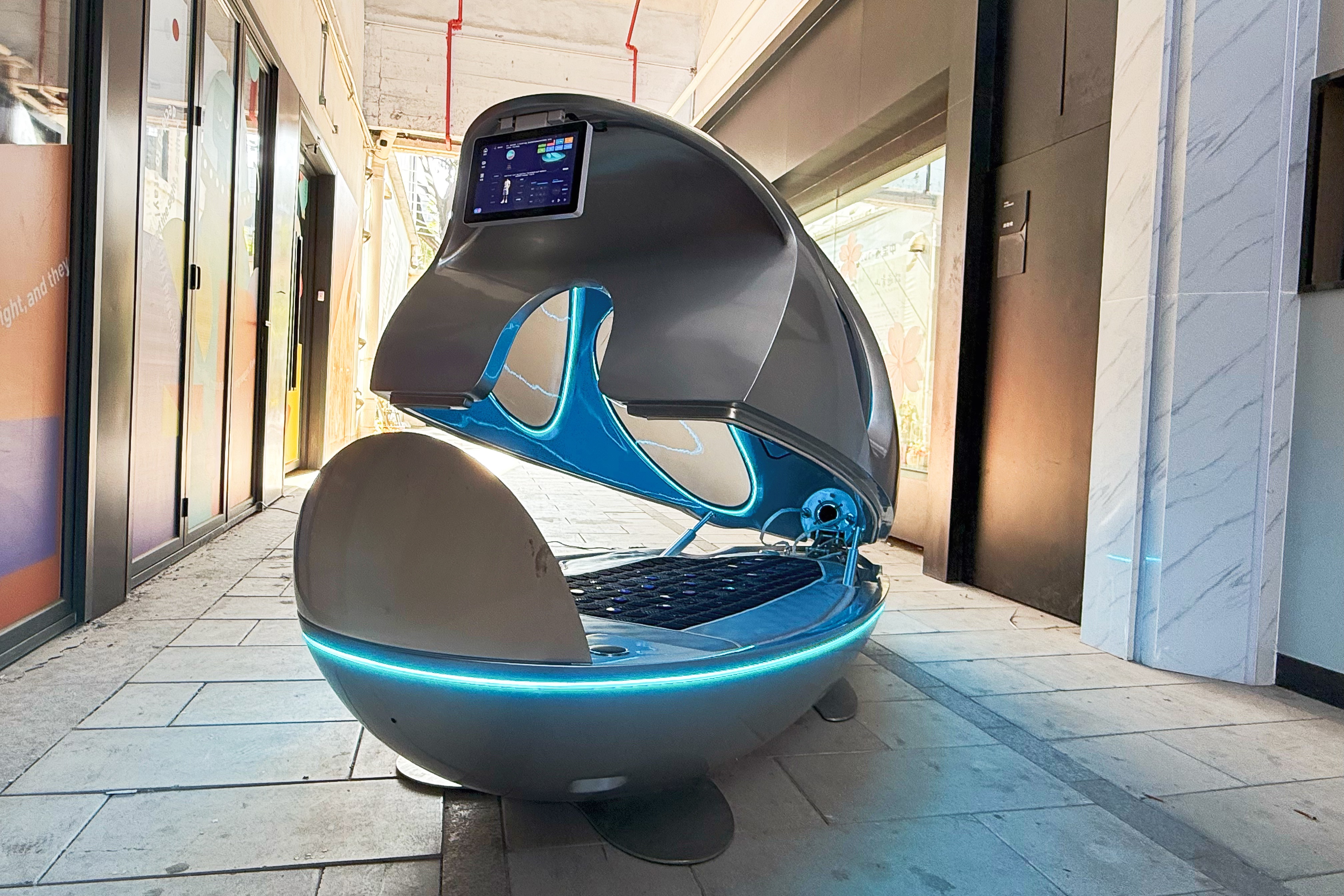 KKhan Rhythm Cab is an innovative high-end wellness device designed to improve users' subhealth conditions and chronic diseases through non-invasive means. The energy cabin utilizes advanced magnetic long-wave technology, achieving high-frequency resonance within the cell nuclei at billions of times per second, helping to unblock stagnations, expel toxins, and regulate dampness and cold. Its constant temperature regulation feature provides users with comfortable relaxation and wellness effects, and long-term use can aid in beauty enhancement, moisture expulsion, fat burning, as well as boost immunity and metabolism. Inspired by the "droplet" concept from Liu Cixin's sci-fi epic "The Three-Body Problem," the smooth teardrop shape of the KKhan Rhythm Cab not only enhances the product’s sense of technology and uniqueness but also symbolizes vitality and harmony with nature. The unique opening "window" on the side of the cabin adds a touch of dynamism. This design not only gives the product a distinctive identity but also embodies the brand’s spirit of exploring future health technologies. The product features an ergonomic streamlined design that allows users to experience a comfortable, enveloping sensation and relaxation inside the cabin. The body color uses soft, natural hues that add a sense of tranquility; combined with metallic accents and brand signature colors, it creates a sense of luxury and enhances brand recognition. The main materials selected for the cabin include eco-friendly, high-quality fiberglass and comfortable soft-touch materials, providing an elegant tactile experience while embodying the concept of environmental health. KKhan Rhythm Cab integrates functions for conditioning, detoxification, and warming nourishment. Utilizing magnetic long-wave technology, it achieves high-frequency resonance within cells to facilitate the elimination of toxins and maintain bodily fluid balance. The interior of the cabin includes a mattress system with intelligent adjustable vibration, offering subtle massage vibrations to enhance user experience and comfort. The spacious internal space can be adjusted according to user needs, including temperature and vibration frequency settings, ensuring that each user receives the most suitable wellness experience.