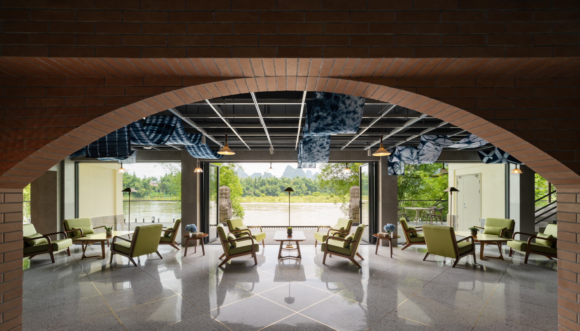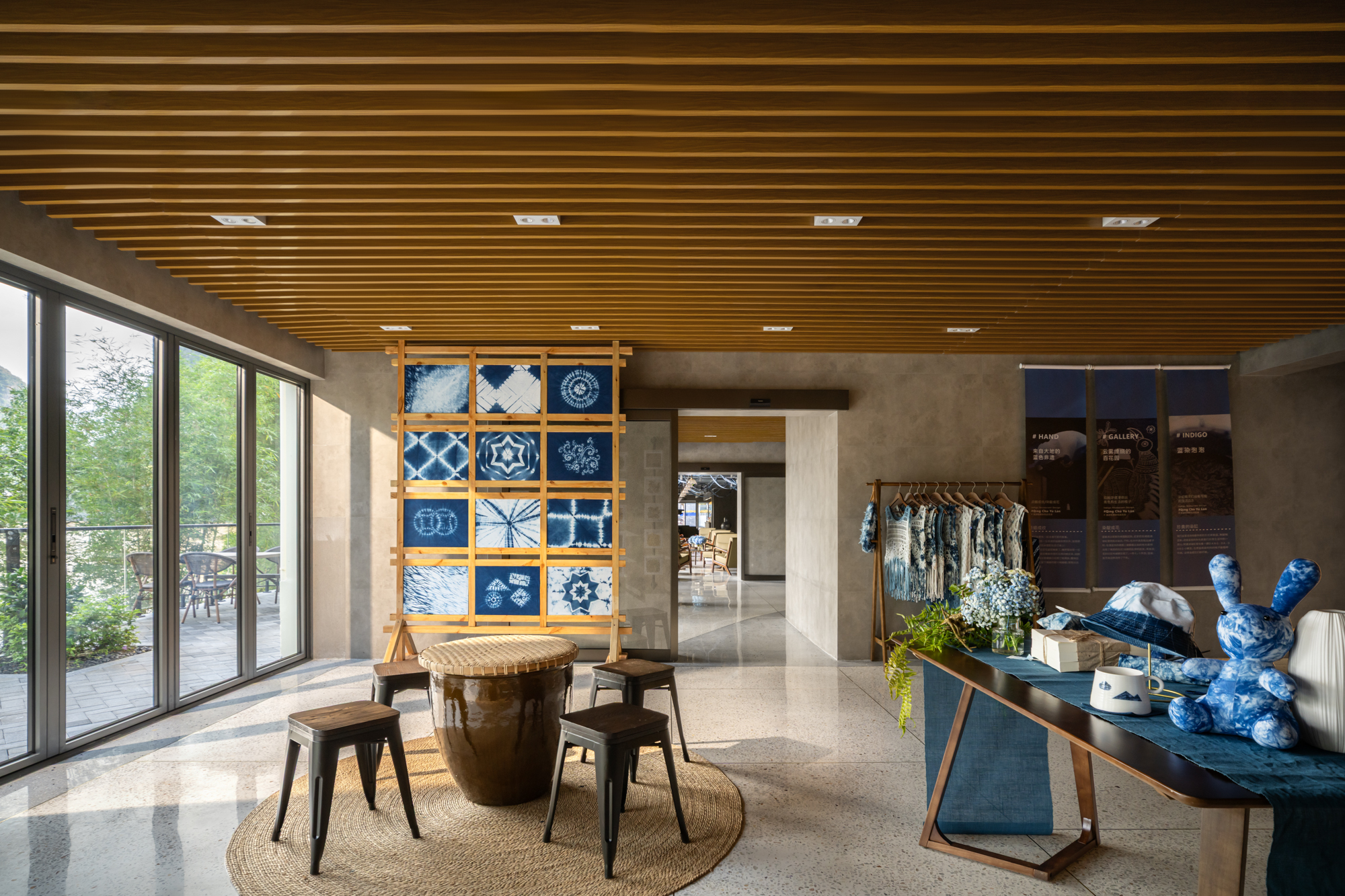 Situated along the Li River, a World Heritage protection zone, Indigo Restaurant required adaptive reuse rather than new construction. Inspired by the proverb “green is born of blue, yet surpasses blue,” the design integrates the indigo-dyeing crafts of local minorities with Yangshuo’s landscape imagery. Space was organized into five zones—the Hundred Flowers Garden, slow dining café, cultural & creative pavilion, bakery, and fermented cuisine restaurant—each able to operate independently or in tandem, forming a cultural stage that unites local heritage with daily life.
