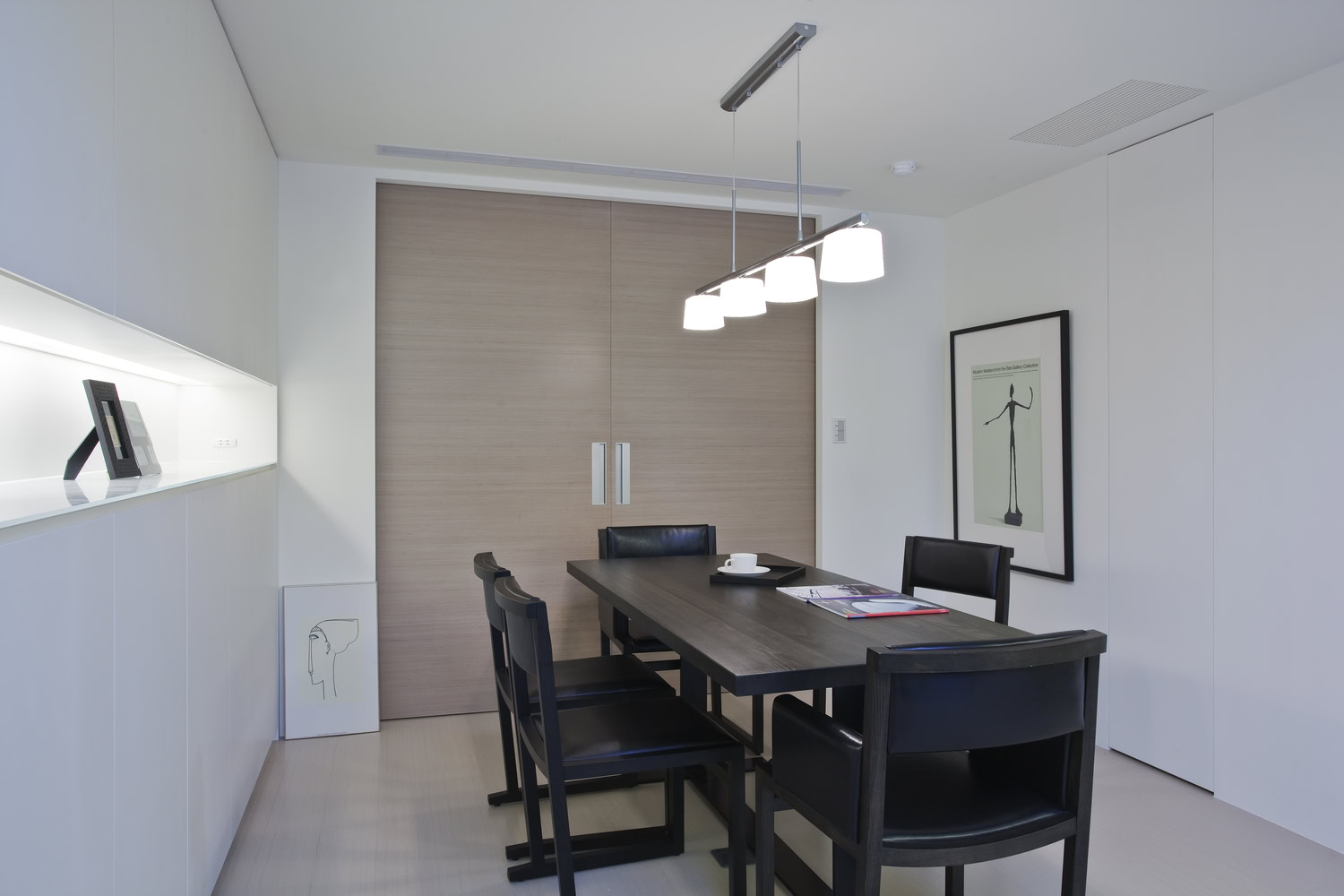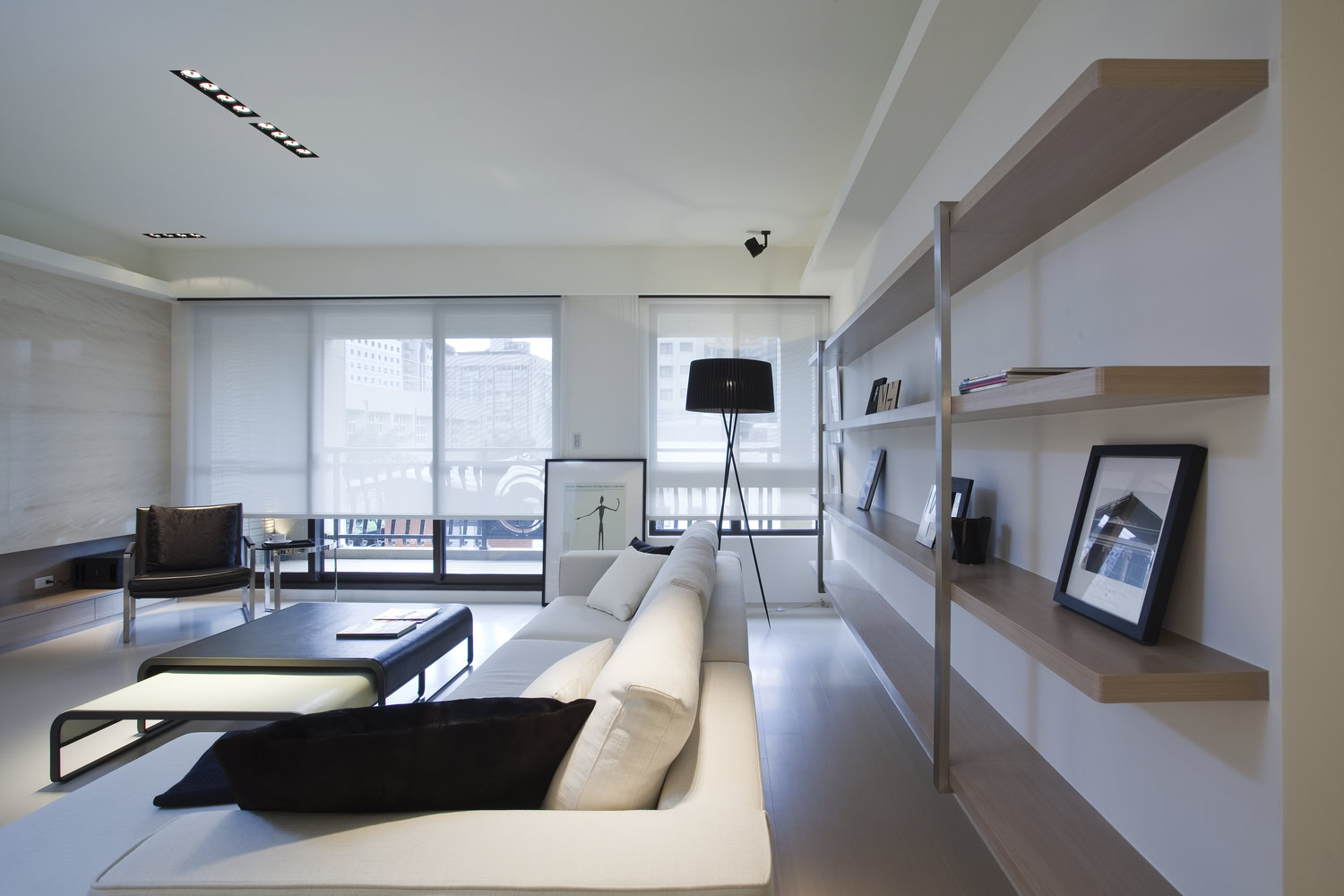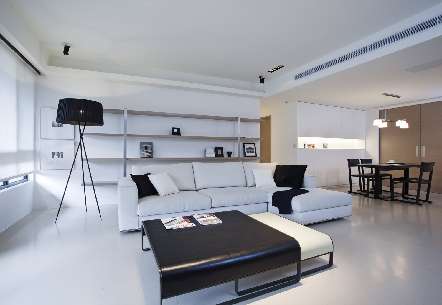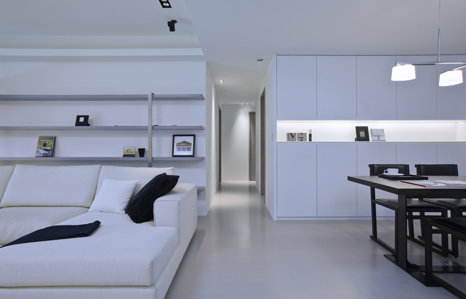 Here, space drifts across an open scale, guided by a unified approach to line and material. A monochrome palette of black and white furniture creates subtle tension and harmony, quietly amplifying the emotional resonance of shared moments. The transition between living and dining is nuanced—shifting in openness and enclosure, offering a variety of spatial expressions.