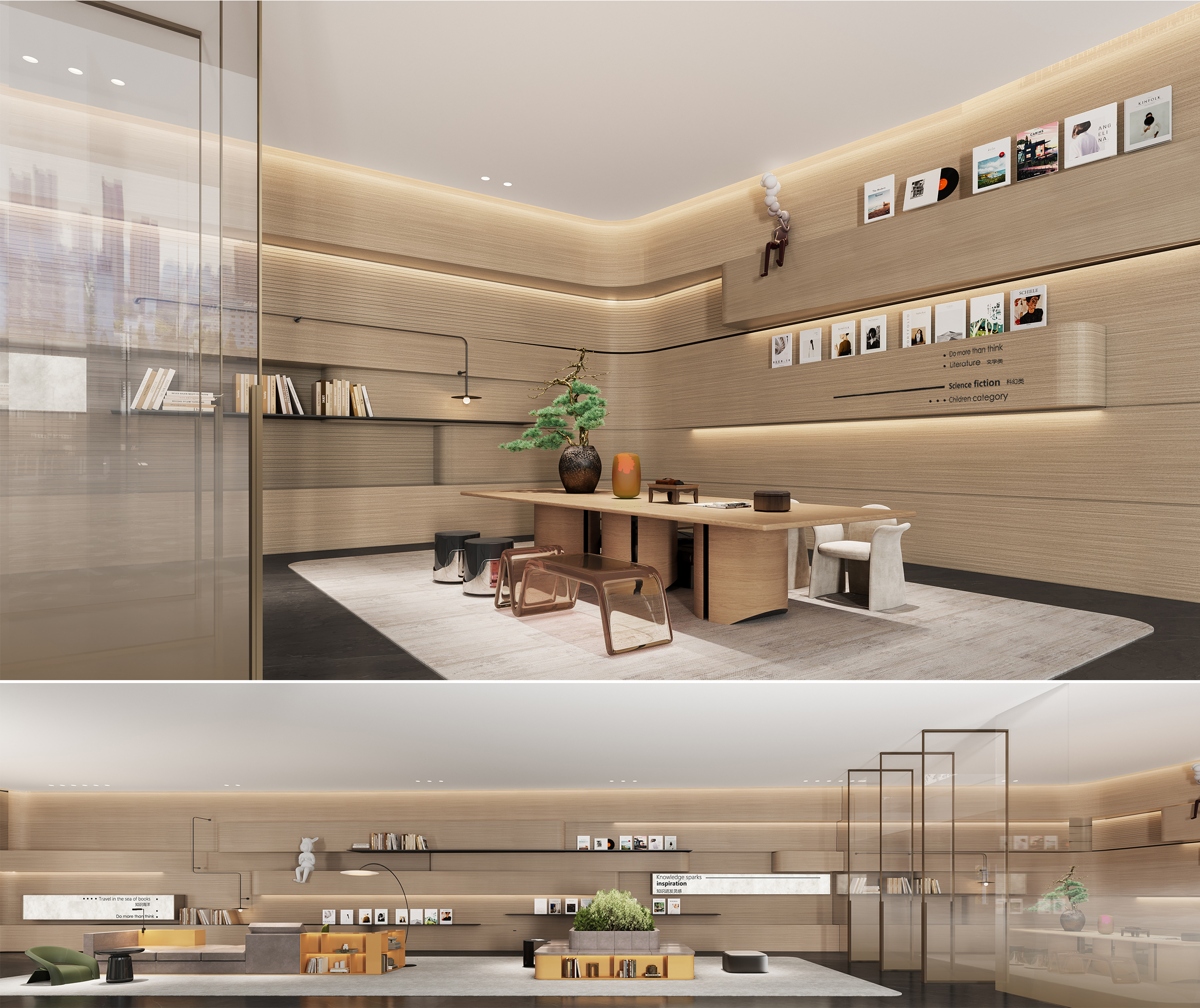 The design employs an “enclosure + permeability” approach to revitalize the sunken courtyard, making it the central hub connecting four functional areas: water bar, reading lounge, gym, and swimming pool. The enclosure strategy uses walls and greenery to define spatial boundaries, such as a circular bookshelf in the reading lounge forming a semi-enclosed interface, ensuring privacy and a sense of belonging. The permeability strategy introduces natural light and courtyard views through glass partitions and light wells, softening indoor-outdoor boundaries and enhancing spatial transparency.
