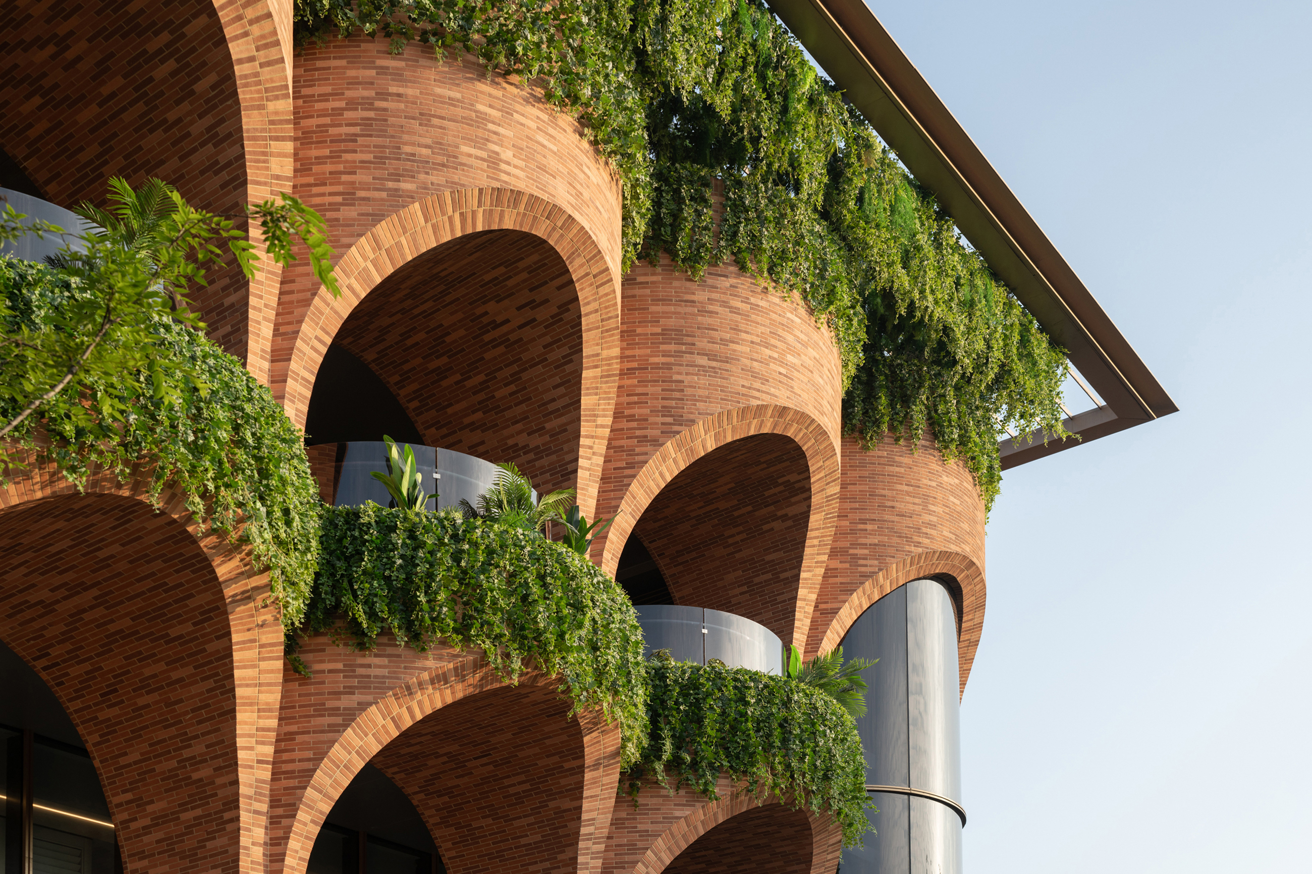 It takes shape as a "three-dimensional garden block intimately connected with nature". Its architecture weaves together "vitality and culture", creating a "dialogue between tradition and modernity". Local design elements like "water channels and arches" are thoughtfully integrated, inspiring a "distinctive facade that translates water elements" into fluid lines and wave-like textures.