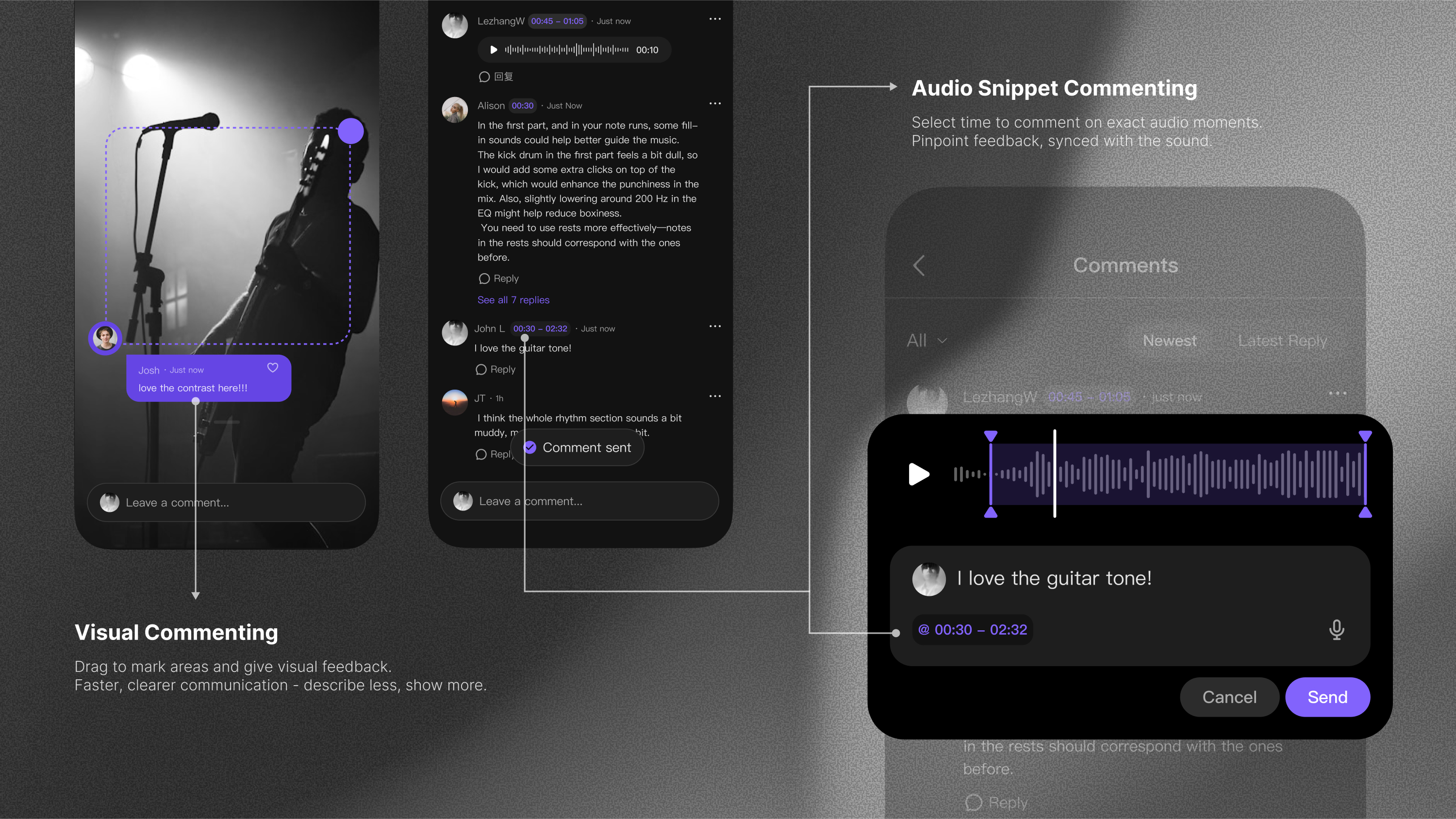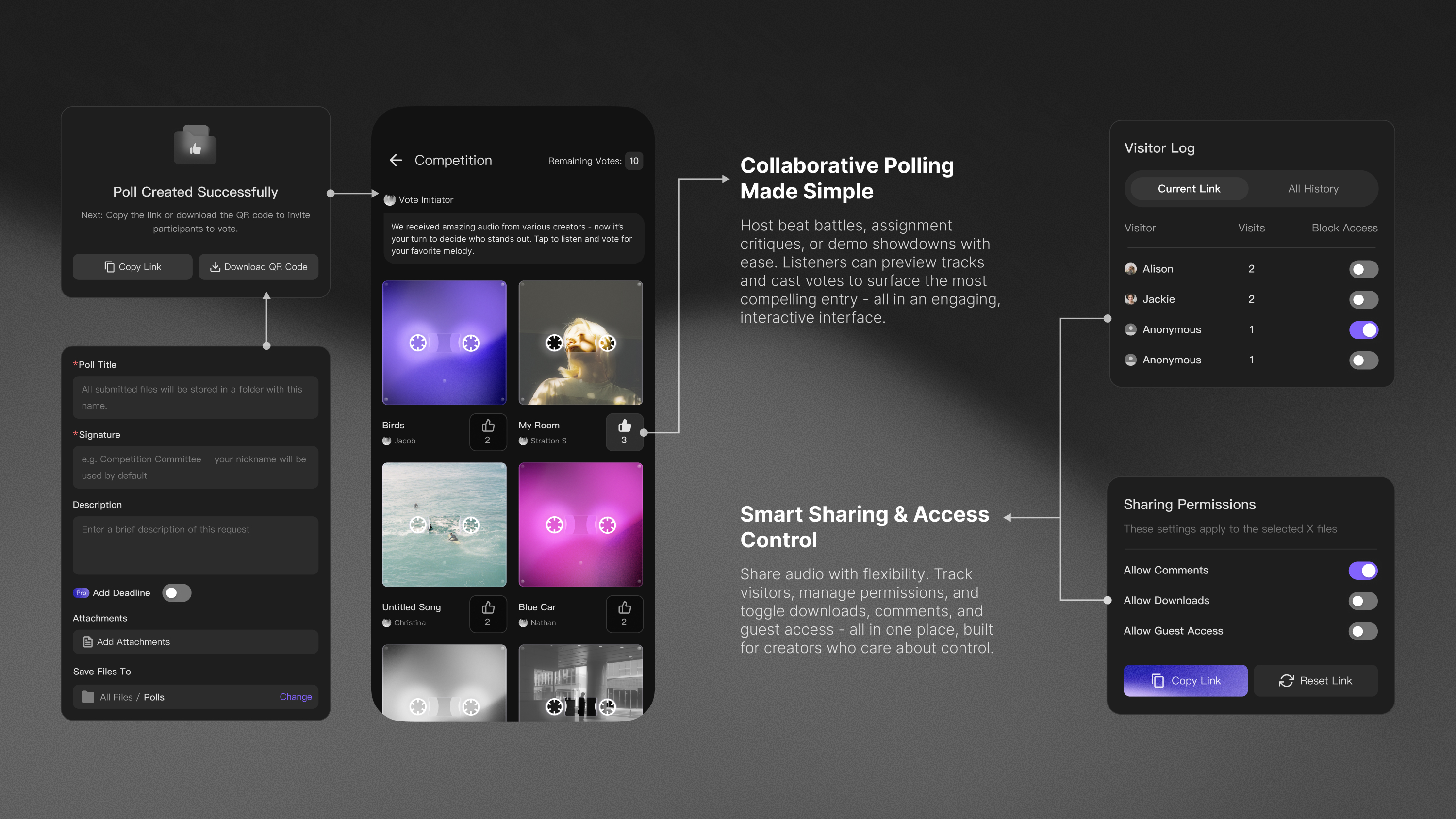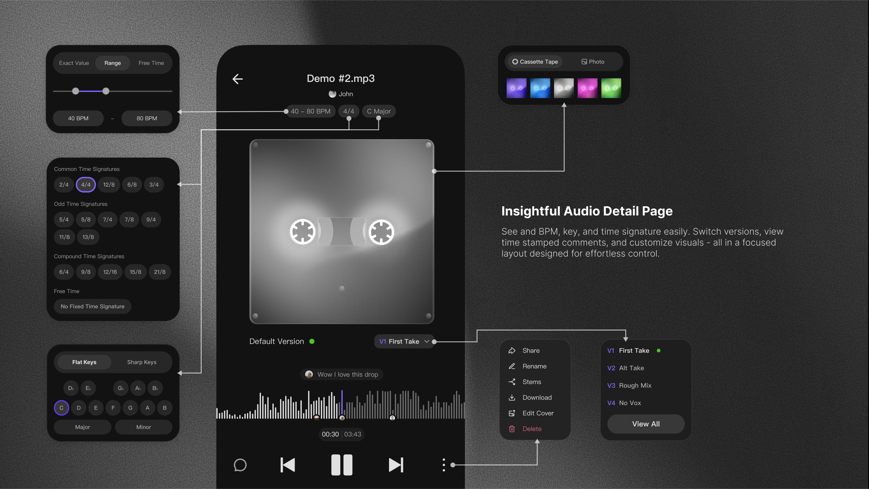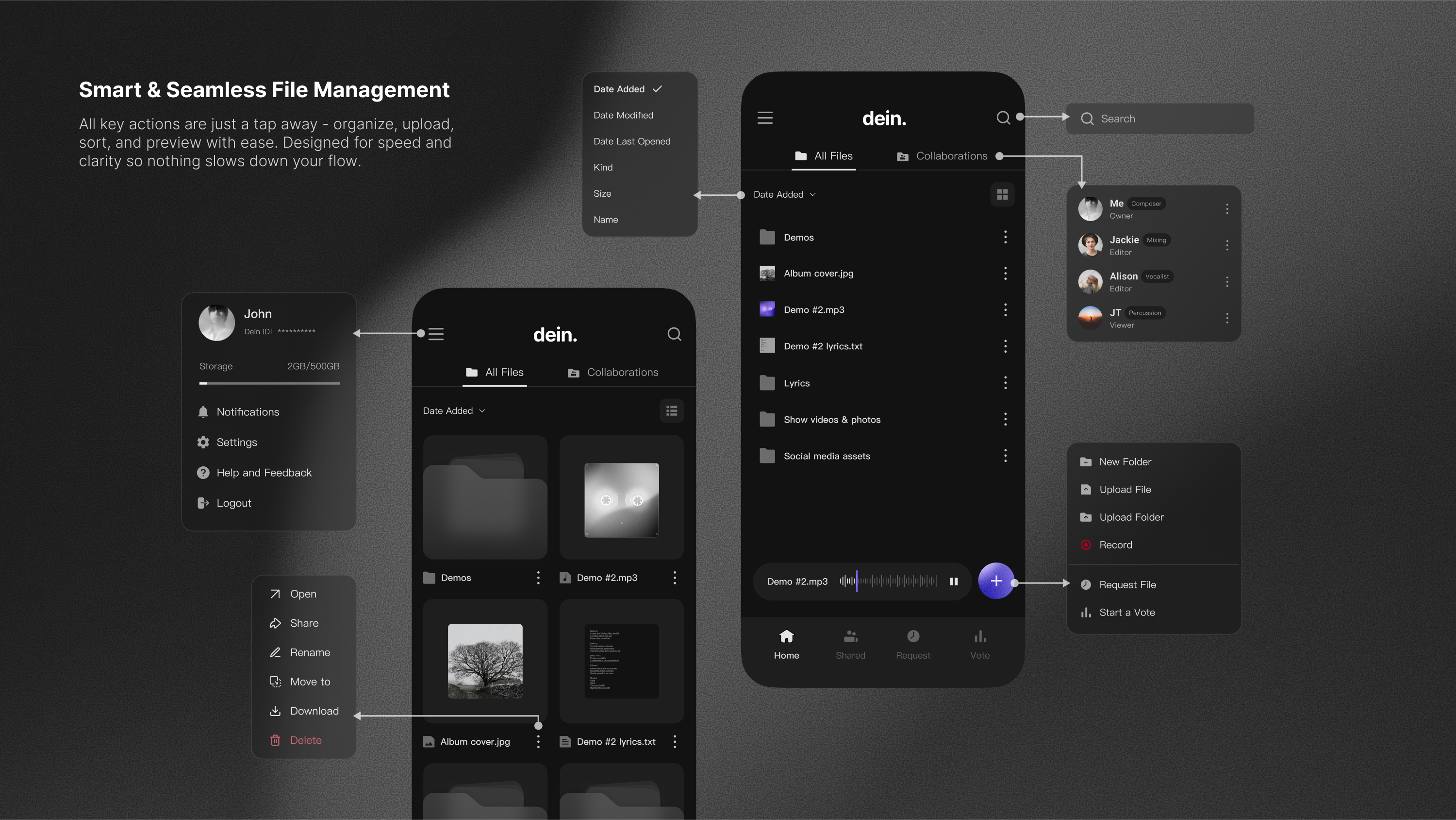 Dein is a shared audio workspace designed for musicians and teams to manage, collaborate, and create seamlessly. With features like file organization, version control, polls for composition reviews or competitions, and audio snippet commenting for precise, time-stamped feedback, Dein simplifies complex workflows and brings everything into one intuitive platform.