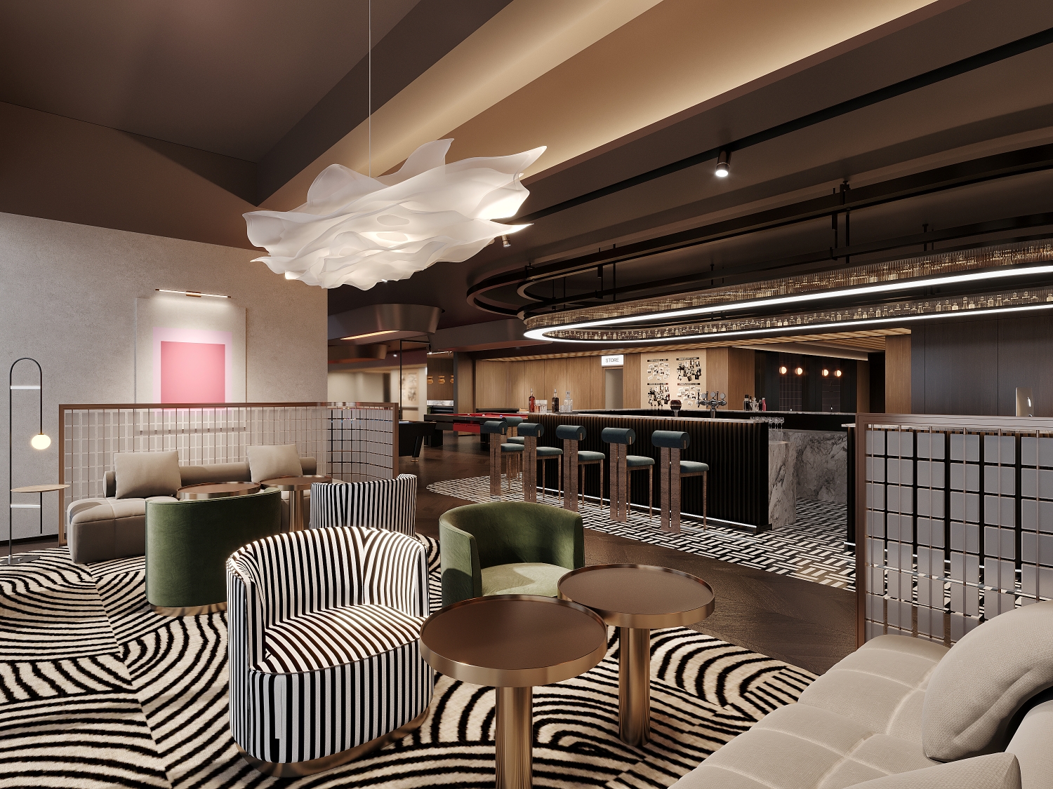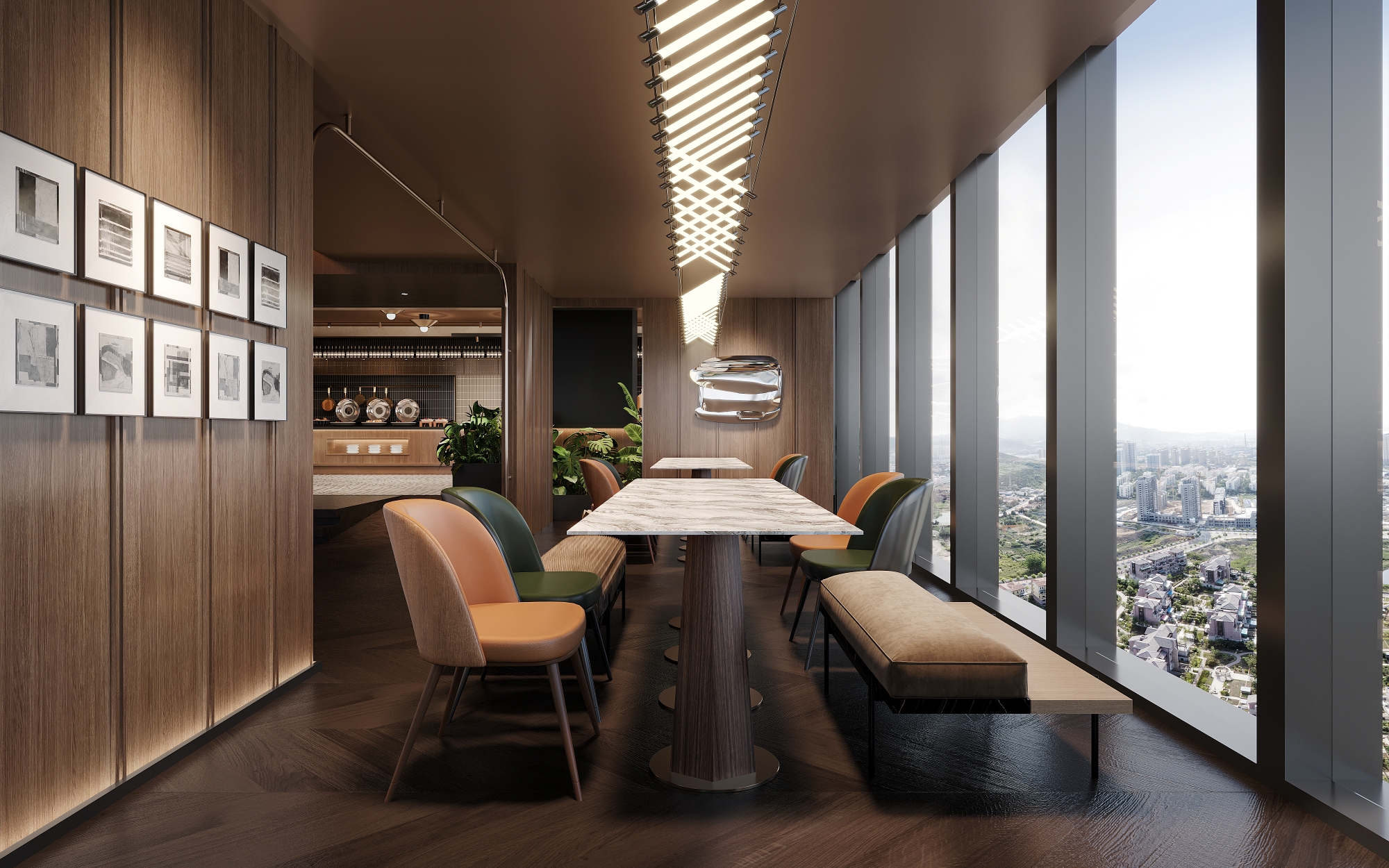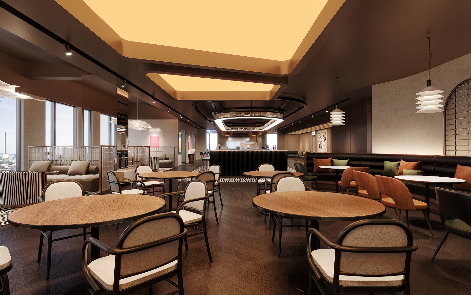 • Lower-light zones are strategically allocated to functions less dependent on illumination, such as sofas, coffee tables, and storage, achieving a precise balance between spatial efficiency and light distribution.