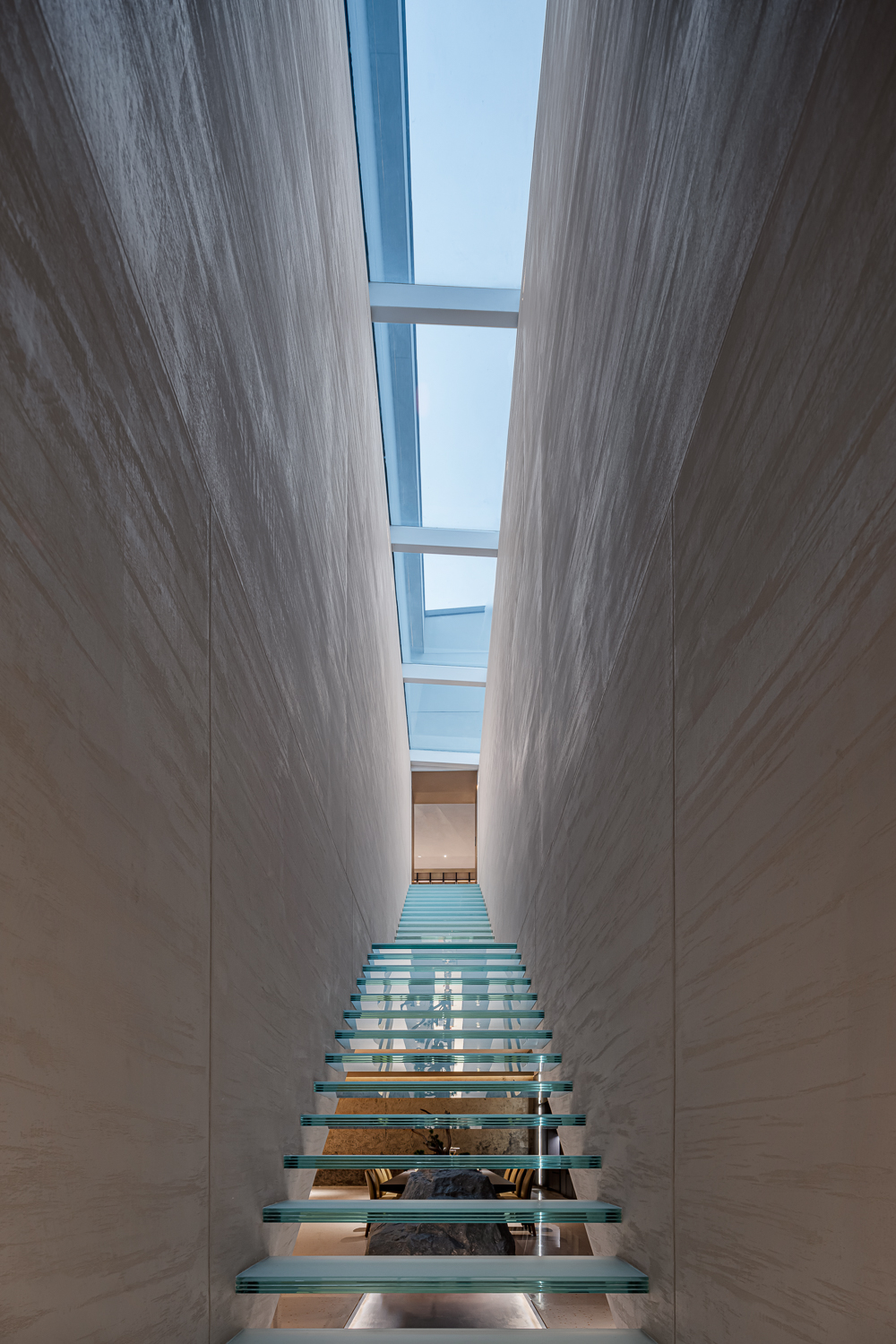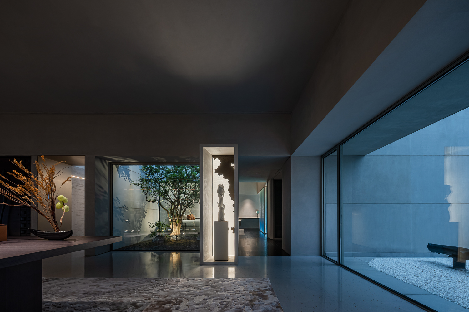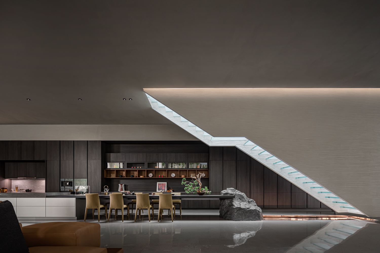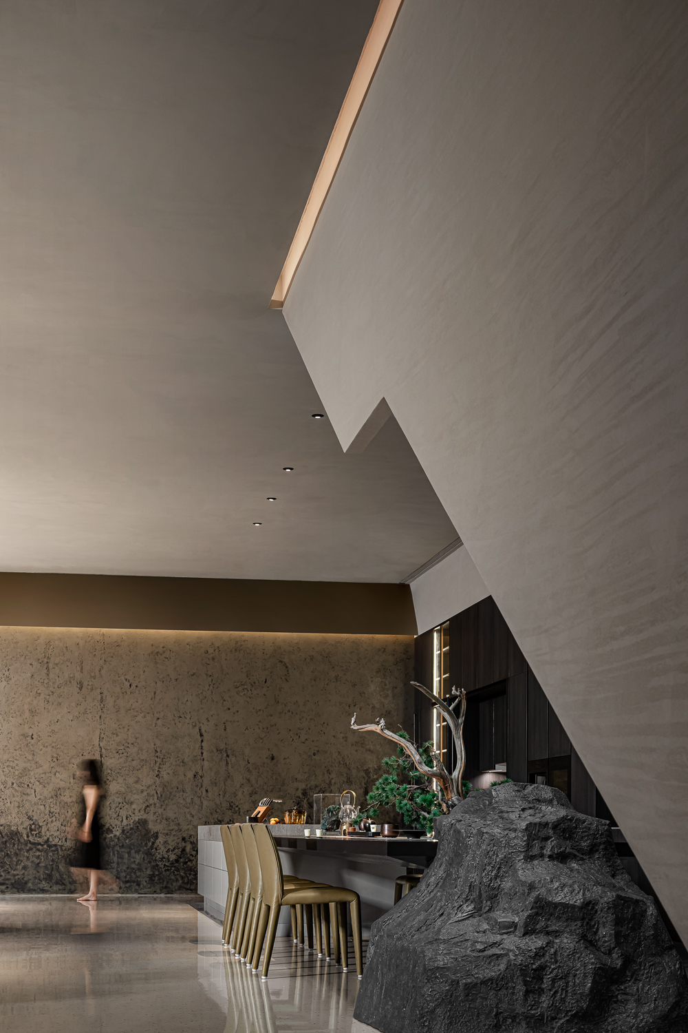 The project addresses three core urban needs: creating psychological healing spaces through low-interference layouts and natural elements; compensating for nature deprivation with courtyard vistas and floor-to-ceiling windows; and accommodating diverse lifestyles via multifunctional "passage-as-space" planning. The sculptural staircase doubles as a social hub, while integrated wall treatments enhance spatial purity. The interplay of wood/stone with metal/glass balances Eastern warmth and modern sophistication.
