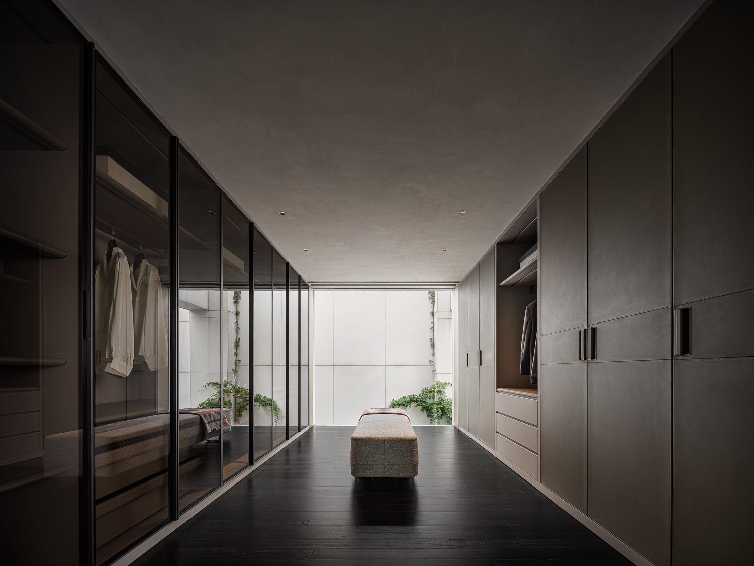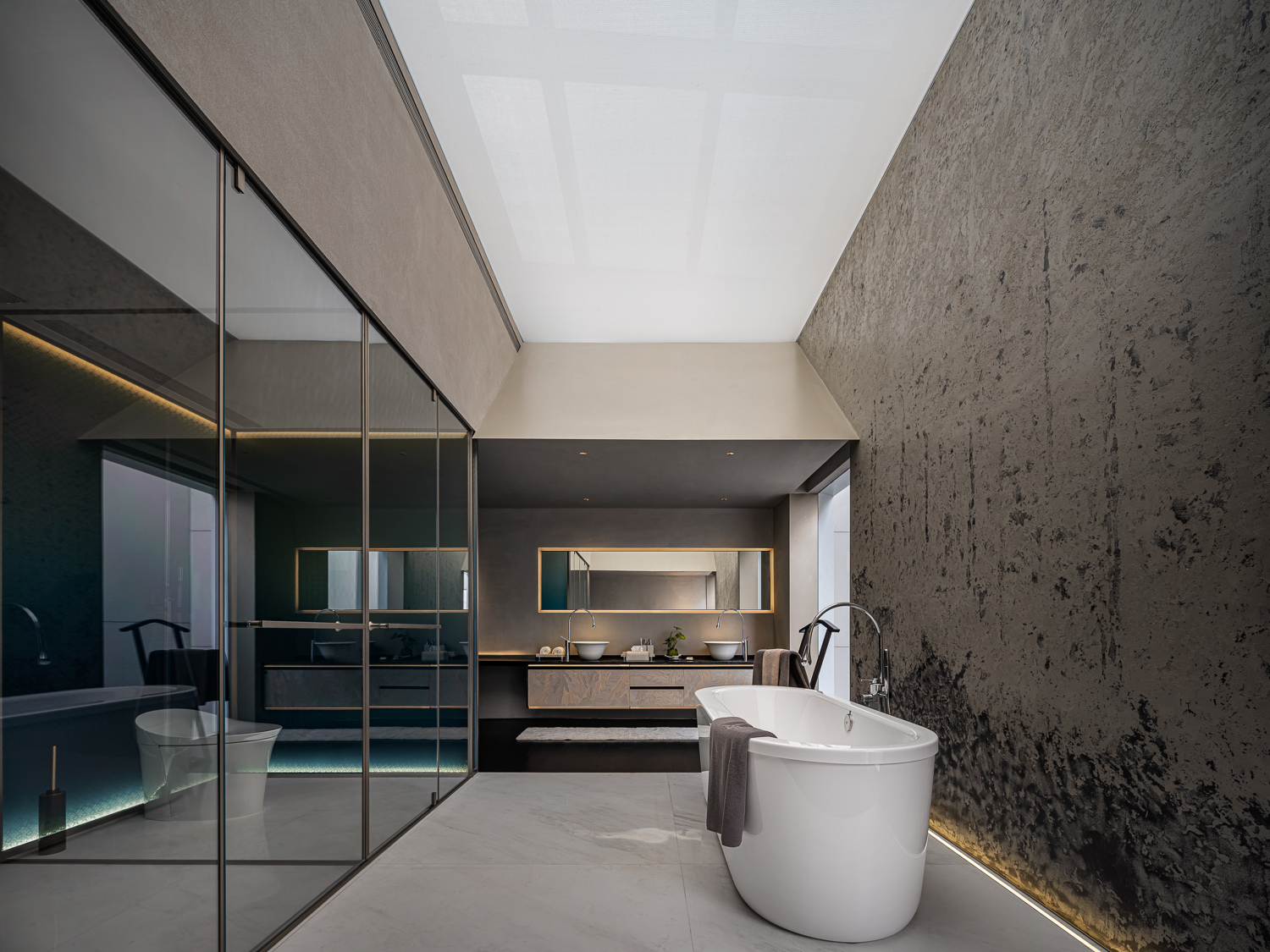 Moving beyond clichéd traditional motifs, the design reinterprets Lingnan cultural elements with modern techniques. The entry staircase, symbolizing "ascending the social ladder," is sculpturally treated as the spatial centerpiece; the layout wisdom of Xiguan mansions transforms into fluid spatial sequences, while Manchurian window motifs reappear as abstract geometric forms. A multi-perspective borrowed scenery system animates static courtyard views, and the "open-air" bathroom redesign subtly responds to Lingnan's climate, achieving perfect harmony between functionality and artistic atmosphere.