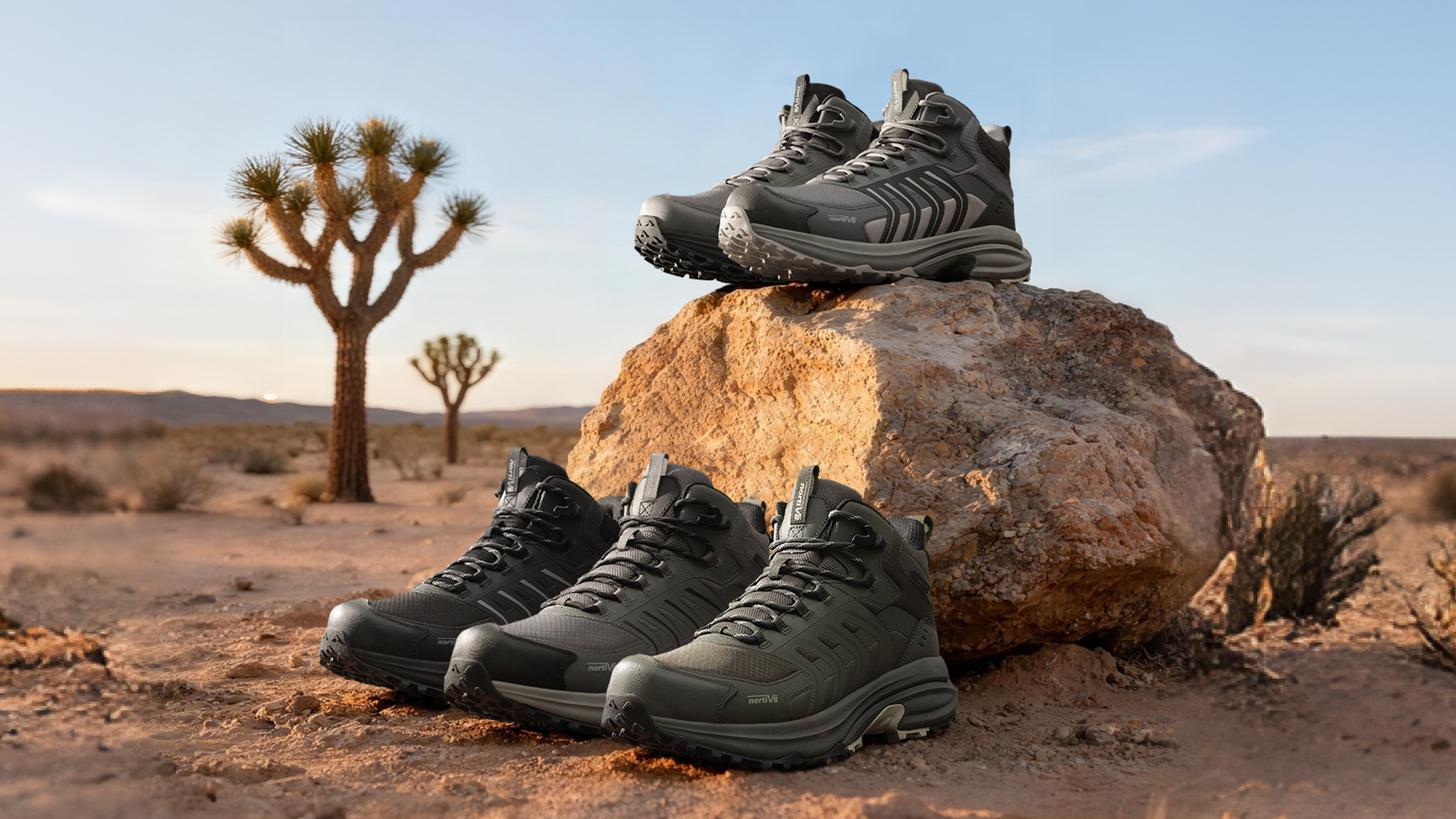 Armadillo Series is a high-performance waterproof hiking boot that combines bionic aesthetics with innovative functionality. Inspired by the armadillo, the upper features an exoskeleton-like structure reminiscent of the animal’s armor, with segmented materials that mimic scales, balancing lightweight construction and robust support to effectively resist outdoor abrasion and impact. The ankle-cut mid-top design provides ankle protection while reducing the bulkiness of traditional high-tops, enhancing flexibility and comfort. The earth-toned color scheme uses light and dark contrasts to create a textured look, while four parallel arched elements on the side inject sporty vitality into the outdoor style, meeting both practical and aesthetic needs for wilderness exploration and everyday wear.
