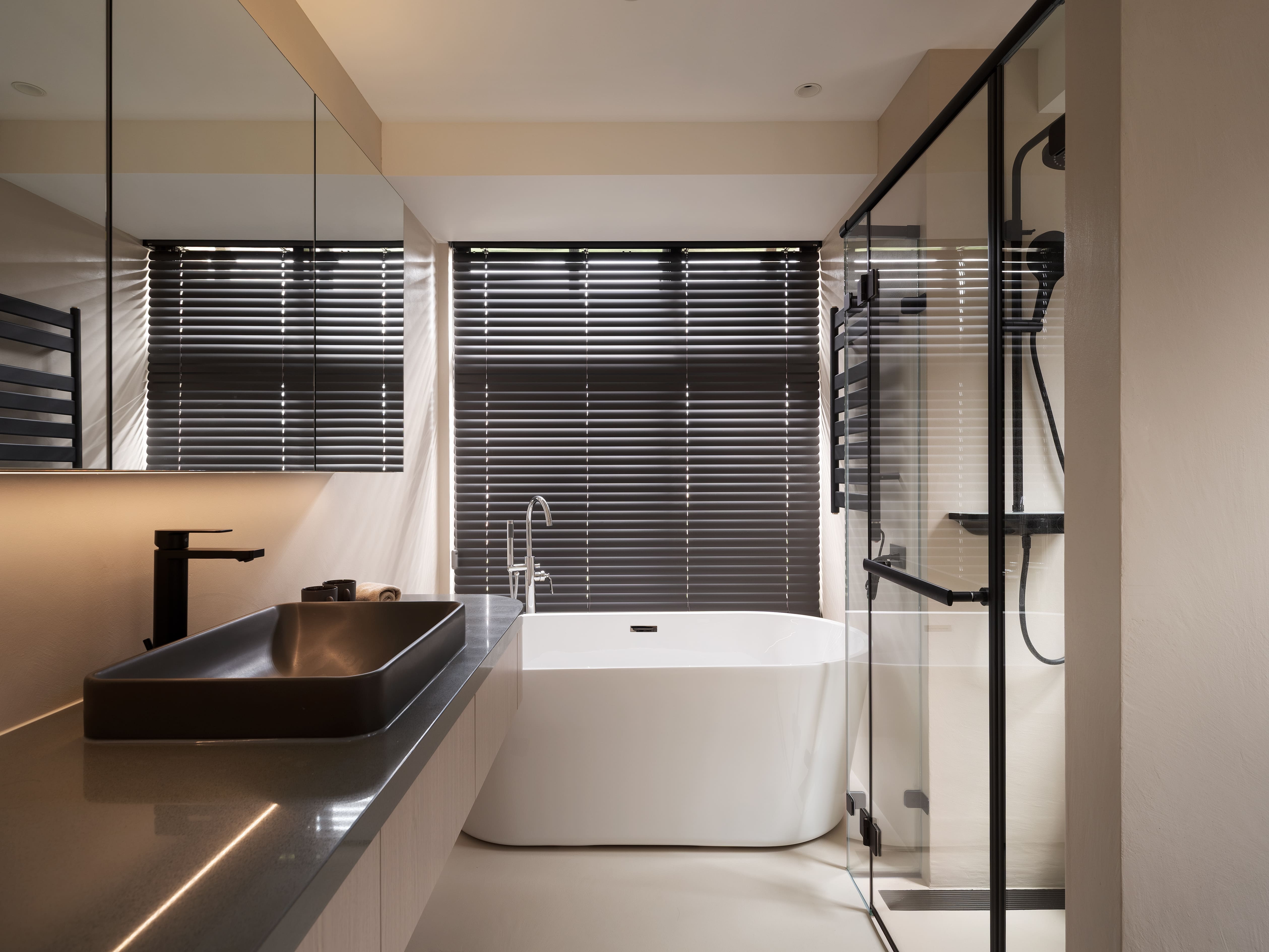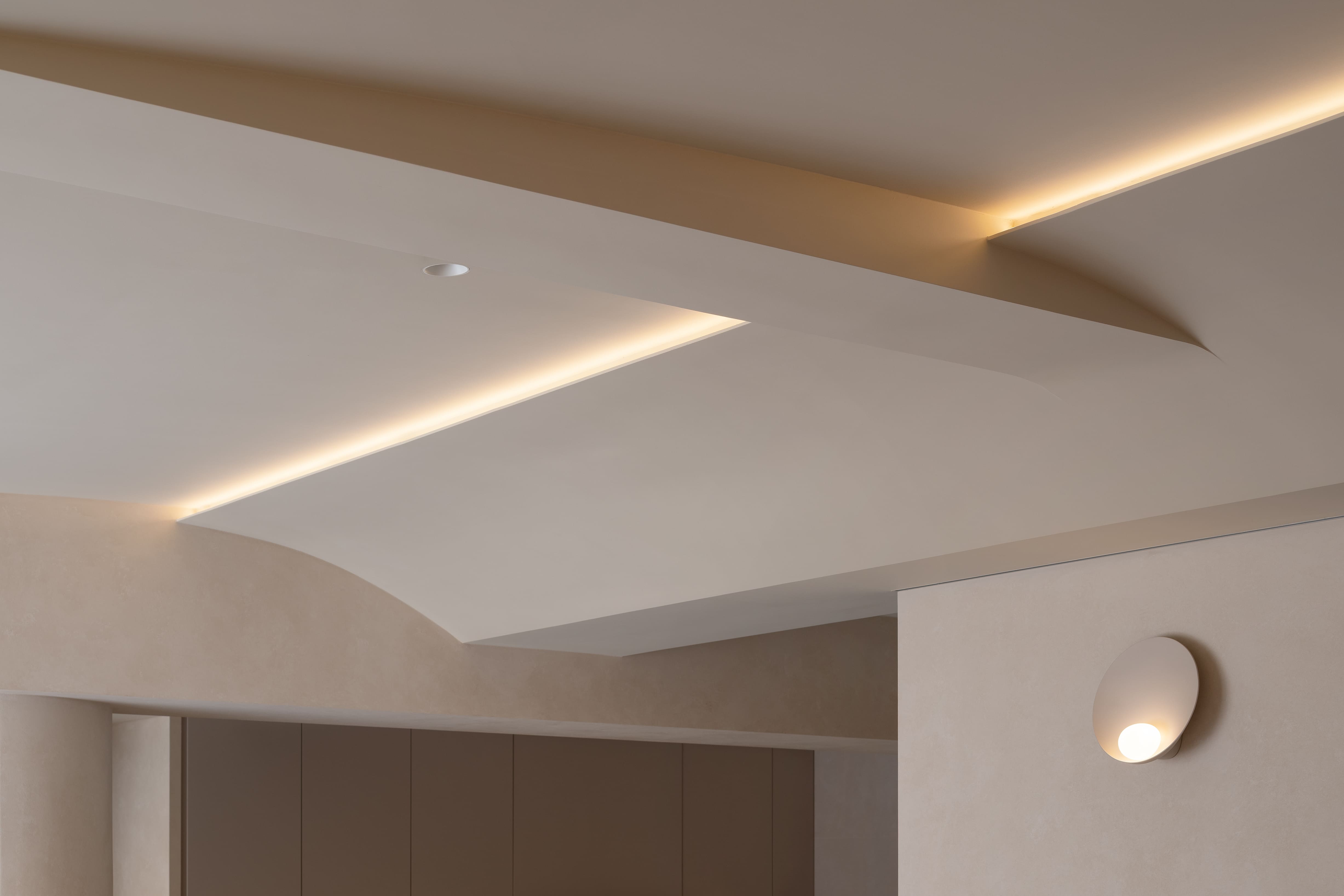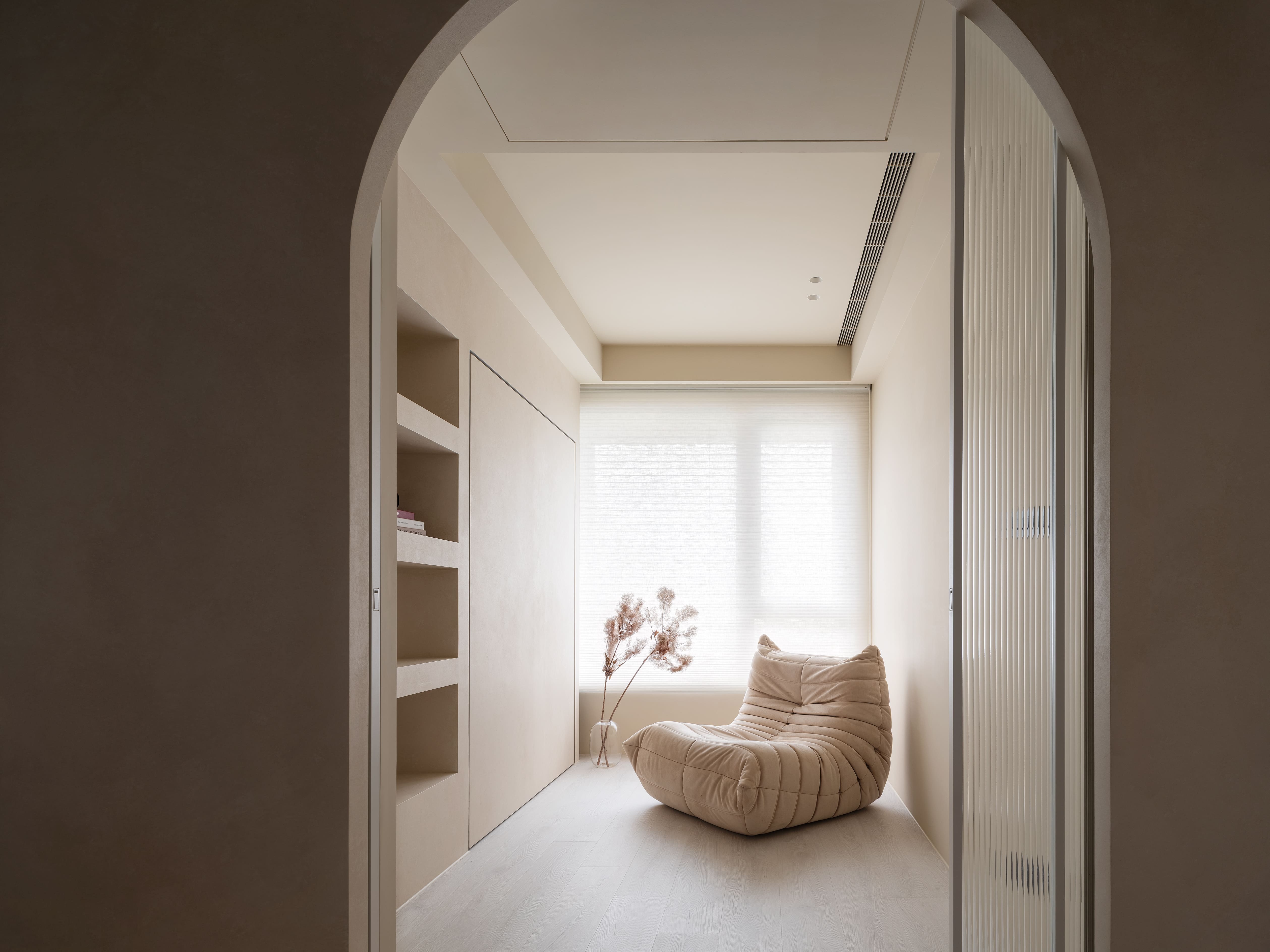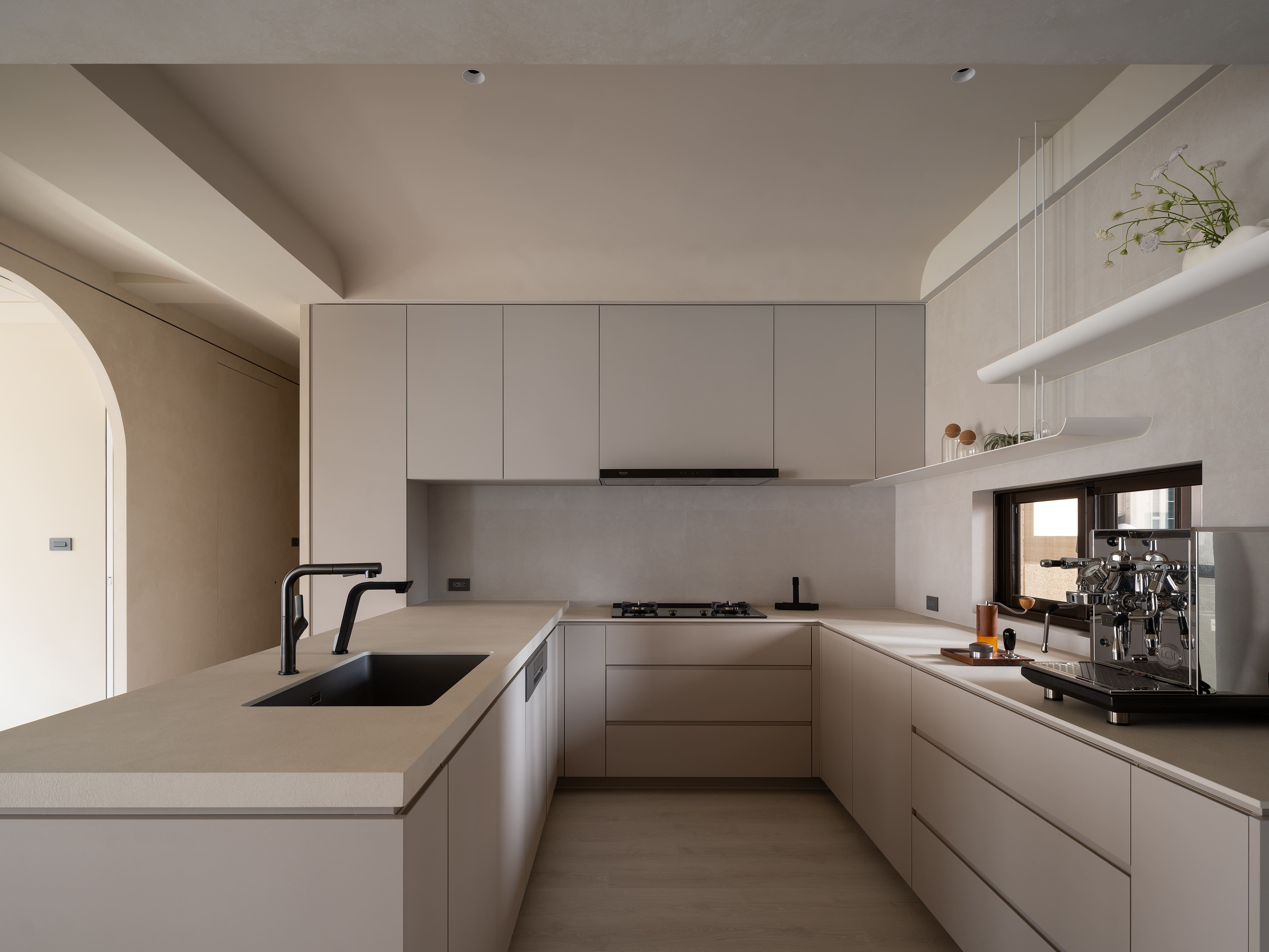 “Redefine” transforms a 10-year-old residence into a serene, low-maintenance home for a minimalist couple. Guided by wabi-sabi and contemporary minimalism, the design employs subdued hues, mineral textures, and curving lines to balance raw simplicity with refined elegance. A glass-block entry screen defines the threshold with light and transparency, while a U-shaped kitchen island with staggered counters adapts to both cooking and casual dining. Subtle arcs soften beams and corners, while natural finishes enhance tactility and ease of care, creating a timeless backdrop for evolving family life.