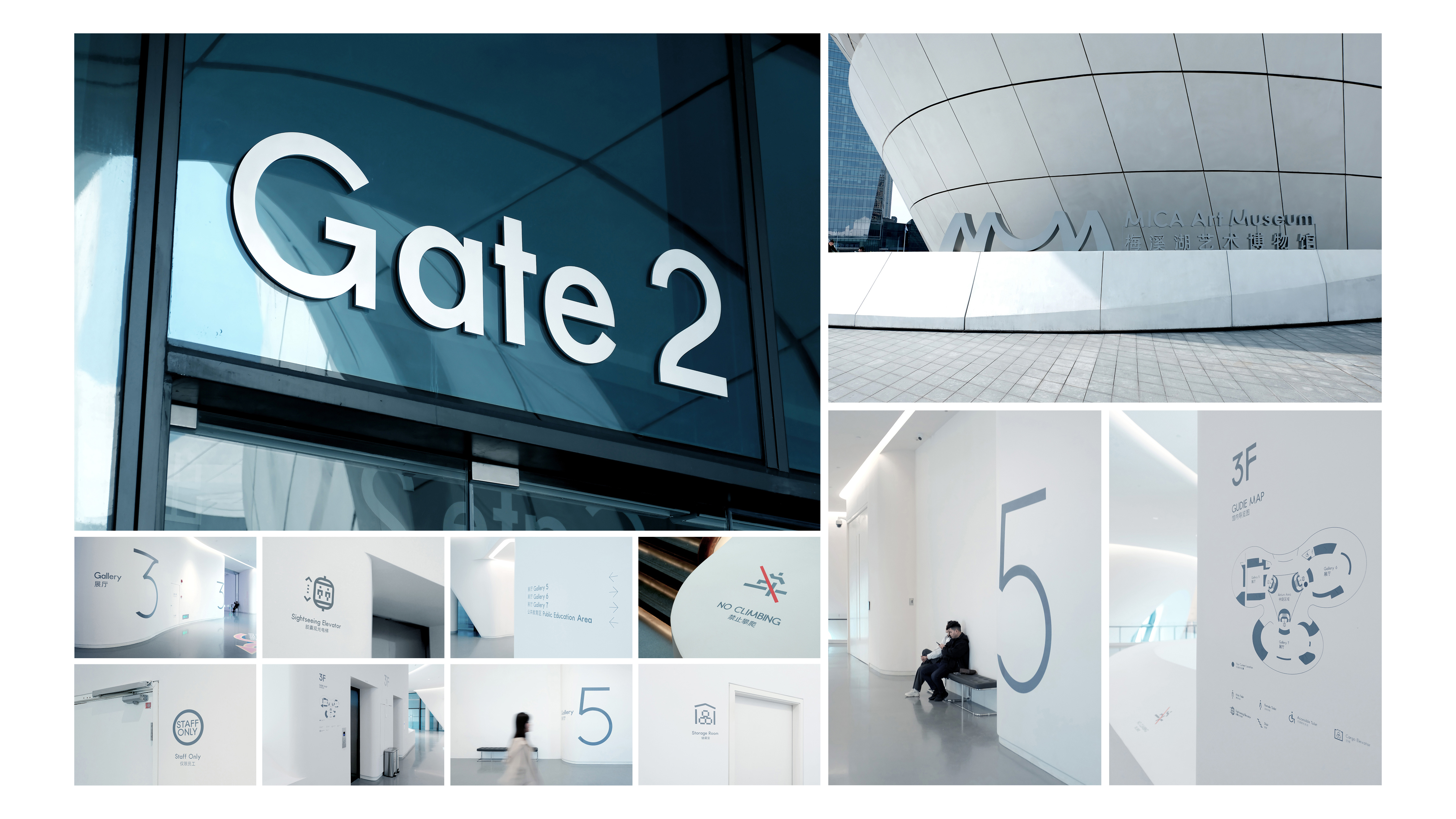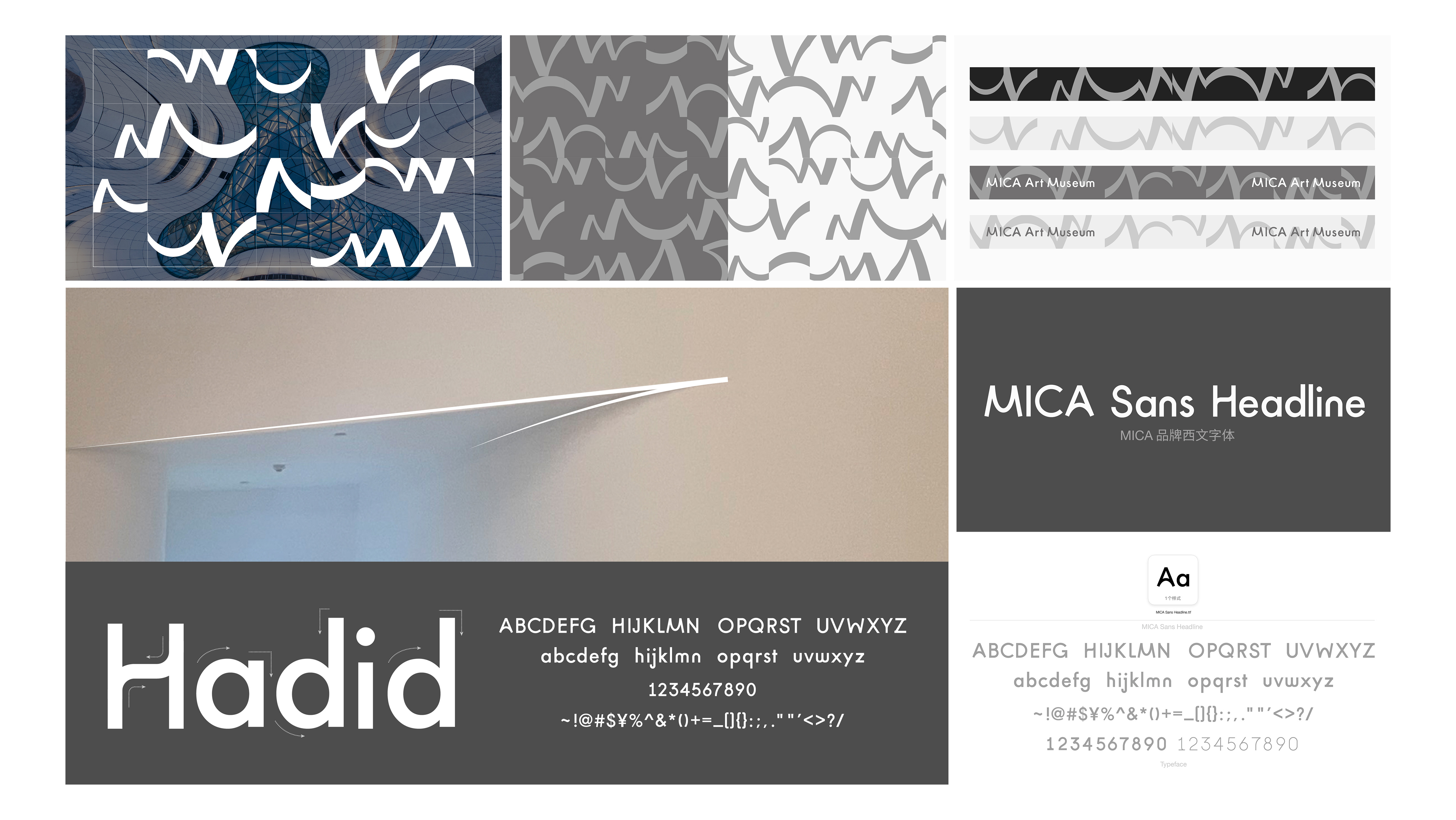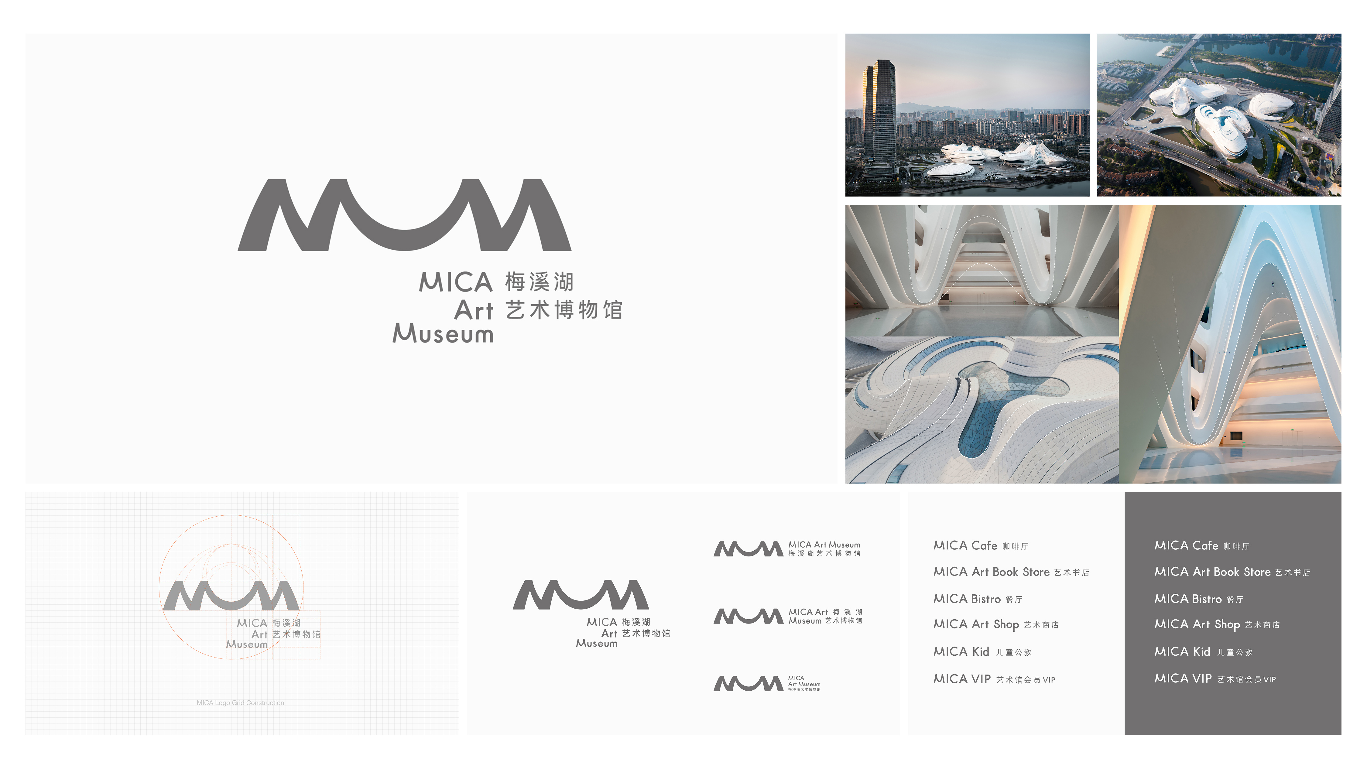 In the MICA brand VI visual, 'Deconstruction is not disorder, but a higher order' is an important principle for the construction of the MICA brand visual system. The graphics are also derived from Zaha Hadid's multiple curves, like petals falling into the mirror-like surface of Meixi Lake, stirring up different forms of "ripples" as a concept. For example, standing in the atrium of the museum and looking up or looking down at the building outside the museum, the top glass skylight will present a modular and parametric visual graphic law, which seems to be disorderly interspersed, but is a direct manifestation of a higher sense of order. From this, we constructed a modular splicing order, but continued the auxiliary graphic system of multiple continuous curves, forming the brand VI visual identification system of MICA Meixi Lake Art Museum. We focus on strengthening this characteristic perception, and abstractly deconstruct and reorganize it, so that it presents another sense of order besides disorder. In addition, this set of auxiliary graphics can be arbitrarily divided and combined, enlarged and reduced, further reducing the threshold for the subsequent use of brand visual assets at the operational level.