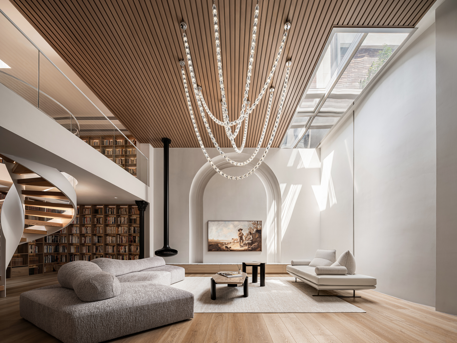 Functional restructuring is combined with decorative artistry. Basement double-height spaces and skylights introduce natural ventilation and light, while leisure and study areas are organically integrated and supplemented with accent lighting. Light and shadow, spatial rhythm, and clear functionality create a comfortable and natural environment.