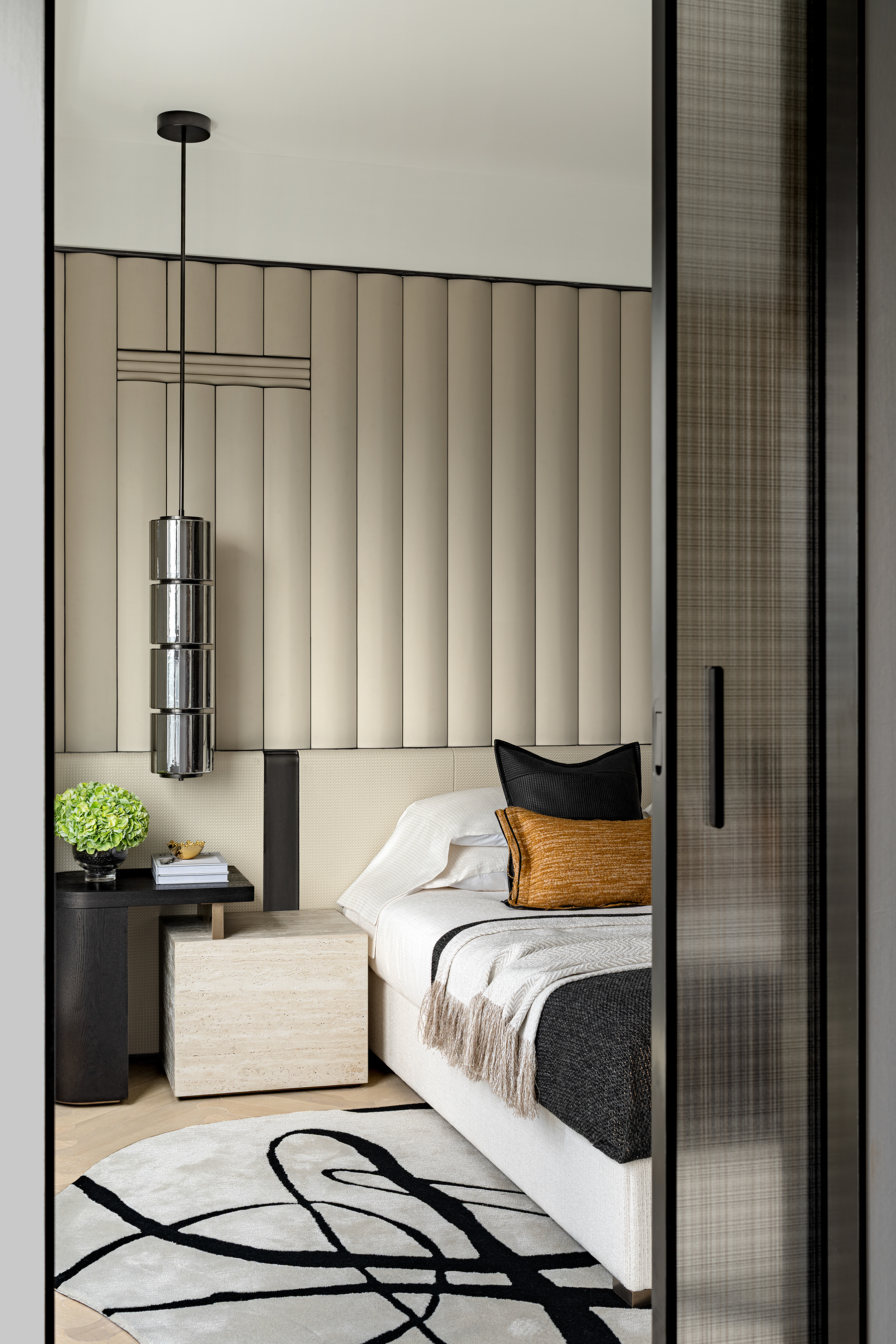 The study keeps its photographic collection in quiet formation—a private plot of mind, temporarily fenced off from the world’s noise, turned inward until calm arrives. The master suite claims its own wing; muted, warm tones weave stillness, privacy and quiet stature flowing unseen.
