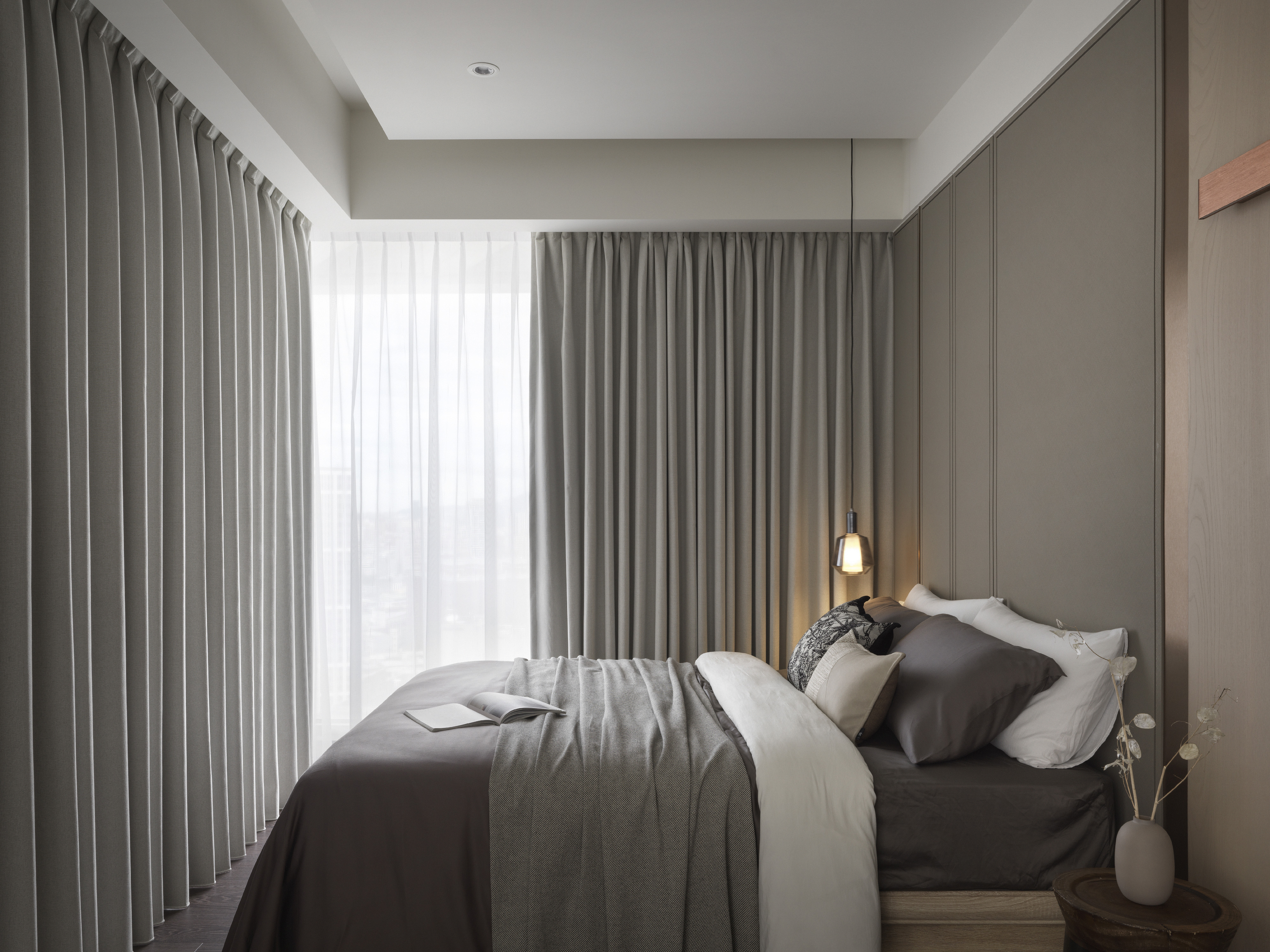 The core of the design revolves around transforming the original three-bedroom layout into two spacious suites, connected yet independent, balancing intimacy with autonomy. Each suite embodies the personality of its owner—one characterized by simplicity and restraint, providing space for quietude. At the same time, the other is more expressive, featuring a walk-in closet and dressing table. Together, they create a space where differences naturally coexist, achieving harmony through contrast.