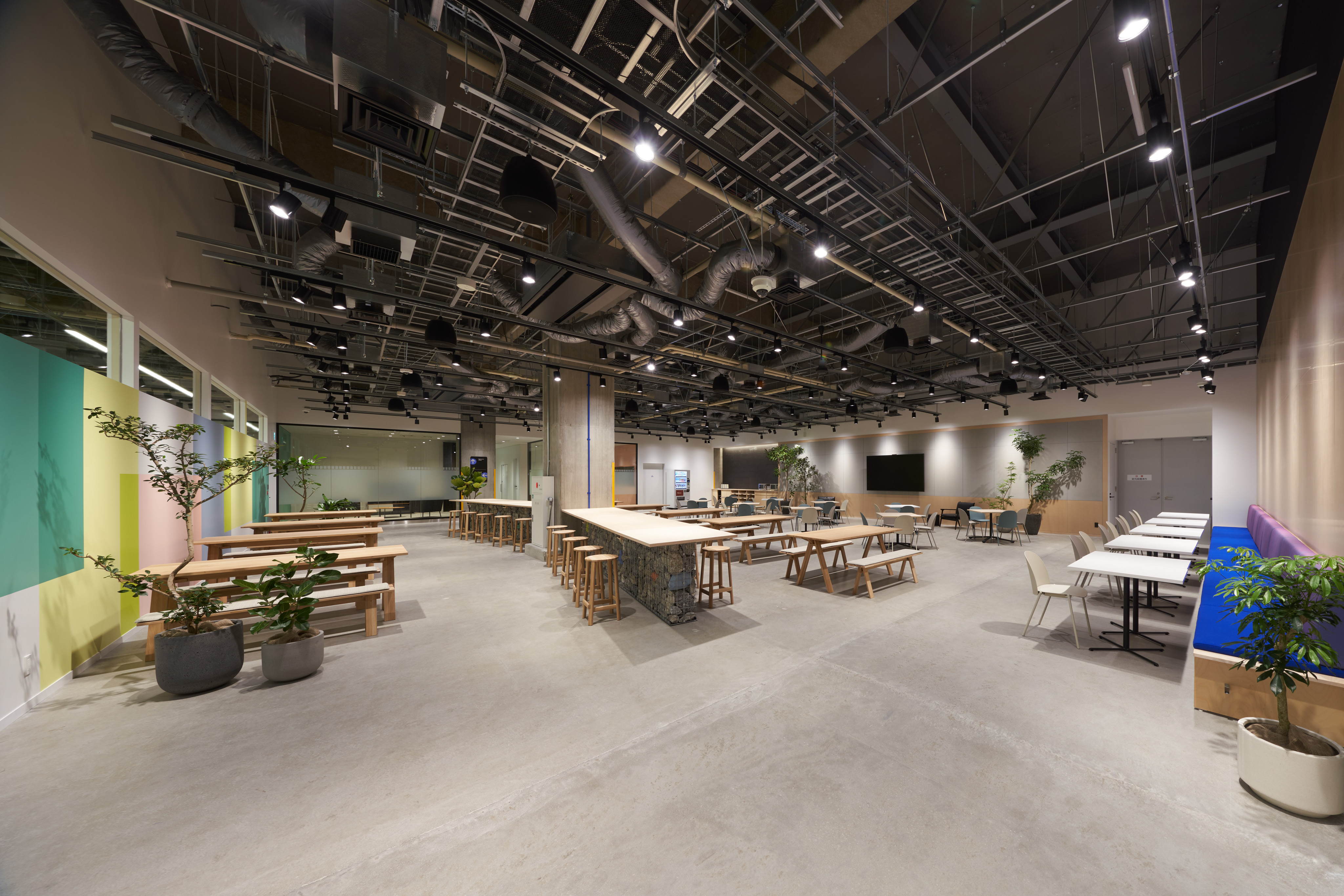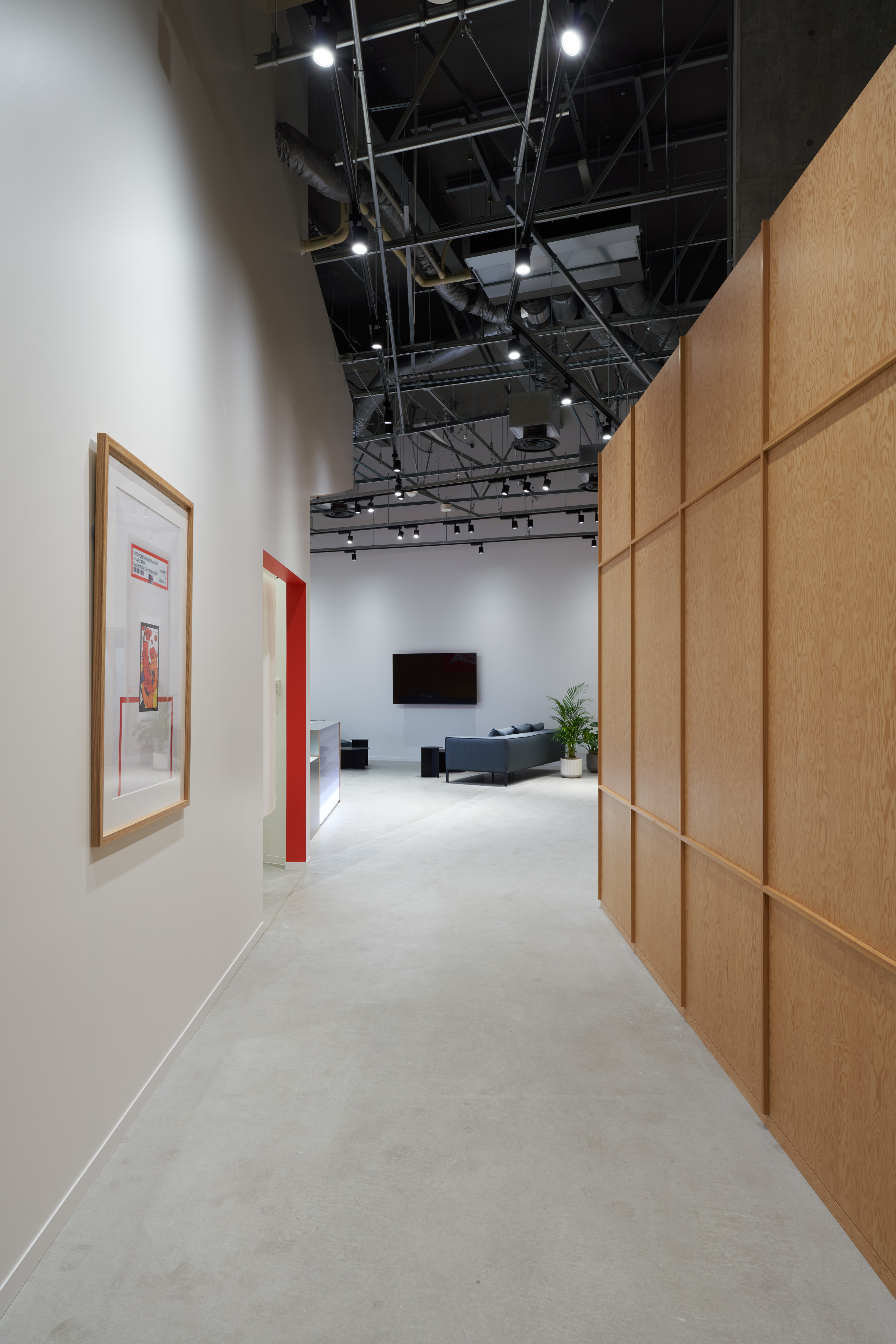 To make the most of the unique character of a logistics warehouse, we aimed to keep costs under control by exposing the raw structural elements while layering new materials, colors, and other design components around them. In this way, we sought to bring vibrancy, playfulness, and dynamism into an otherwise rugged space.