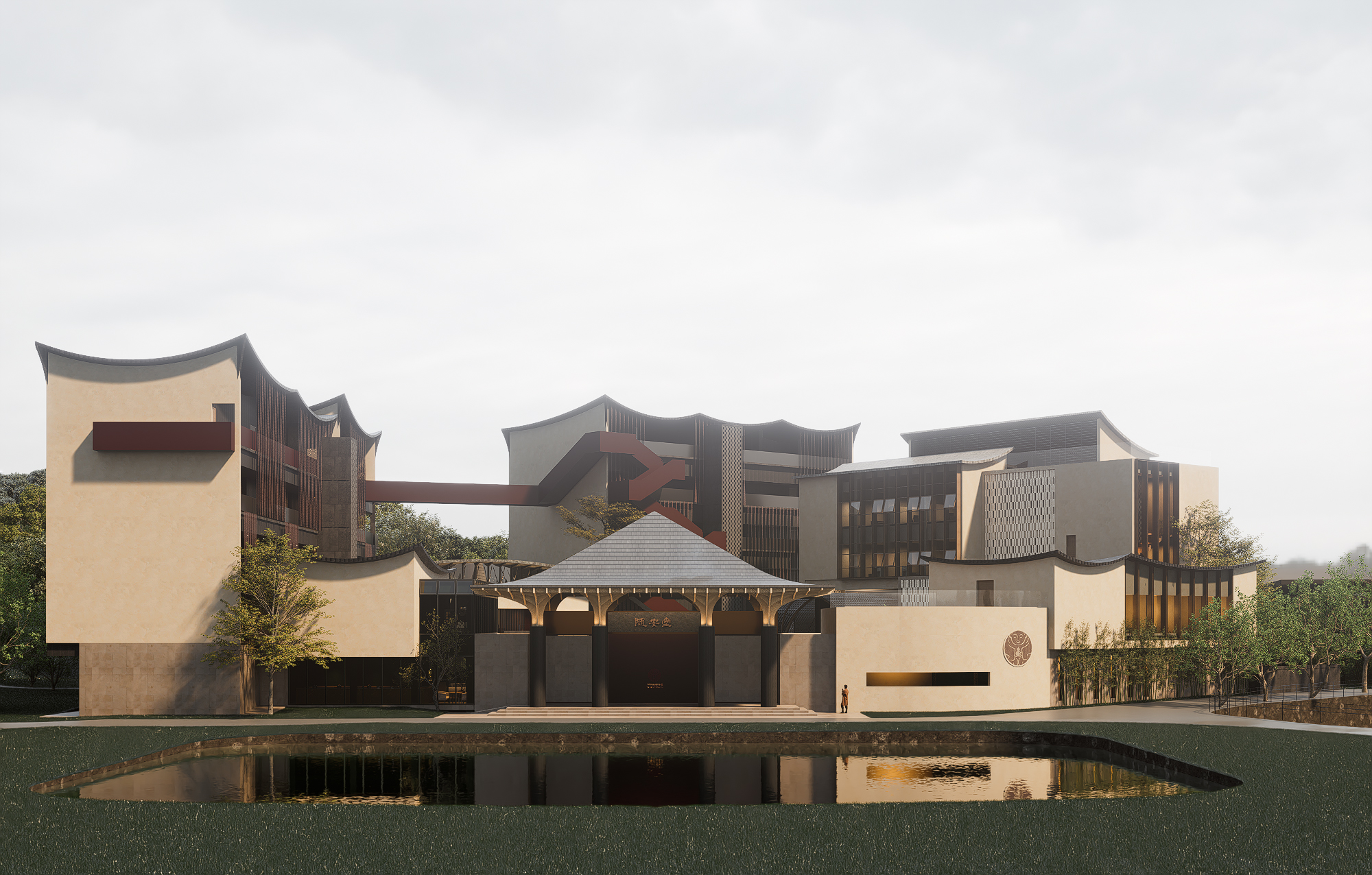 Rooted in Taoism’s unity of man and nature, the project integrates Yin-Yang philosophy into spatial and material design, becoming more than architecture—a hub of energy interaction between humans, nature, and the universe. Sustainability is achieved through energy-efficient design, natural lighting, sunshade systems, greenery, and ecological water cycles.