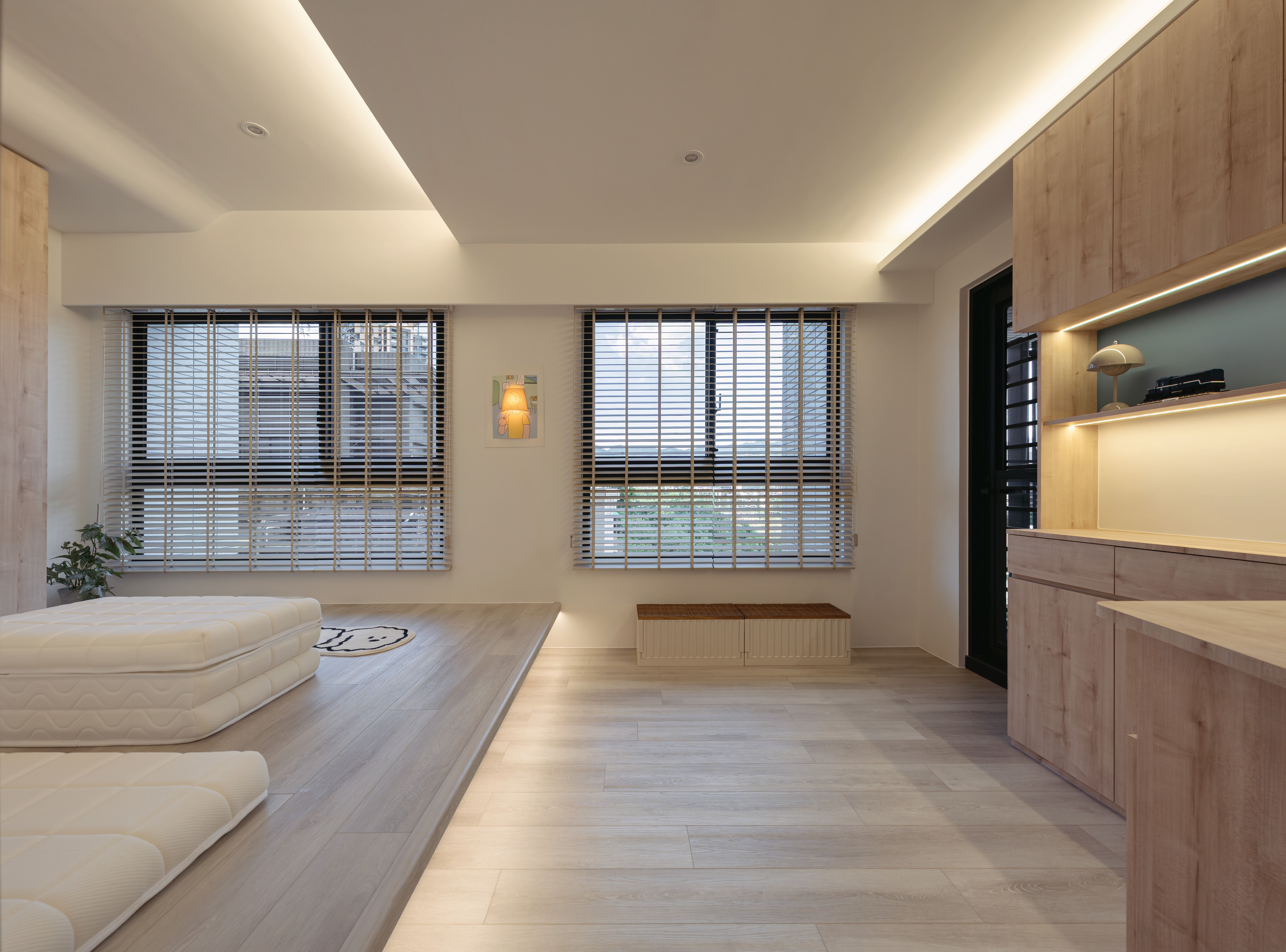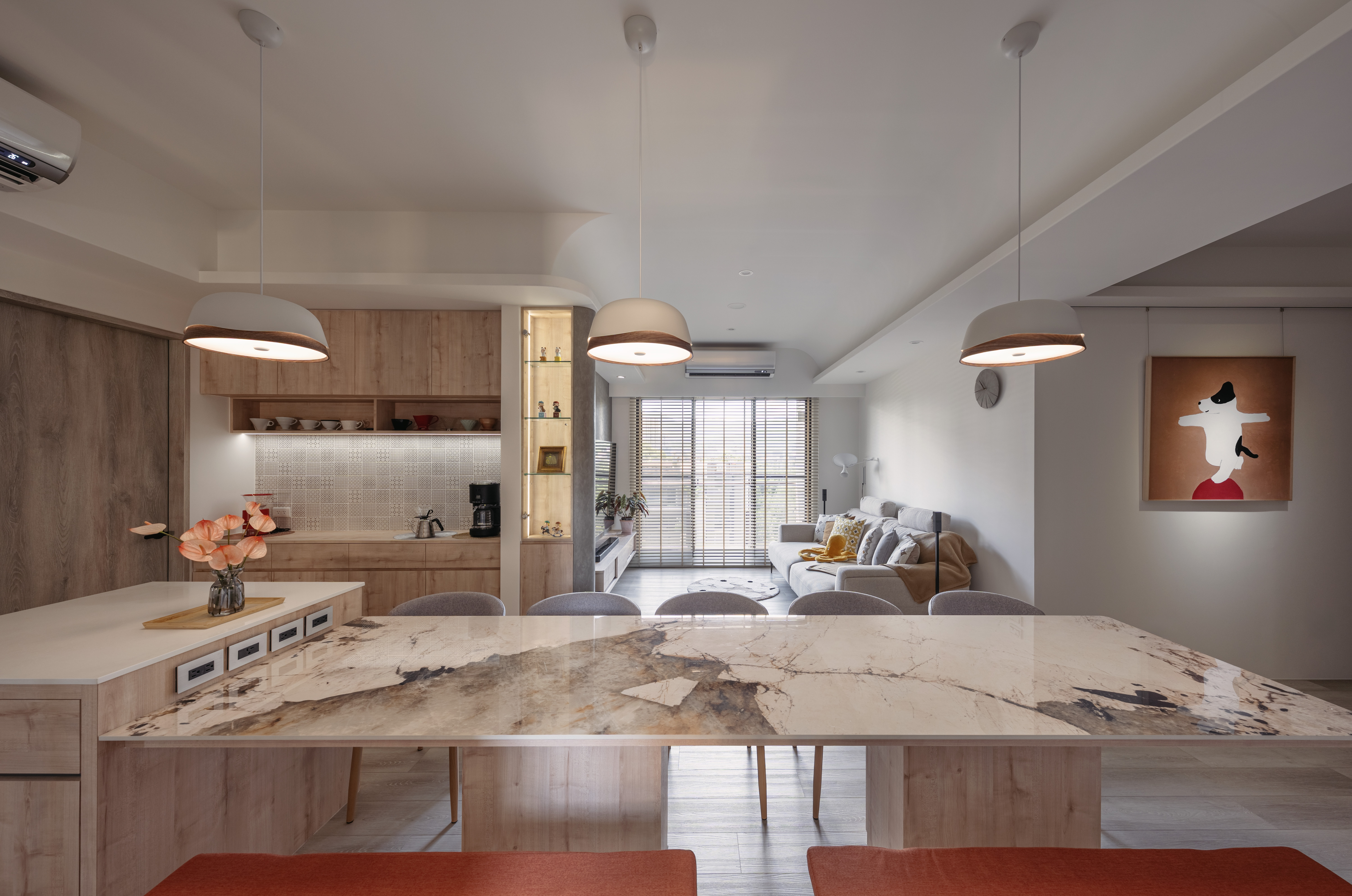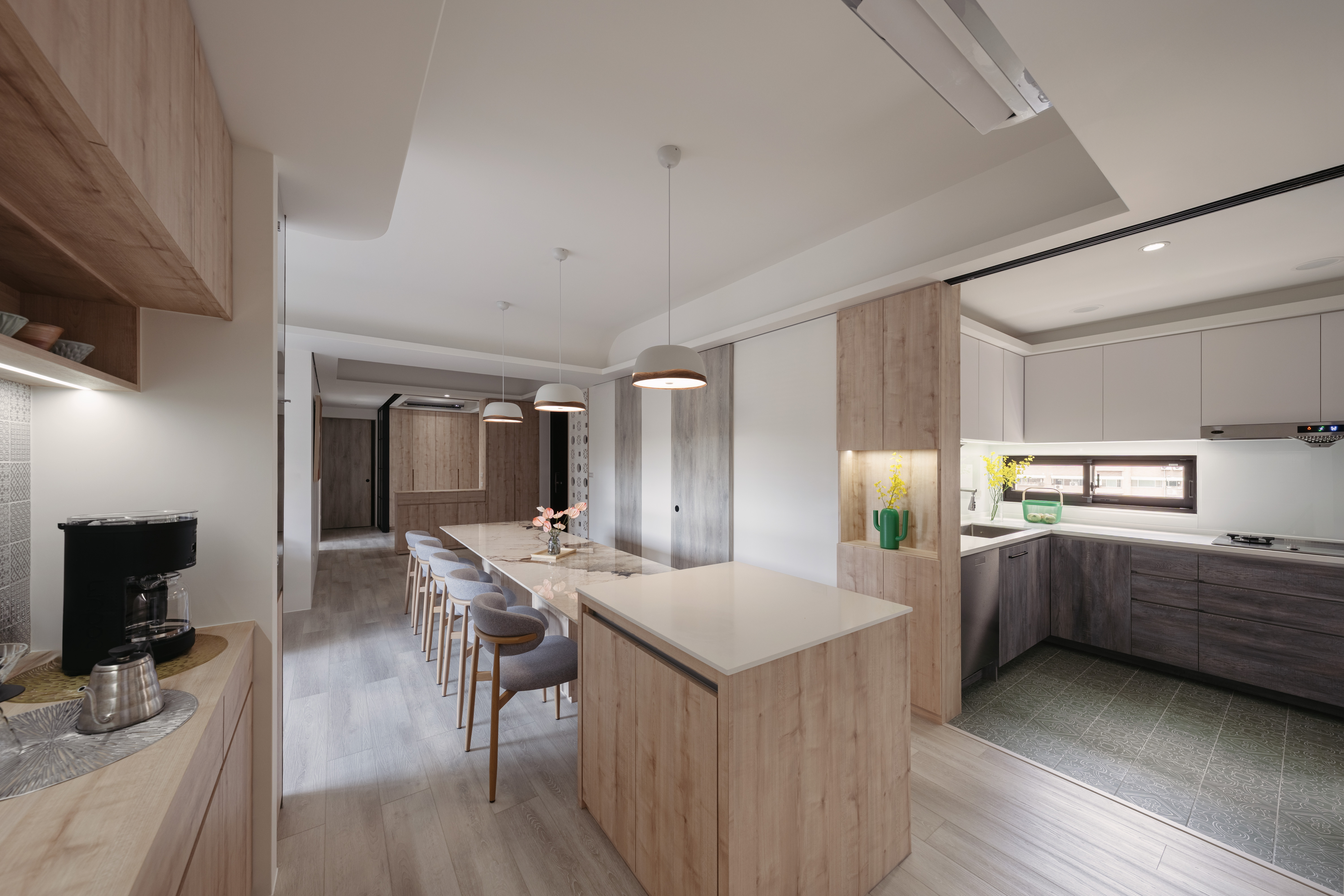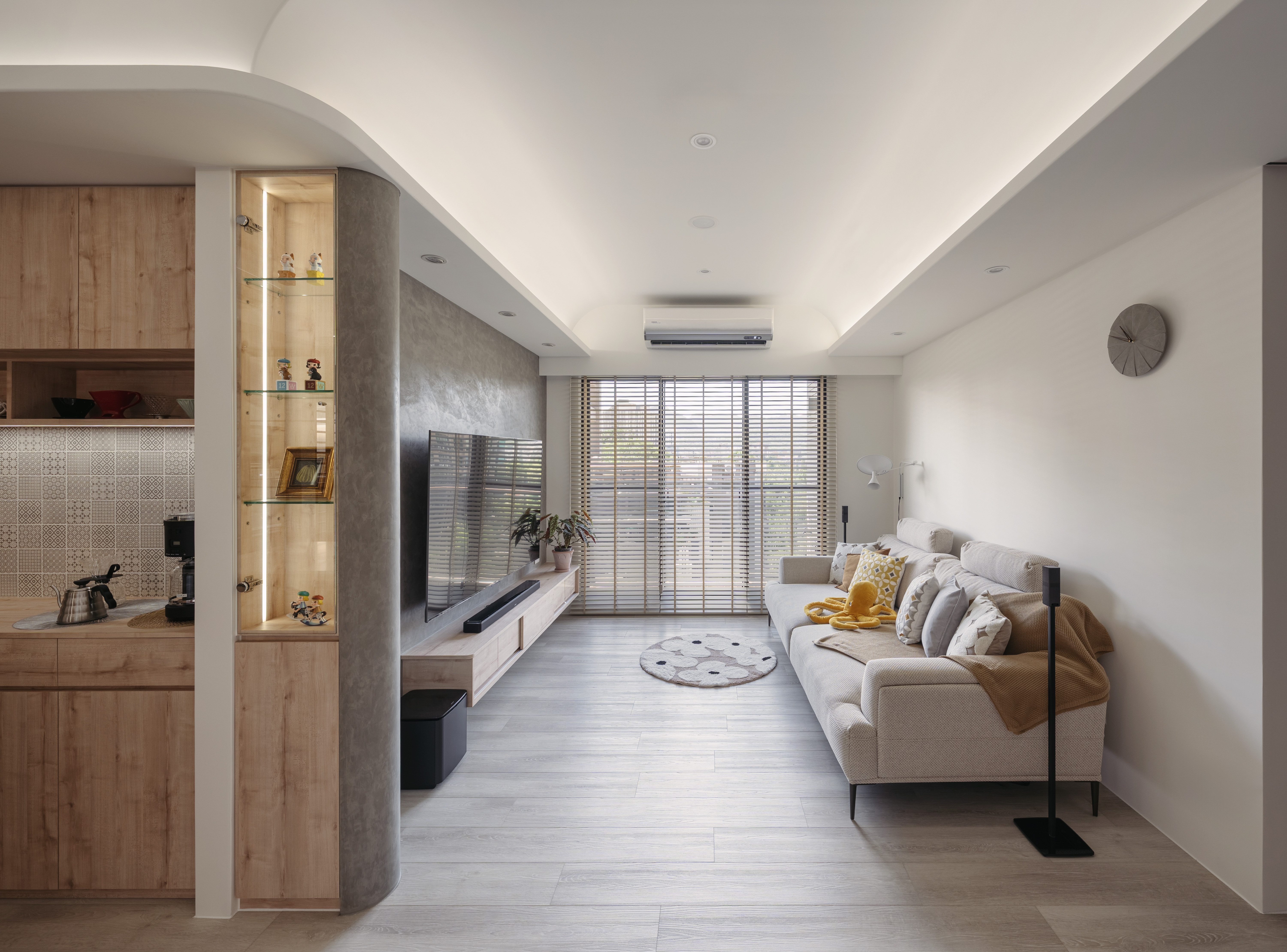 Between Heritage and Horizon reimagines a three-generation residence as a poetic dialogue between memory and renewal. Rooted in the spirit of the family’s ancestral home, the design extends a sense of belonging through openness, warmth, softness, and connection. The entrance opens with retro Taiwanese tiles shaped like ocean waves and a hollow brick partition that recalls vernacular craftsmanship. Together, they form a gentle transition between the outside world and a tranquil interior.