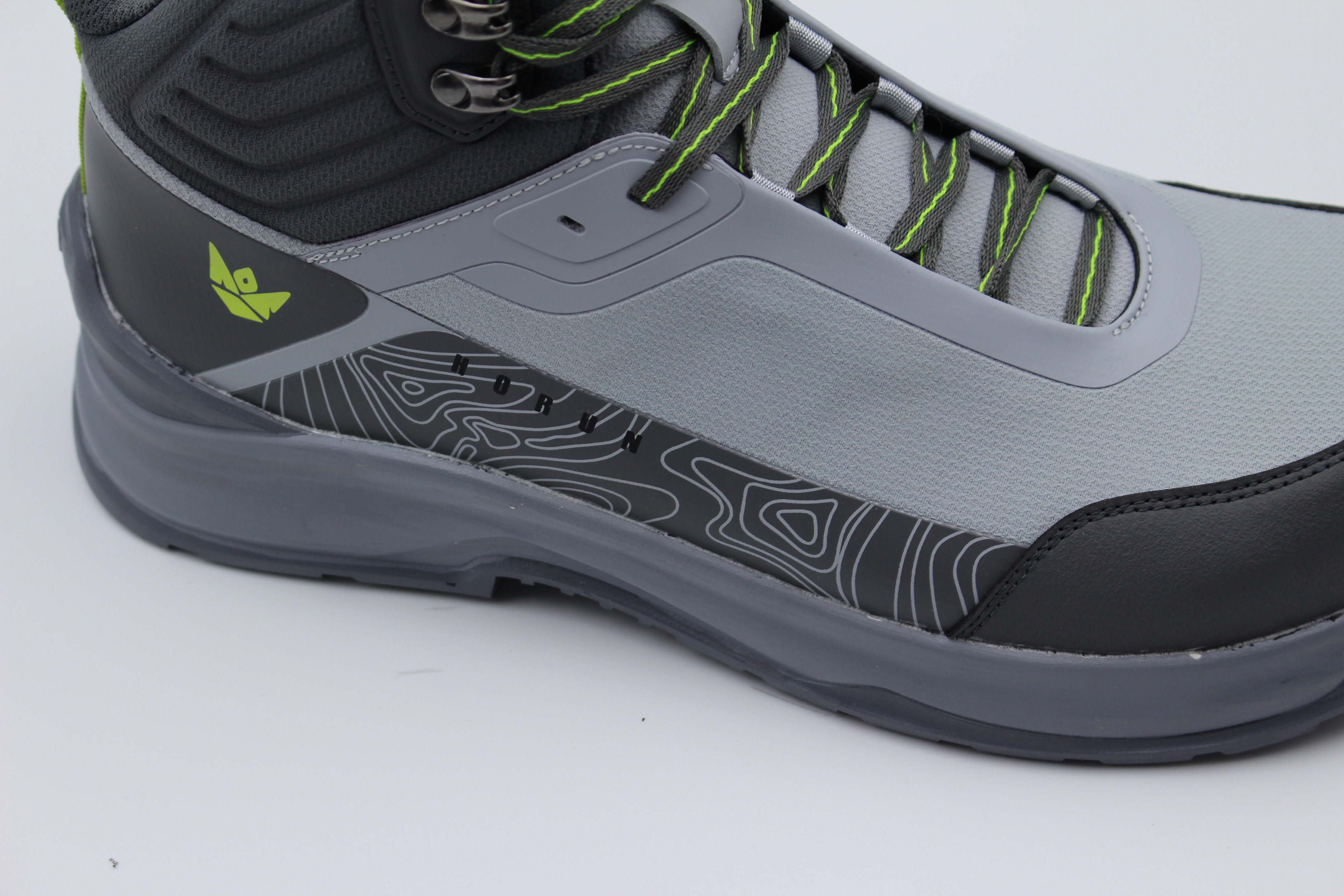The sole utilizes rubber and EVA, offering exceptional abrasion resistance, cushioning, and rebound, ensuring comfort and durability across complex terrains or during extended wear. Its tread pattern cleverly integrates the brand logo with a mountain motif, providing strong multi-angle traction while reflecting the brand’s commitment to revolutionizing the safety footwear. The high-top design offers reliable ankle support and protection, striking the perfect balance between comfort and safety.
