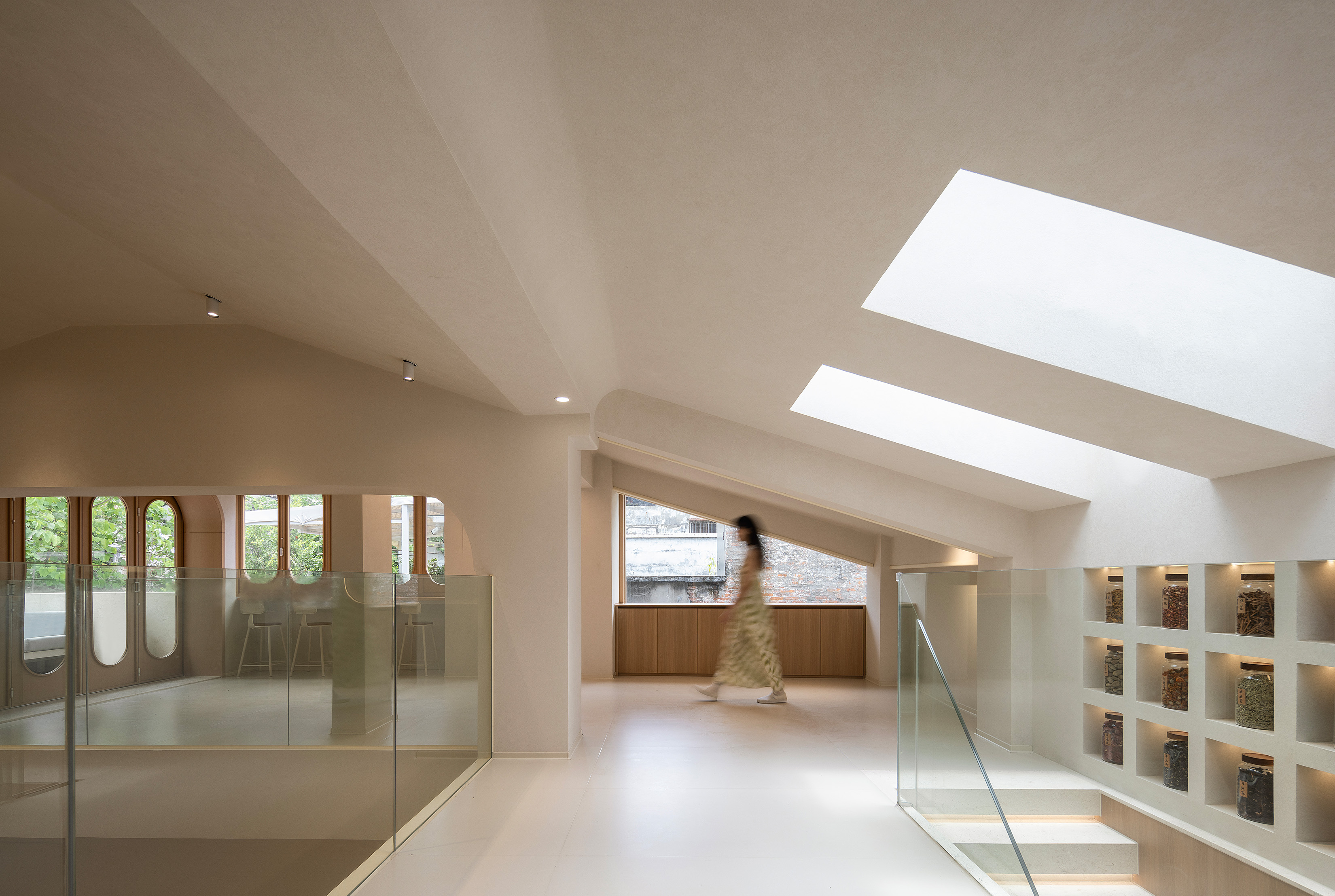 The De Lin Li Silk Coffee Lifestyle Store is nestled within a historic Qilou building on an old street in Guangzhou. The design creates an immersive brand experience centered around the brand's core product: high-quality silk. The entire spatial concept draws inspiration from the inherent qualities of this natural fabric—its texture, touch, and rich visual grain.