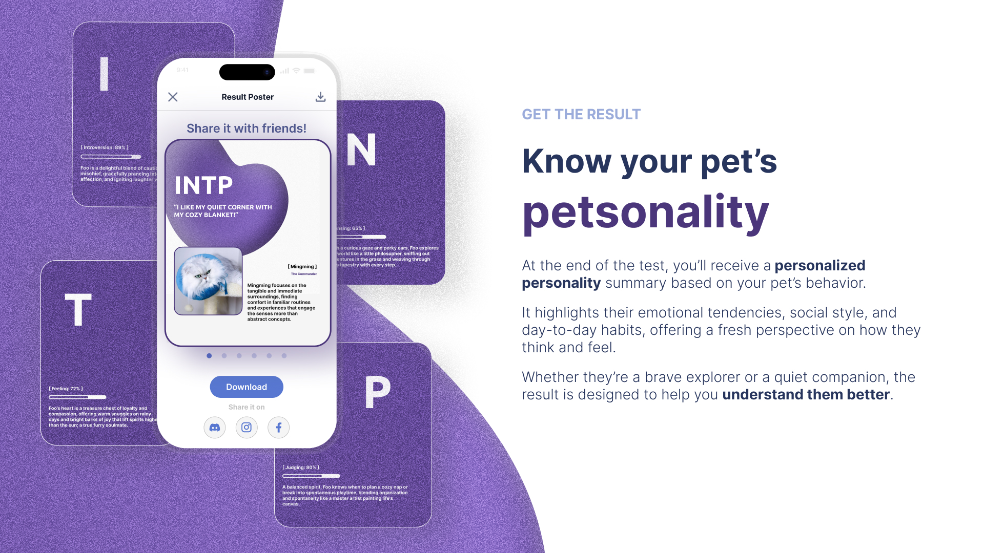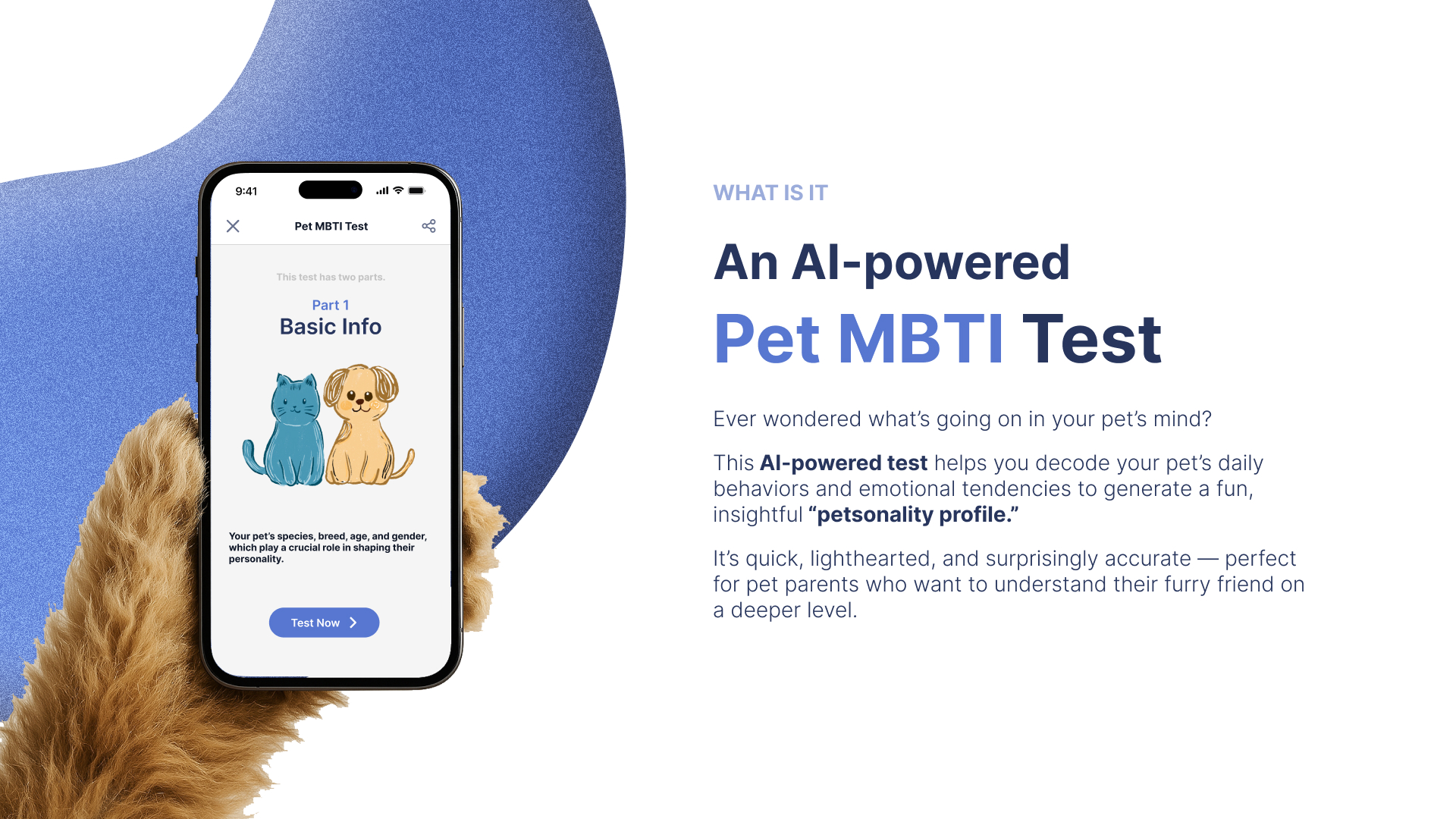 PET MBTI TEST makes understanding your pet not only accessible, but joyful. By turning everyday observations into structured insight, it strengthens the emotional bond between humans and animals through thoughtful design and technology.