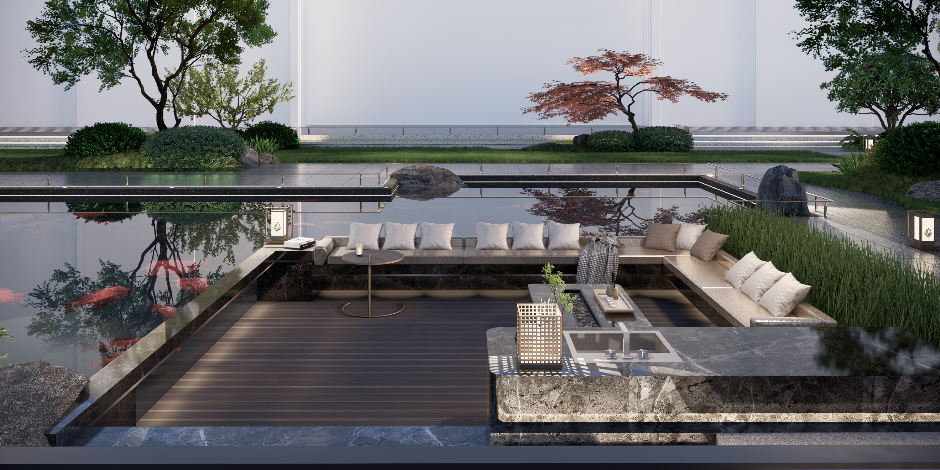 Centered on a “modern, understated luxury” aesthetic, the courtyard landscape transforms two individual villas into a single, expansive estate christened “Twin-Villa Lakeside Realm.” More than a simple merger of physical space, it is a profound reimagining of high-end outdoor living. Modern design language, varied leisure and entertainment zones, a serene, healing ambience, rare botanical specimens and the irreplaceable lakefront panorama are woven into one seamless whole. The result is a private garden of unparalleled distinction—an elegant synthesis of prestige, comfort, art and nature—that delivers owners an incomparable, grand-scale experience of contemporary, quietly luxurious courtyard life.