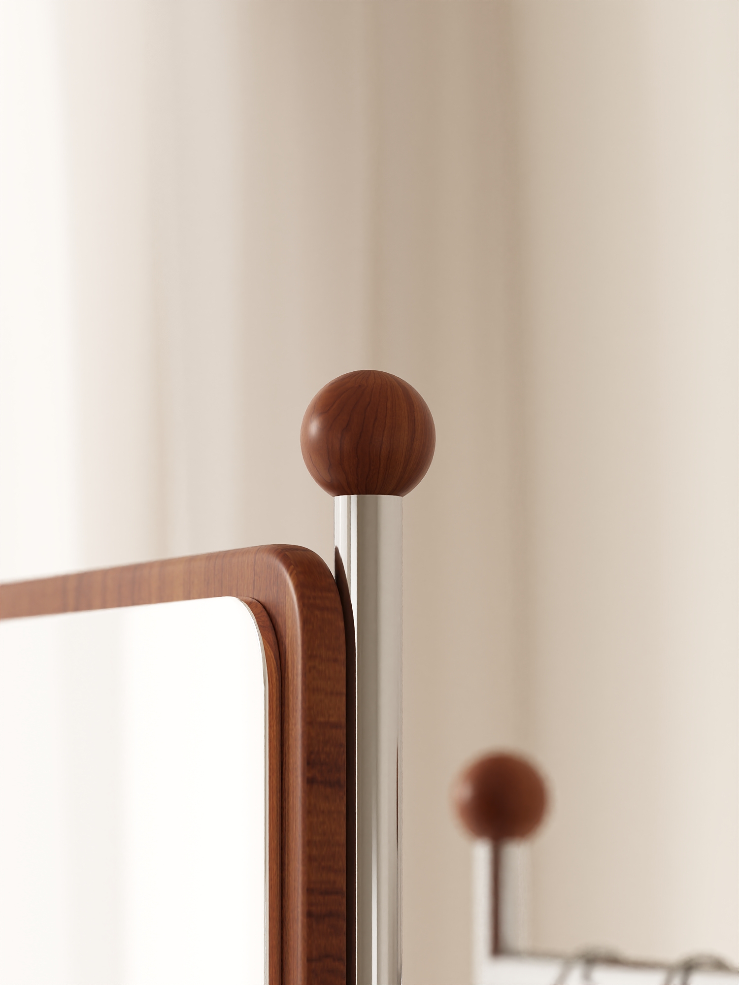 Regarding material selection, we uphold an ultimate pursuit of health and quality. The main body of the "QiuQiu" Swivel Mirror Stand is crafted from pure natural rubberwood solid wood, completely eliminating formaldehyde concerns and creating a truly healthy home environment for users and their families. Paired with a sturdy stainless steel frame, it is not only lightweight in structure but also guarantees long-lasting durability, striking a perfect balance between practicality and aesthetics.