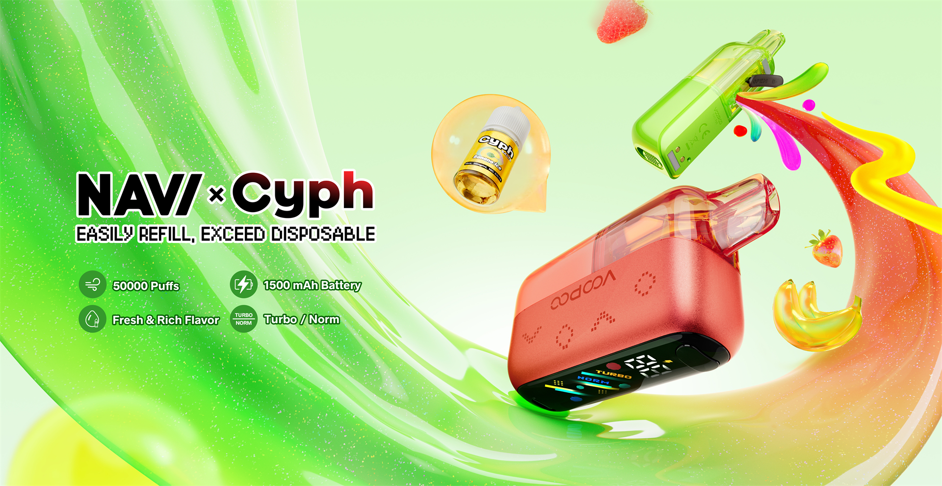 VOOPOO NAVI teams up with Cyph Salts to deliver up to 50,000 puffs while ensuring full compliance. Its refillable pod system and 0.6Ω dual mesh coil produce a fresh and rich flavor. Powered by a 1500mAh battery and housed in a compact, ergonomic body, NAVI stands out as a flavorful, well-designed, and cost-effective refillable pod.