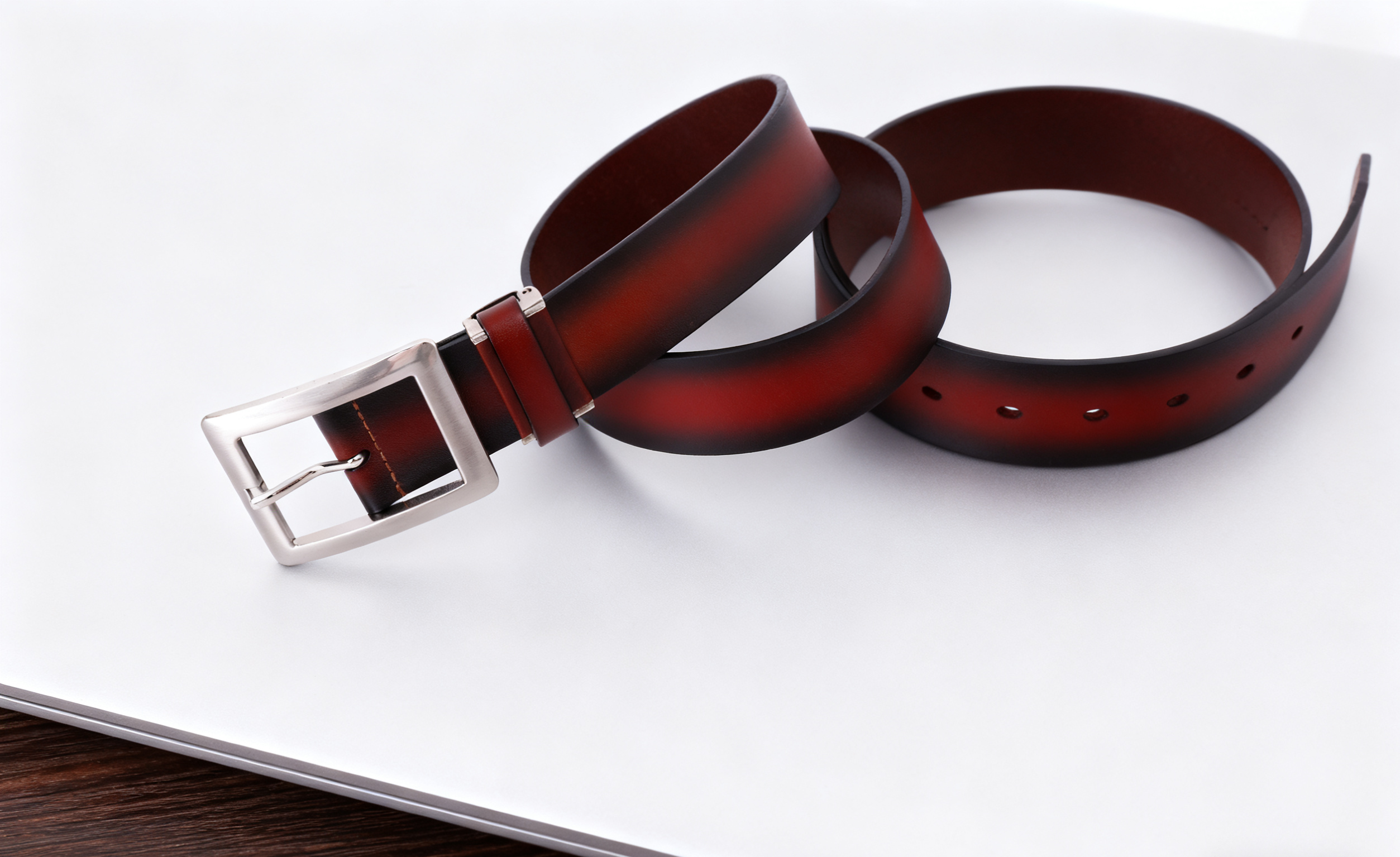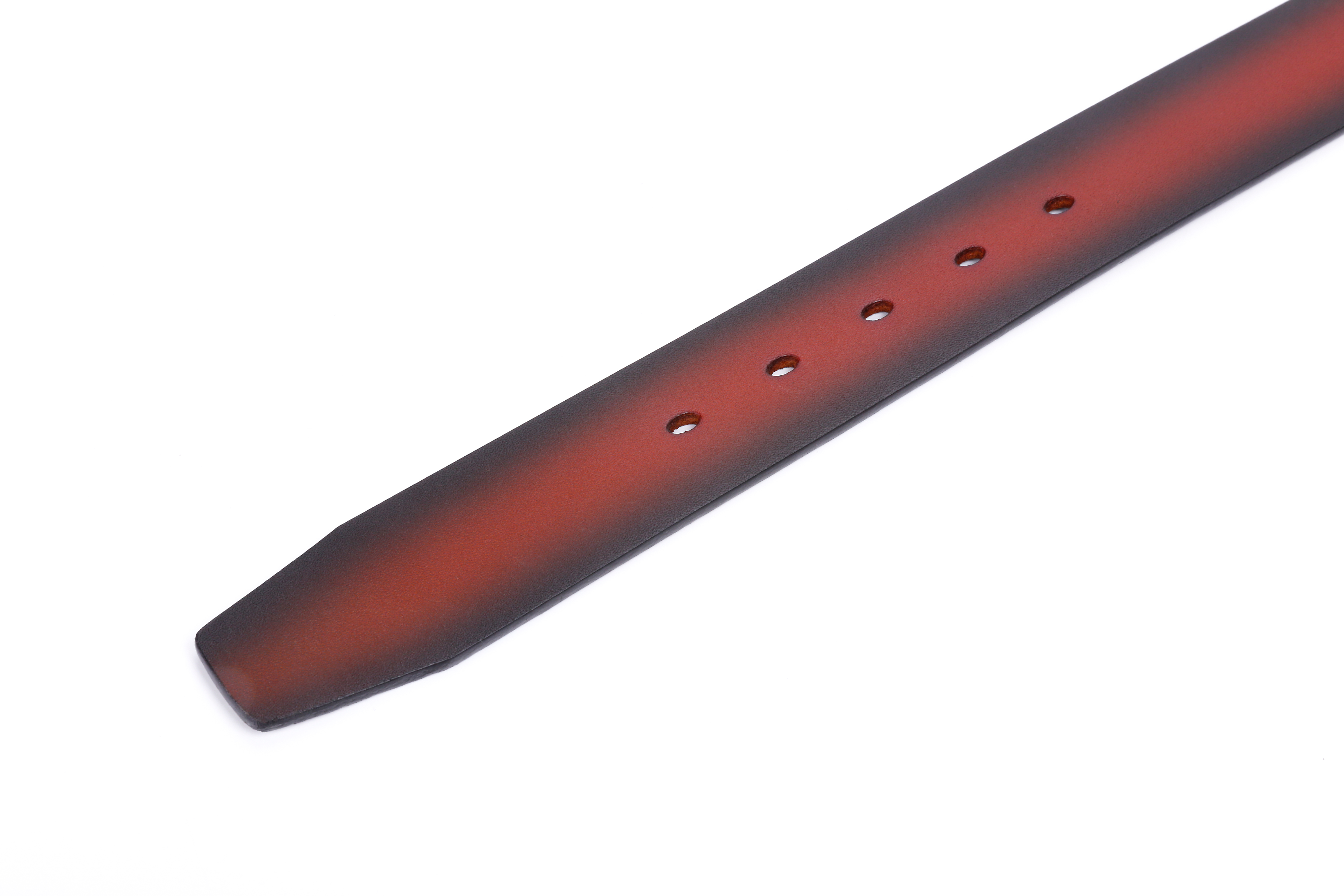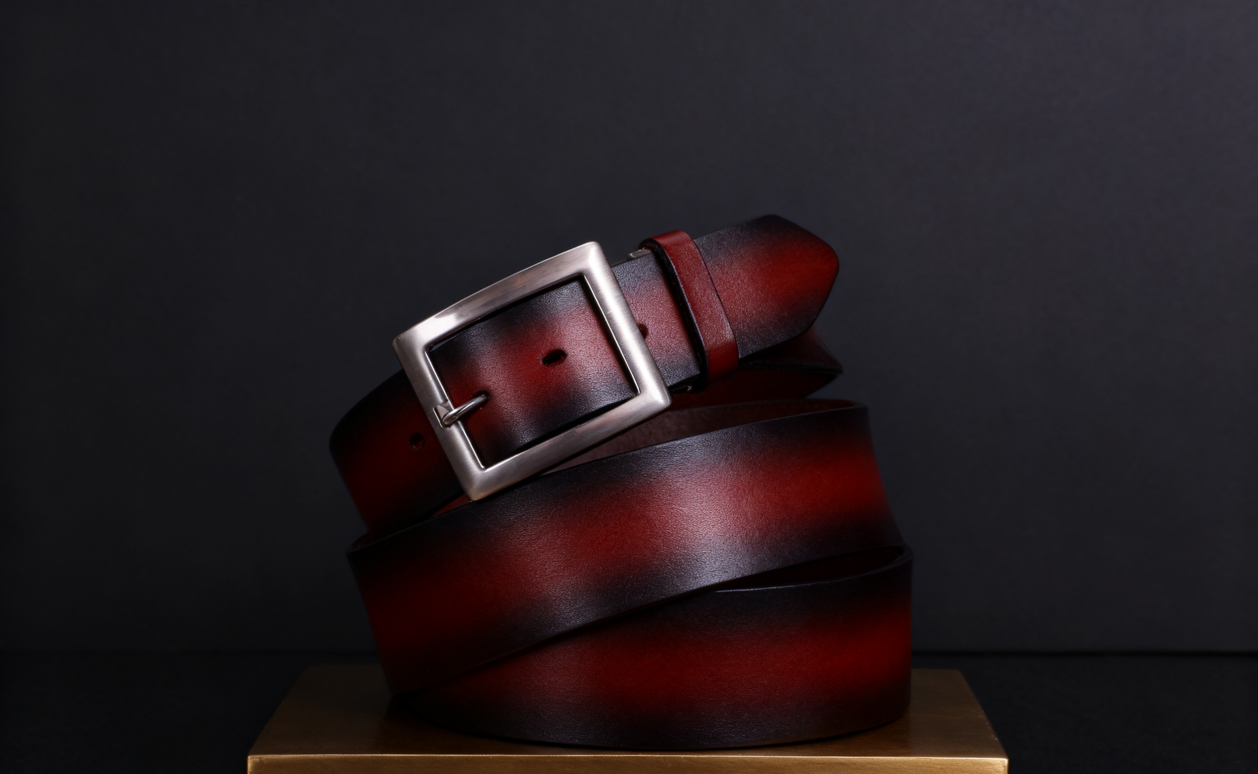 This men’s belt is crafted from premium full-grain leather, known for its exceptional strength, durability, and natural texture. The surface retains the original grain of the hide, providing a soft yet firm feel and a rich, sophisticated appearance that improves with age. The leather has been carefully hand-finished with a gradient brown tone, giving it a distinctive depth of color that transitions smoothly from deep brown edges to a warm reddish center. This refined design makes it an ideal accessory for both business attire and casual wear.