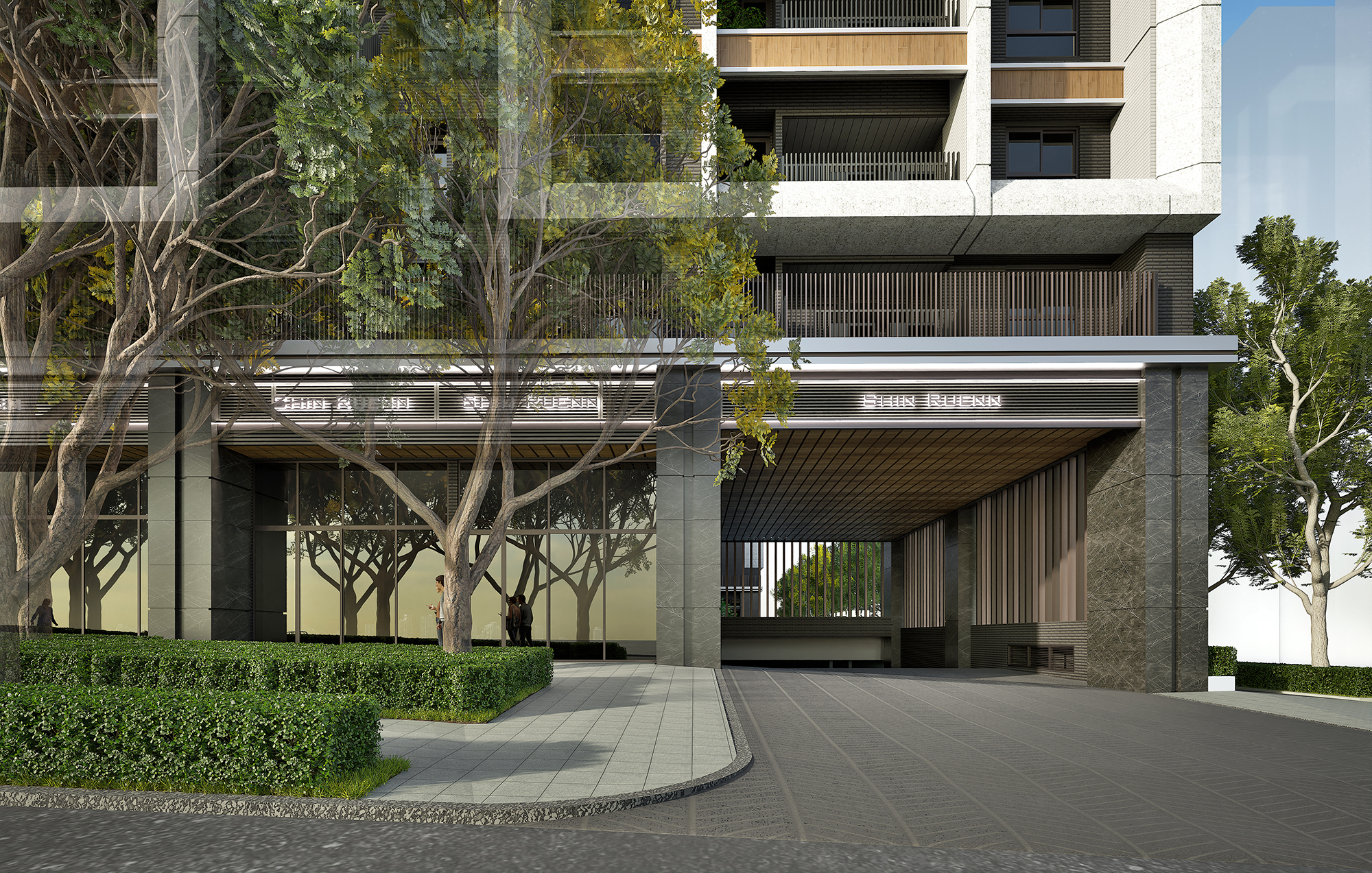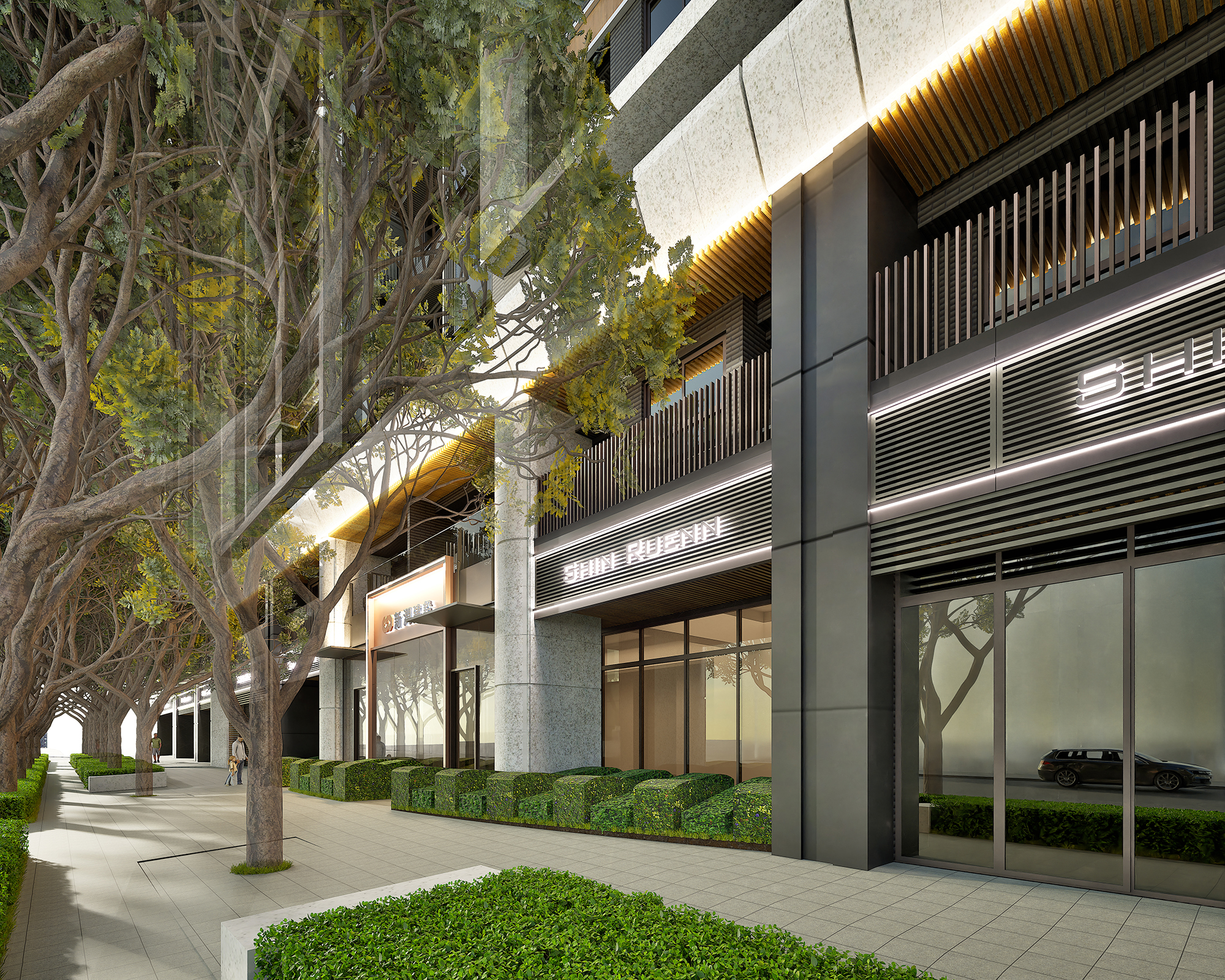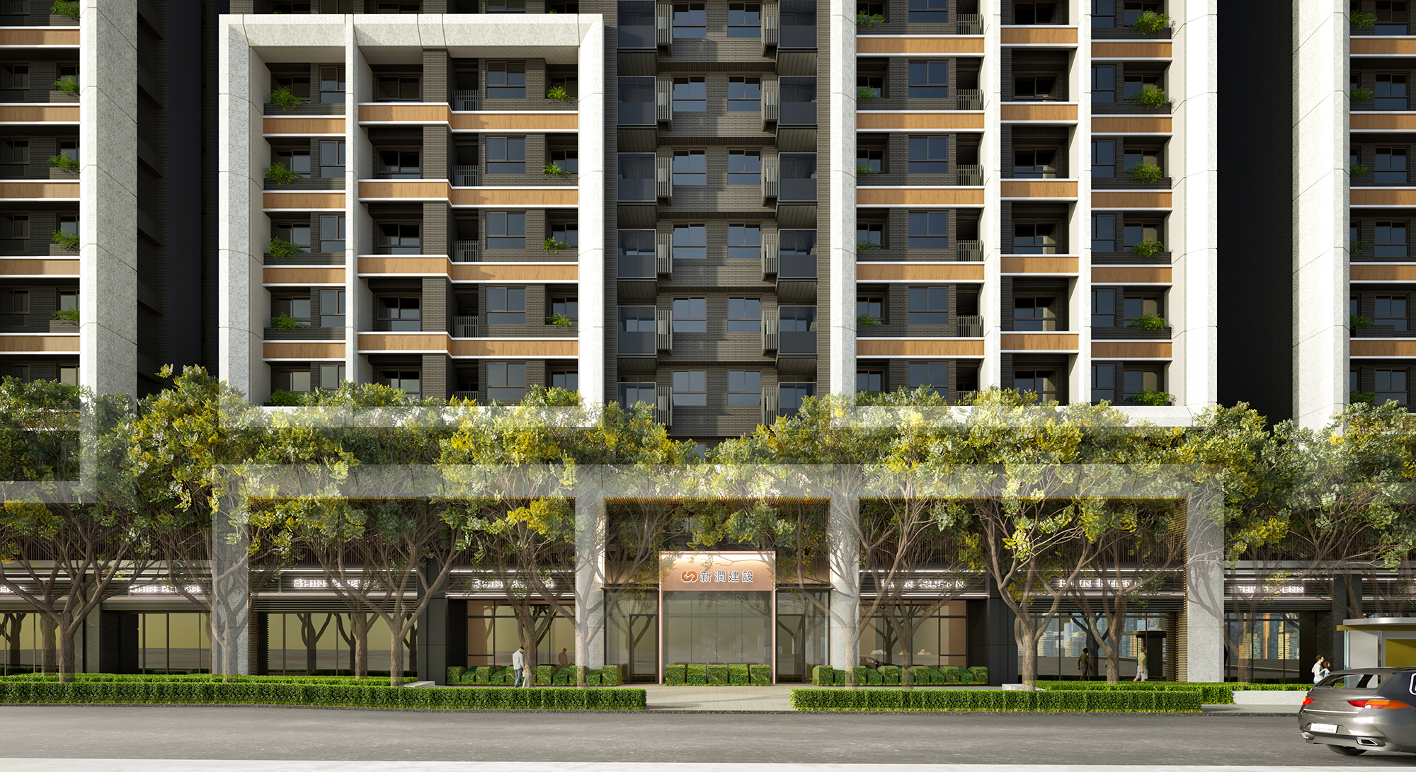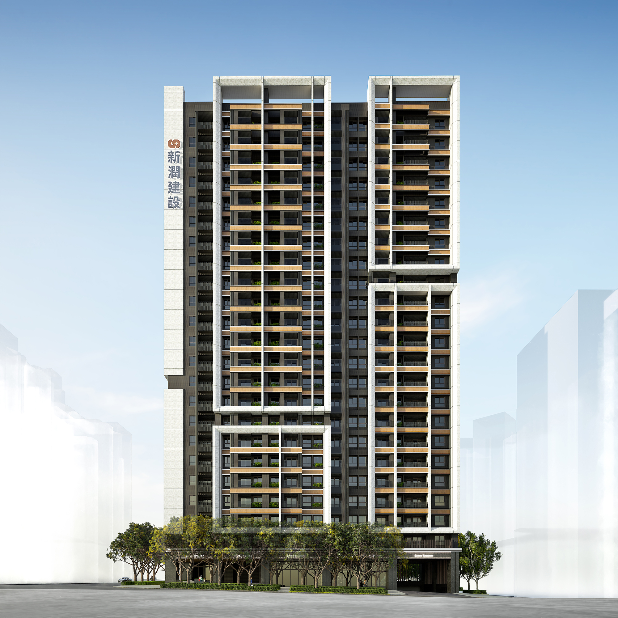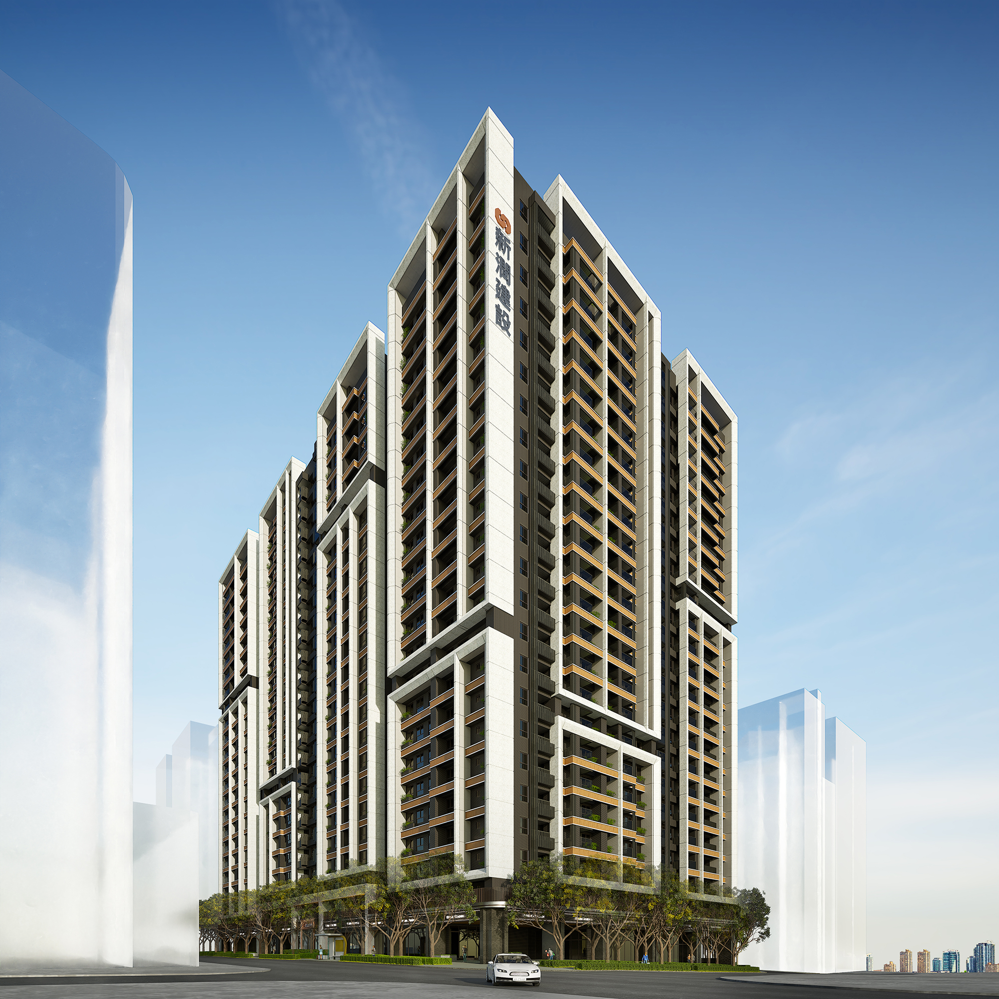 Moreover, the external facade design draws inspiration from successful vertical segmentation techniques seen in prominent international residential projects. This strategic simplification of the towers' mass effectively diminishes their imposing presence, allowing them to blend harmoniously into the skyline. Featuring clean lines, natural stone, and warm-toned metals, the facade artfully interacts with light and shadow, creating a visually striking and layered effect. At the street level, the emphasis shifts toward transparency and connectivity. With inviting transparent facades and lush greenery, the design cultivates a pedestrian-friendly environment that encourages positive interactions between the development and its surrounding neighborhoods. This thoughtful approach not only enhances the aesthetic appeal but also promotes a vibrant community atmosphere.