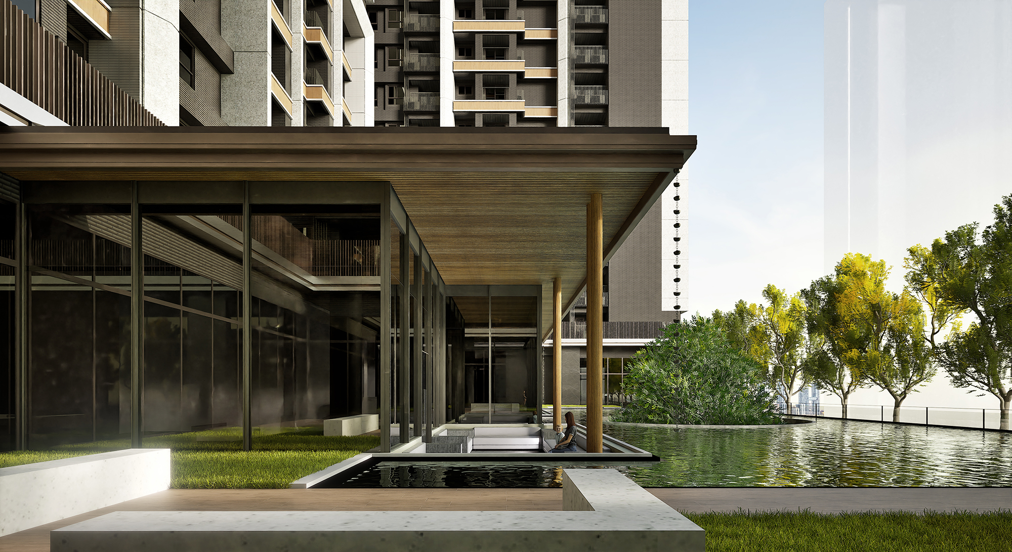 The development of a large-scale site presents a unique challenge that involves skillfully balancing the intimate feel of human scale with the broader dynamics of urban scale. To address this, the design embraces a thoughtfully crafted courtyard layout that fosters a welcoming sense of enclosure and community. Simultaneously, it incorporates visual corridors and green axes, which enhance natural lighting, improve ventilation, and provide stunning scenic views. This innovative concept revitalizes the essence of traditional courtyards, merging it seamlessly with contemporary architectural language. In doing so, it establishes a meaningful dialogue between the imagery of Eastern settlements and the sleek forms of modern high-rises.
