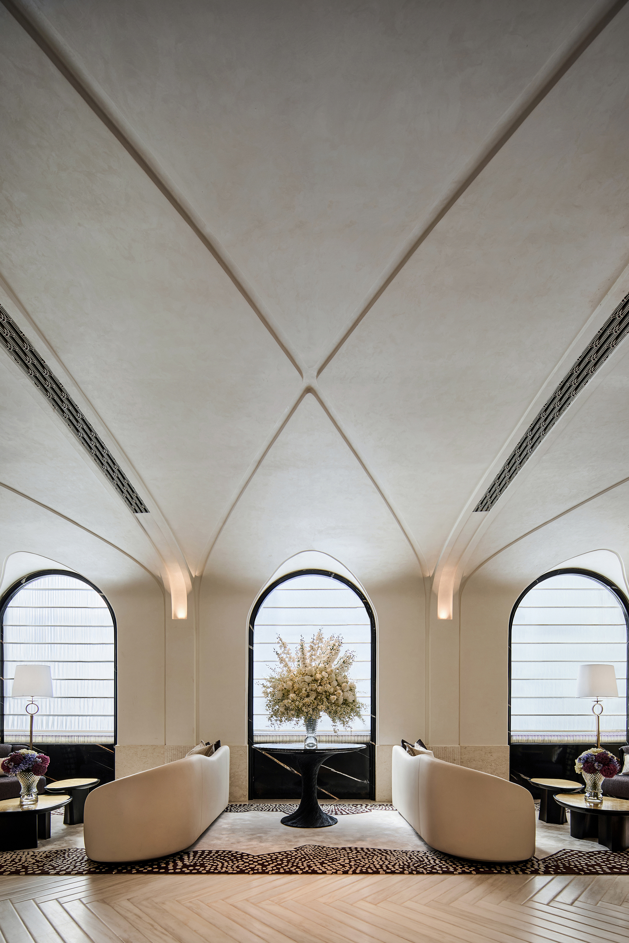 This project draws inspiration from the Palais Garnier, manifesting as a "sanctuary of art distilled through time." The design team orchestrates a contemporary interpretation of arched structures and Baroque curves, interweaving geometric order with metallic luminescence. Lines arrange themselves across tiered sequences in refined articulation—a spatial symphony that unfolds in measured, unhurried tempo. Throughout, ivory and warm gold tones cascade in luminous accord, allowing classical essence to merge seamlessly with contemporary rhythm. The result is an artistic temple where cultural depth and aesthetic sophistication converge.