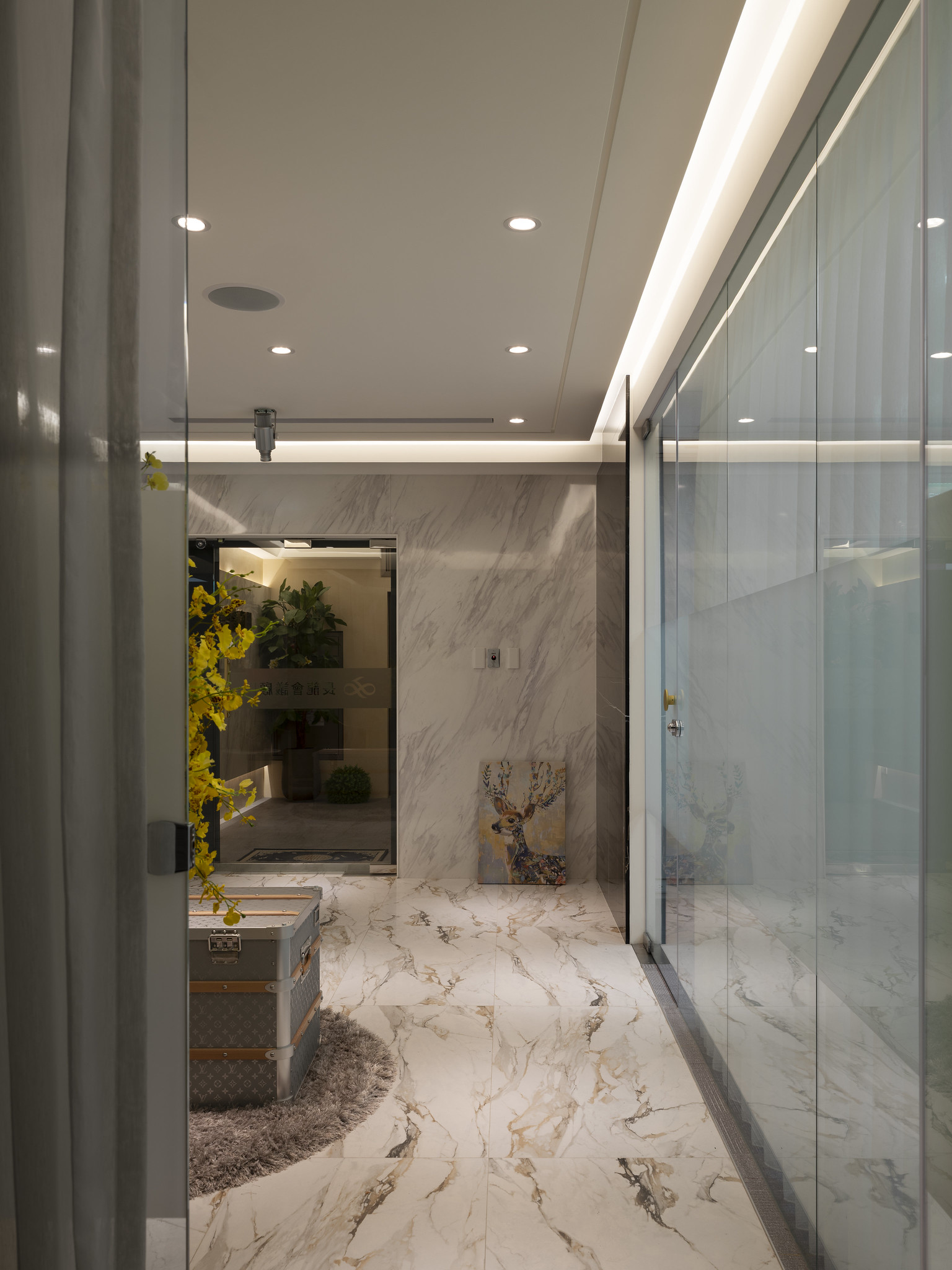The client's preference for light colors inspired the designer to incorporate elements and craftsmanship such as marble and gold accents into the public areas. Bright and bold colors served as the base tone, complemented by stone and furniture decorations, and the introduction of sunlight and greenery, giving the space a refined, elegant, and comfortable charm.