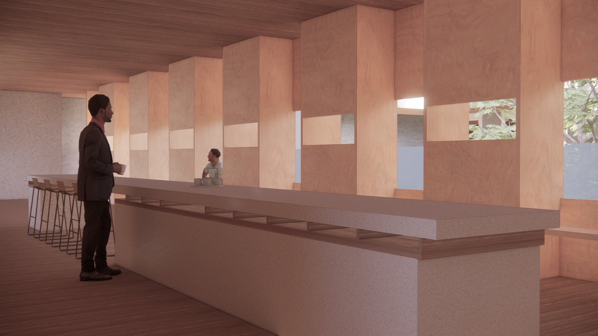 This project is an experiential tea center designed to reconnect people with natural phenomena within an interior environment. It responds to urban isolation and the increased indoor confinement highlighted during the pandemic, exploring how architecture interior can restore human awareness of natural rhythms. The design uses light, rain, gravity, and plant growth as active thresholds that define circulation, shape atmosphere, and create sensory moments.