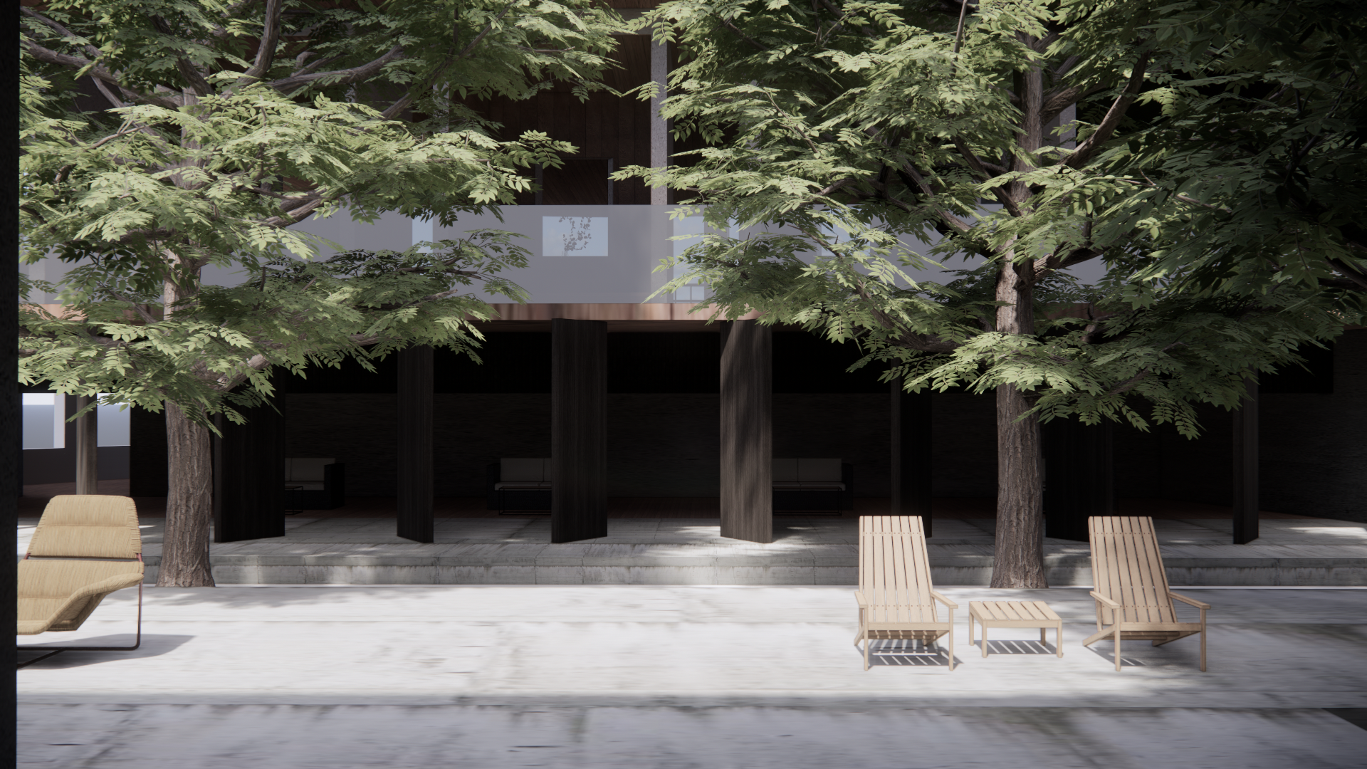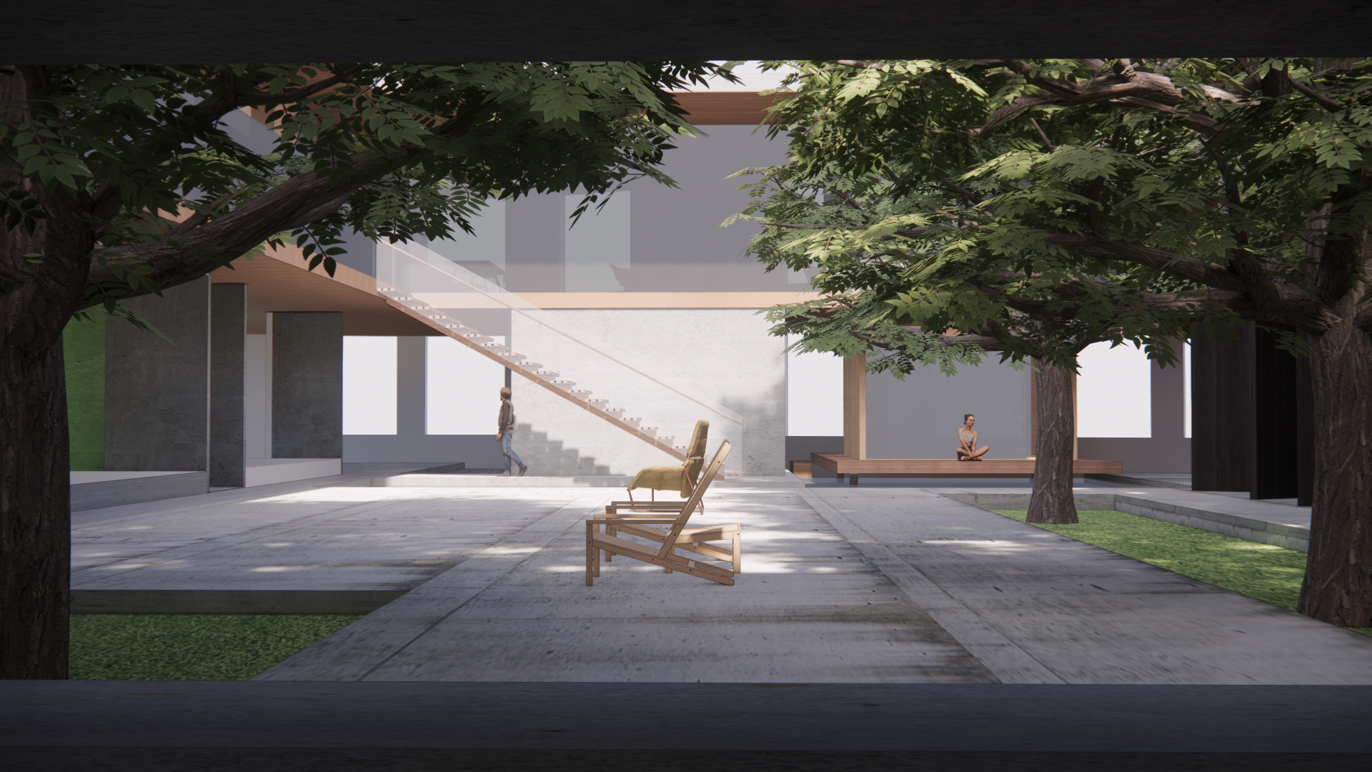 Greenery is integrated deeply into the interior, allowing plants to influence light, air, and movement. Natural materials such as wood and stone are employed to emphasize texture, warmth, and the passage of time. Thresholds are designed to frame views, stretch experiences, and allow human activities to occur within transitional zones, replacing rigid partitions and creating a fluid spatial hierarchy. Gravity organizes vertical movement through ramps and steps, while rainwater collection feeds interior gardens and pools, reducing reliance on mechanical systems and enhancing environmental responsiveness.