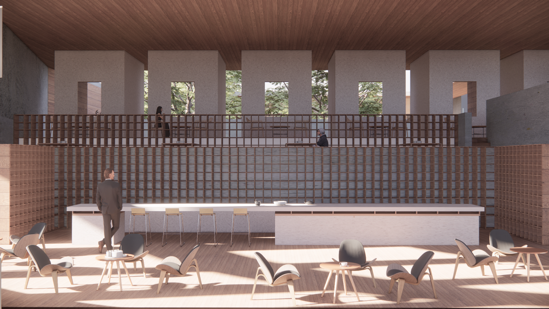 The project merges the ritual of tea culture with architecture, offering spaces for tea tasting, learning, and trading. Activities engage the five senses, heightening awareness of both human and natural processes. By embedding natural phenomena as part of the spatial and functional logic, the design transforms everyday transitions into meaningful encounters with time, light, and seasonal change.