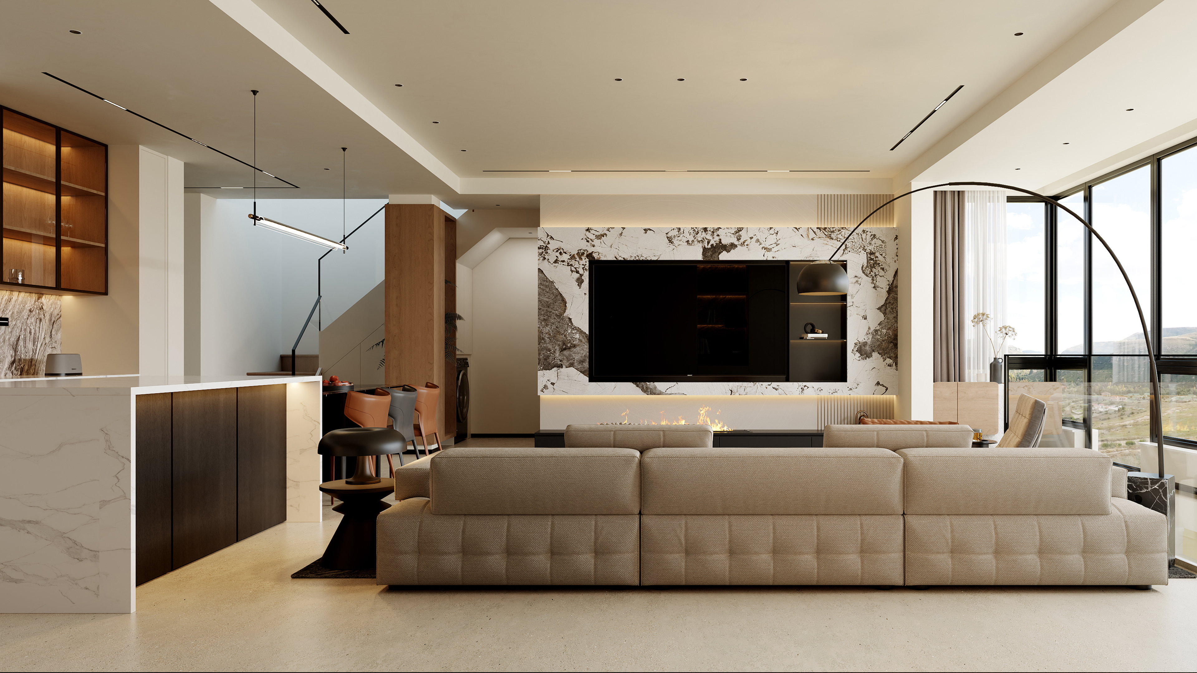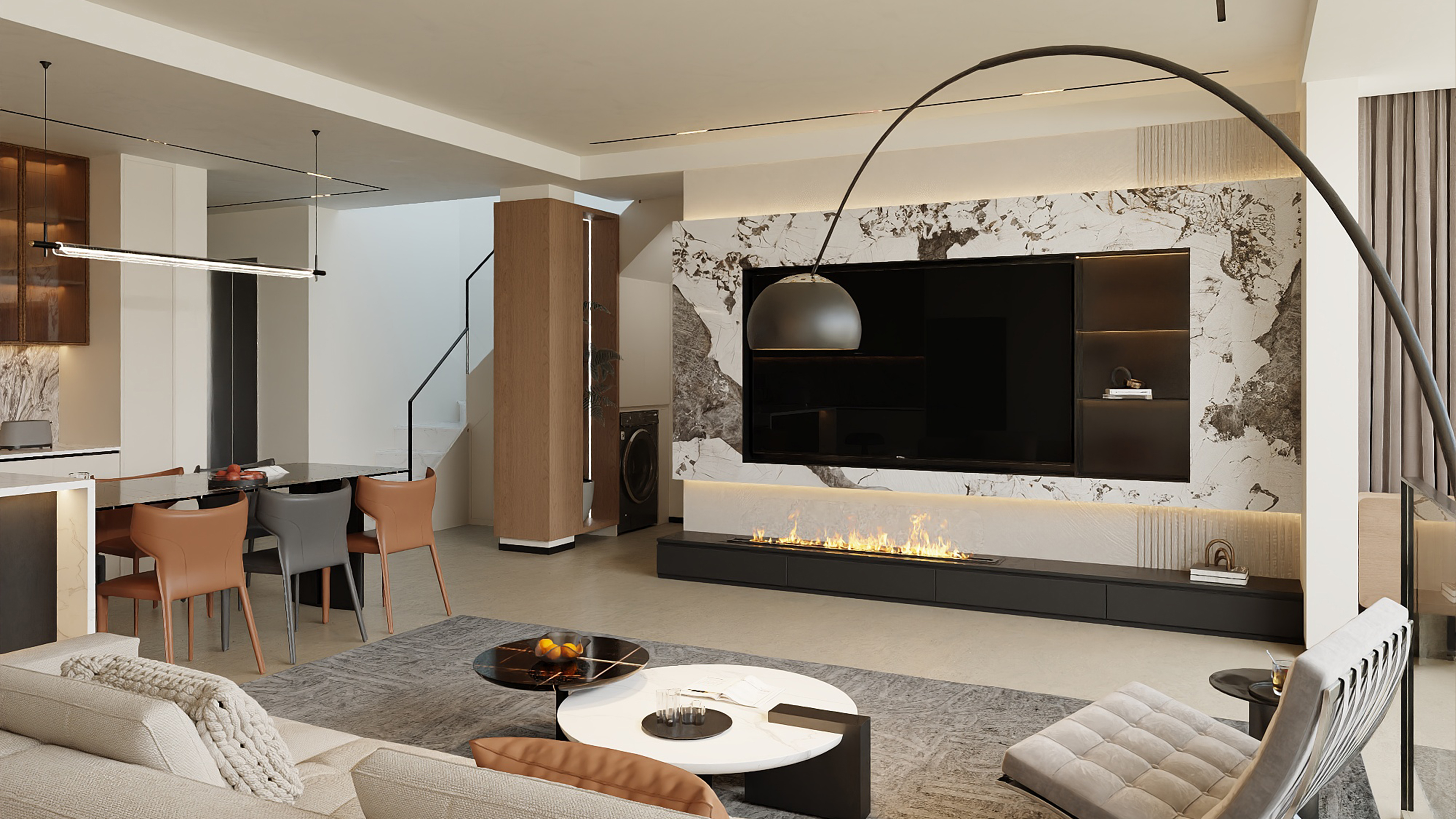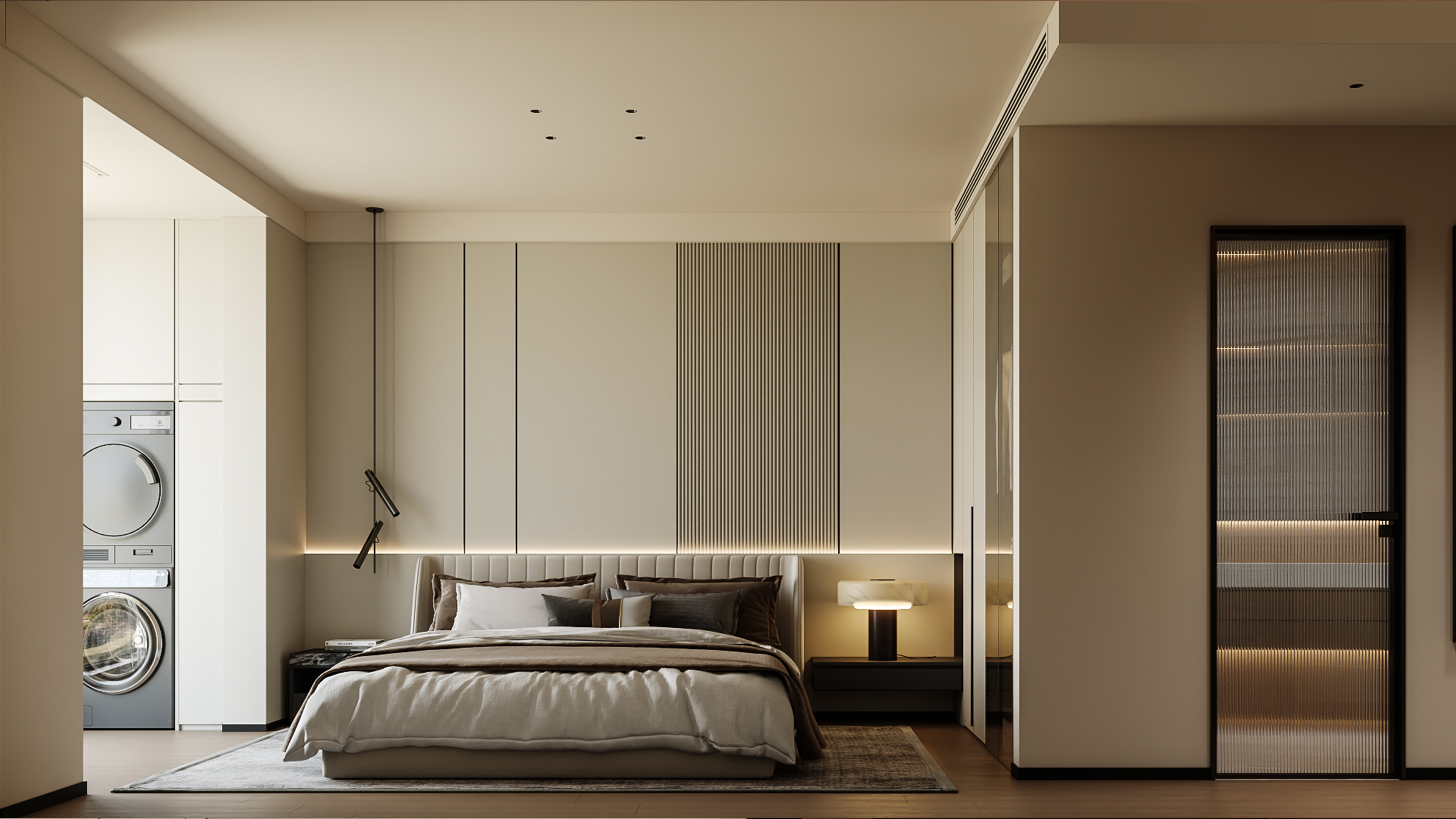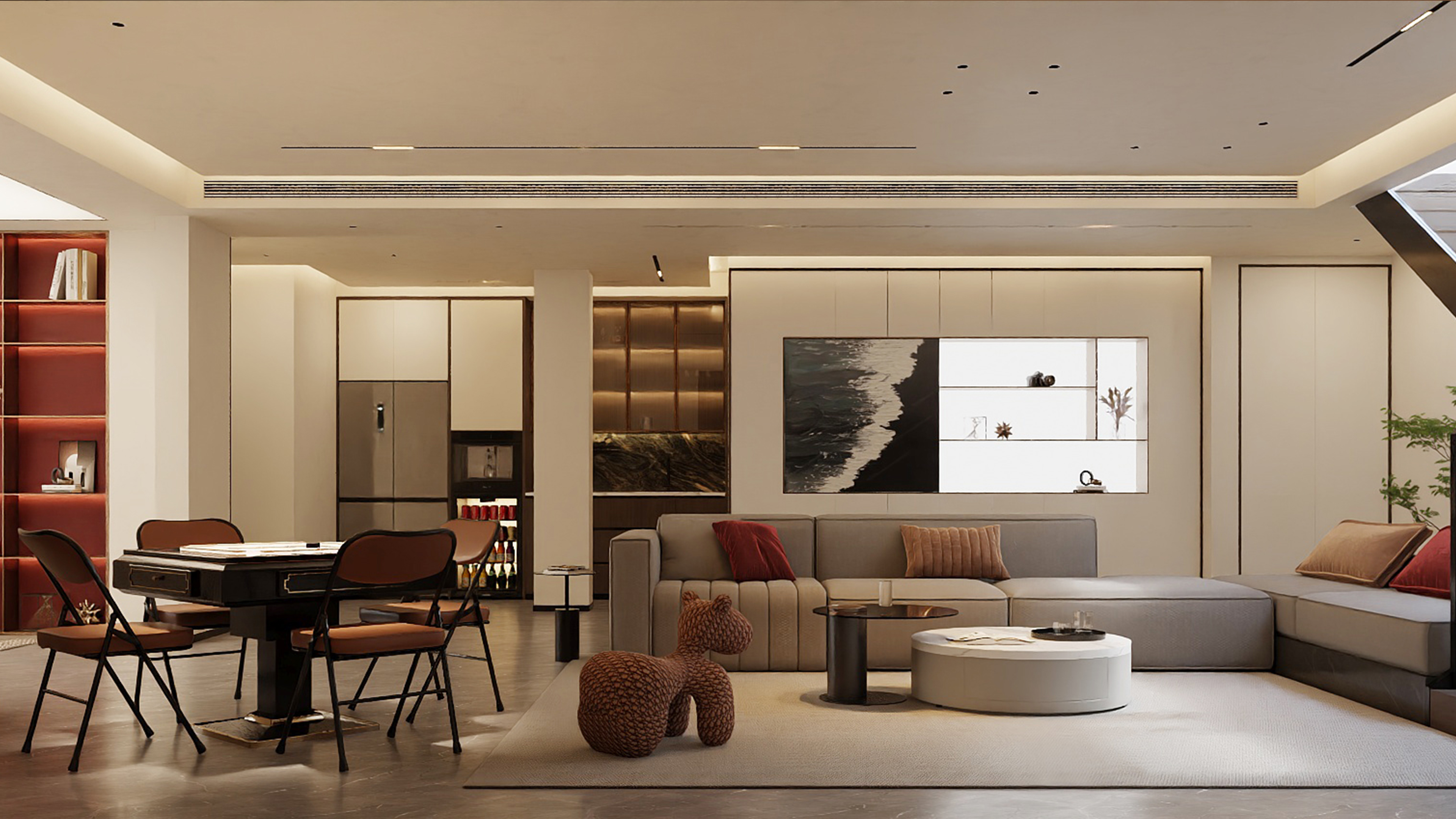 Addressing the growing prevalence of multigenerational living, the project adopts a design language rooted in “balanced aesthetics”—a contemporary reinterpretation of moderation that harmonizes varying age groups, lifestyle habits, and cultural expectations. Each family member is provided a clearly defined private zone, while generous communal spaces support work, reading, gatherings, relaxation, and entertainment. By removing unnecessary partitions between key functional areas, the spatial flow becomes open and breathable, enhancing daylight, sightlines, and a shared sense of belonging. This openness ensures that returning home—whether from school, work, or daily errands—naturally transitions into a holistic living experience that is calm, connected, and restorative.