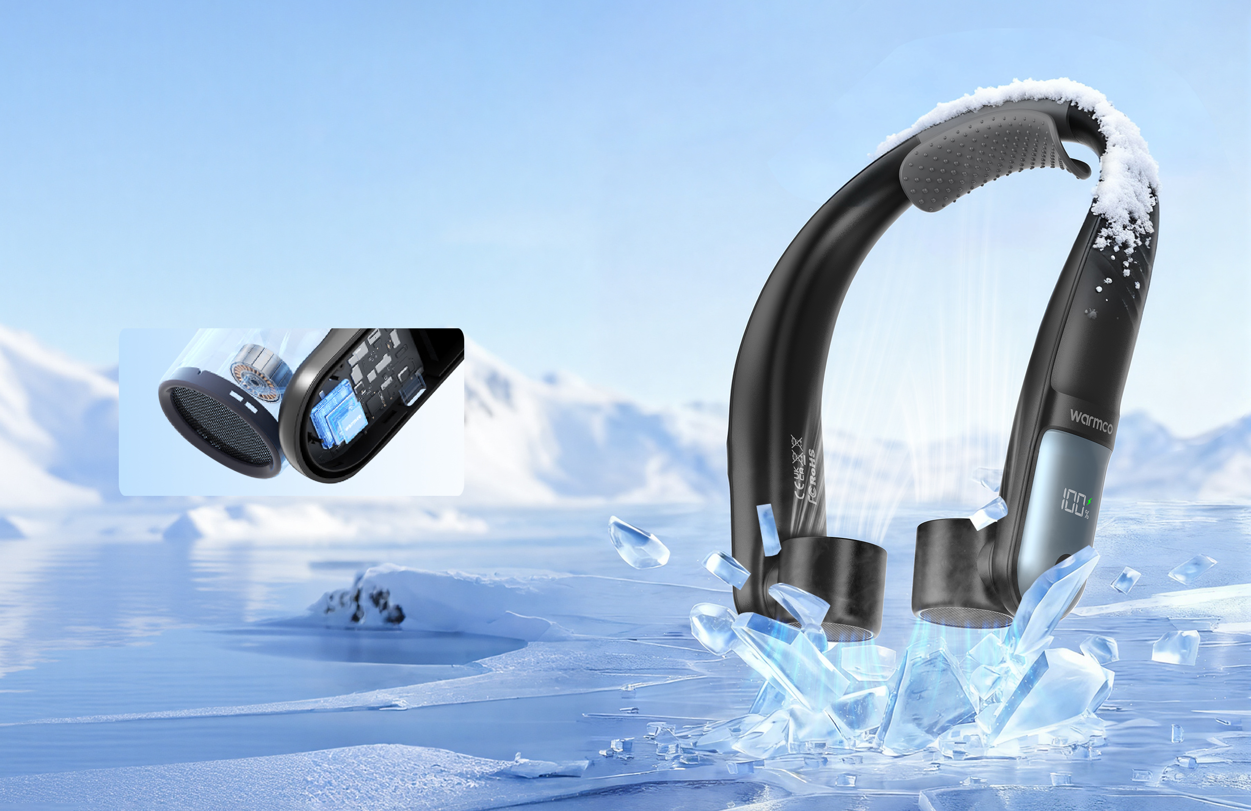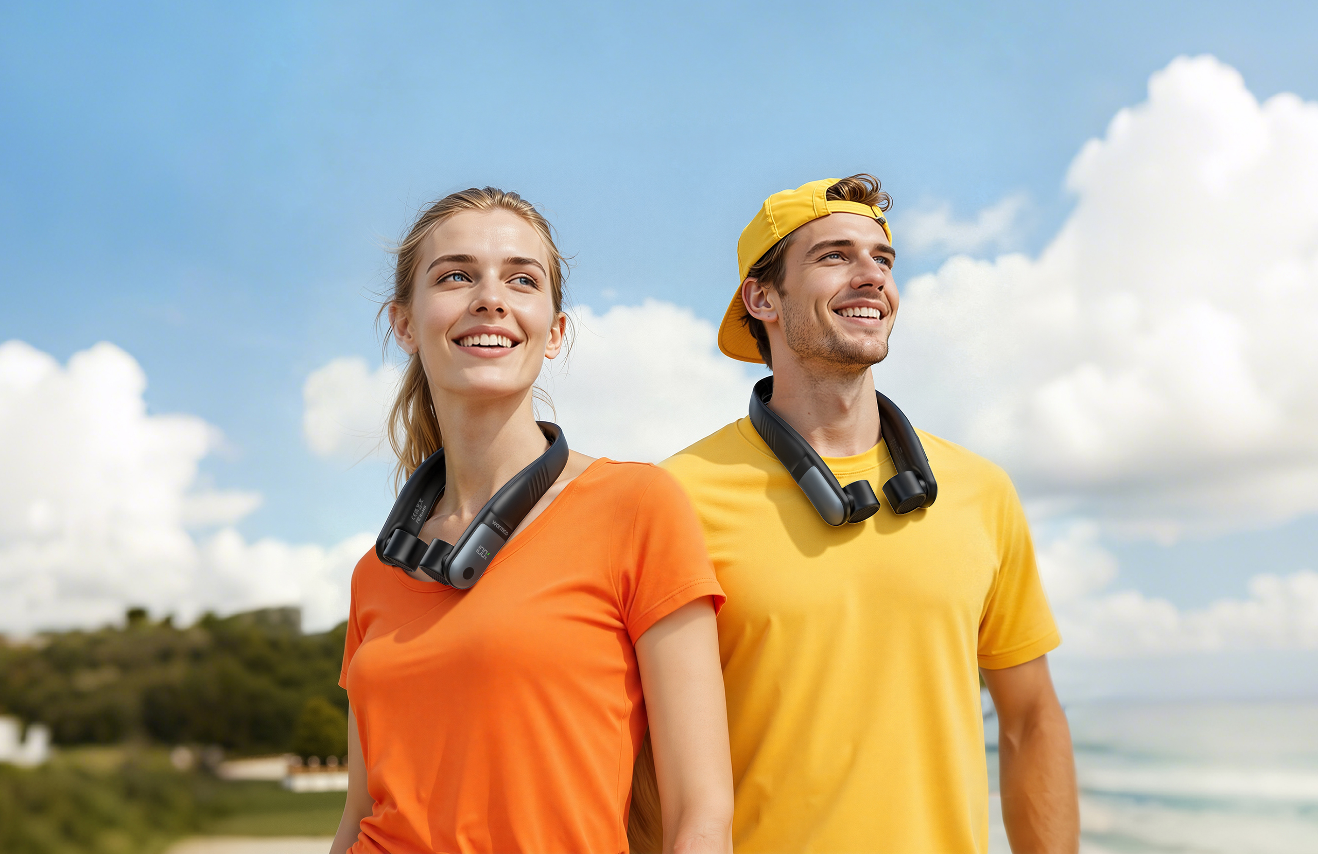 The Warmco N5 is a high-performance, smart wearable personal neck fan engineered to deliver unparalleled comfort. It features a flexible, lightweight structure, balanced counterweight system, and skin-friendly silicone material to ensure comfortable, burden-free wear during extended use. Equipped with a dual-core high-efficiency Brushless DC (BLDC) motor and a 360-degree surrounding airflow architecture, the N5 achieves silent operation (≤25dB) while providing highly efficient, uniform cooling across the neck and face. The Smart Adaptive Cooling Mode (ACM), which integrates multi-sensors and low-power pulse cooling technology, enables dynamic fan speed adjustment and precise temperature management, offering users a comfortable, healthy, and sustainable cooling experience.