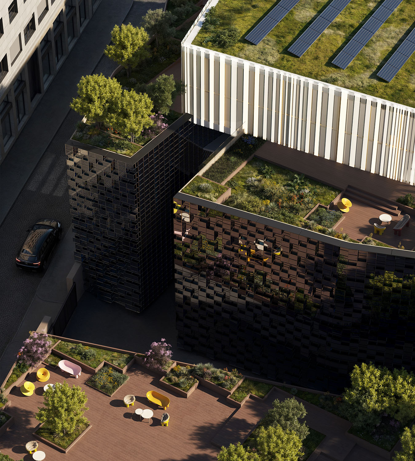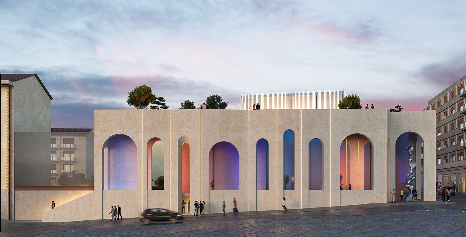 The design envisions a process of enhancement that, on one hand, aims to preserve as much as possible of what already exists, while on the other, introduces new technological components. The project—comprising a market, a covered square, and flexible spaces for cultural activities—is distinguished by the addition of a new rooftop volume whose geometric form arises from the dialogue between the cathedral’s parvis and the surrounding urban fabric. This new element hosts a panoramic bar and restaurant with a terrace overlooking the city.