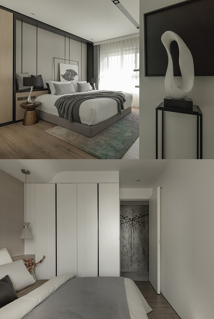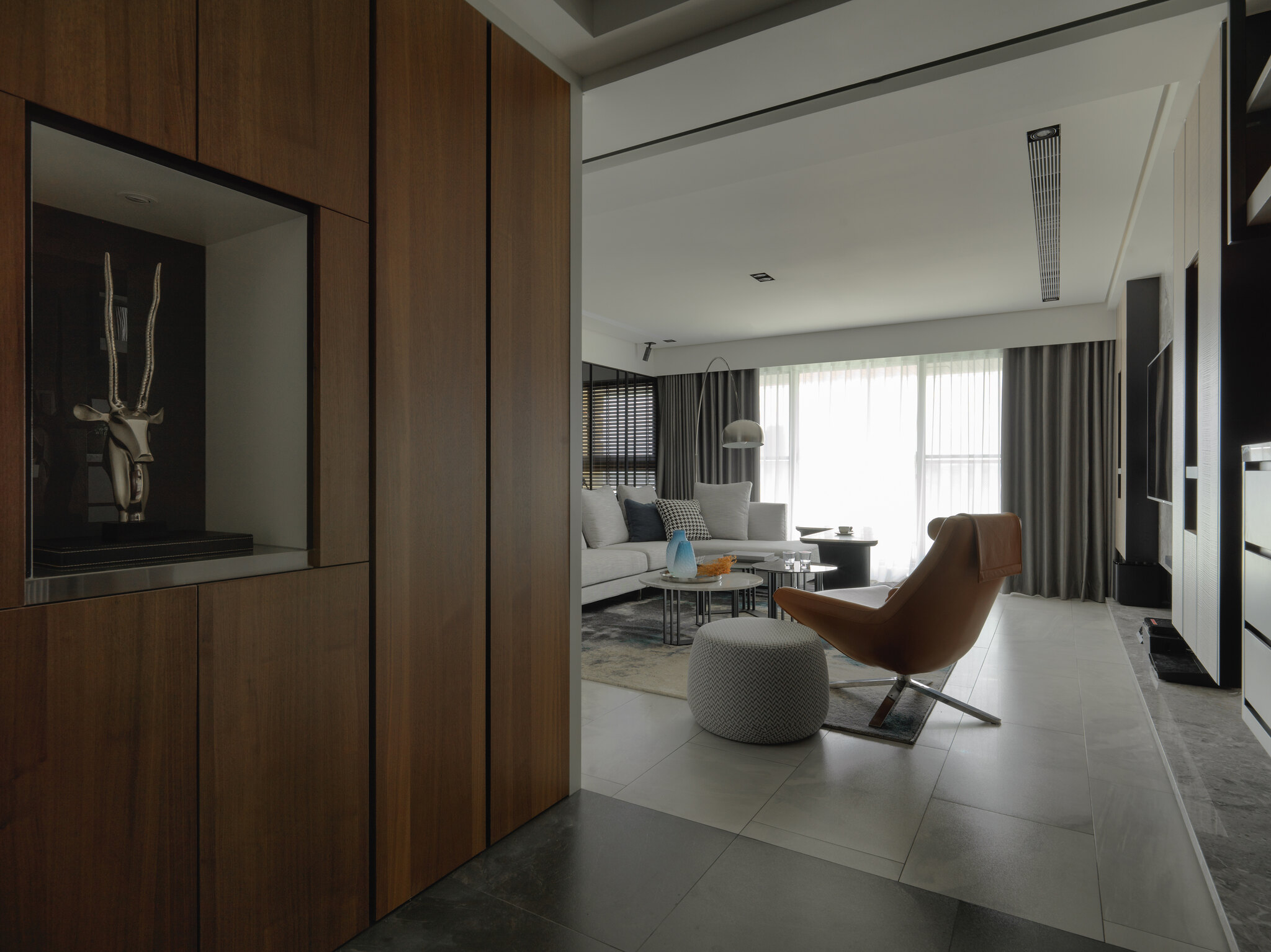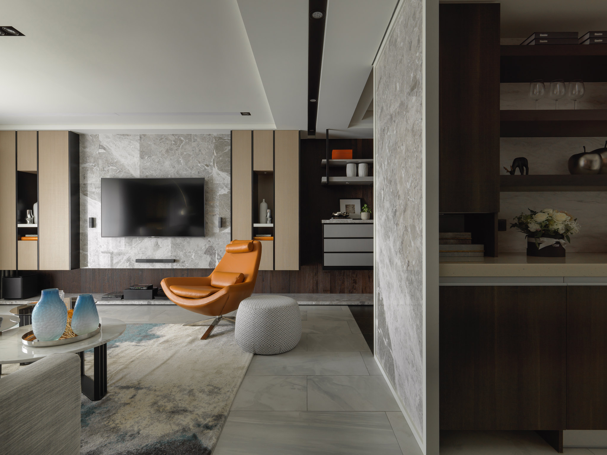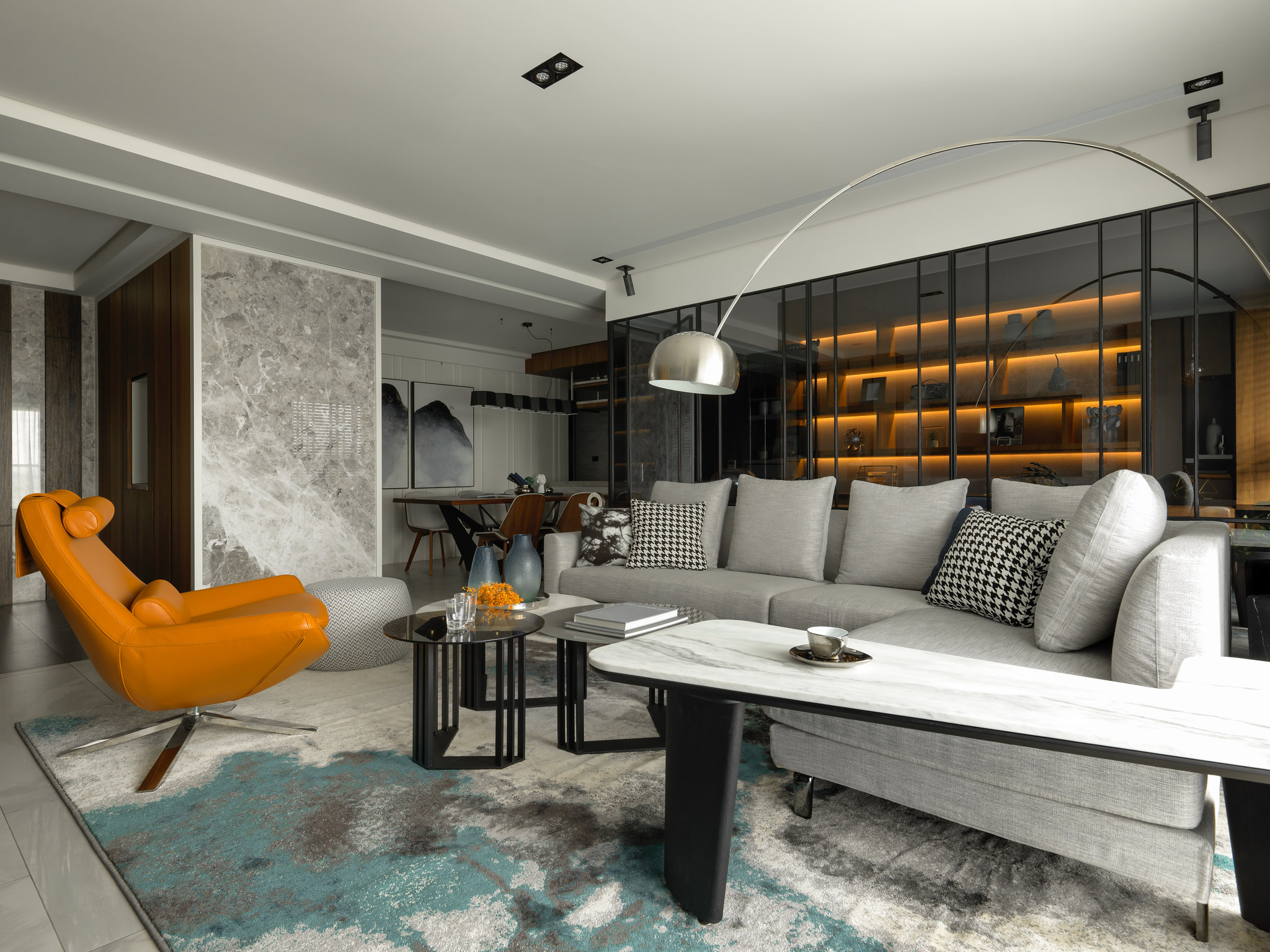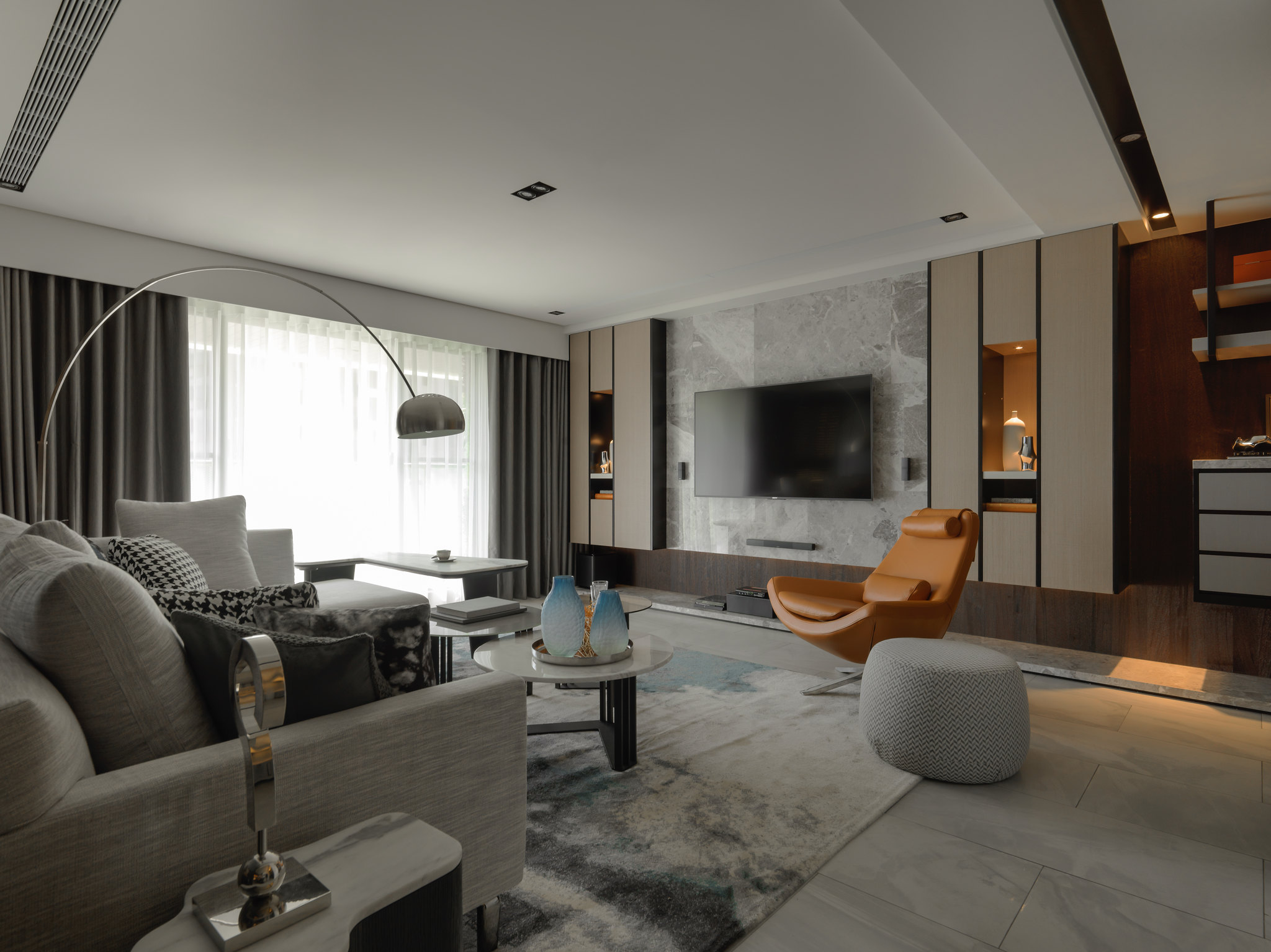 The owner's preference for natural materials and unique artistic taste inspired the designers to incorporate natural elements such as marble and natural wood textures, as well as the craftsmanship of ironwork in the public areas. The design uses warm tones as a base, complemented by gray accents, giving the living space a refined and understated charm.