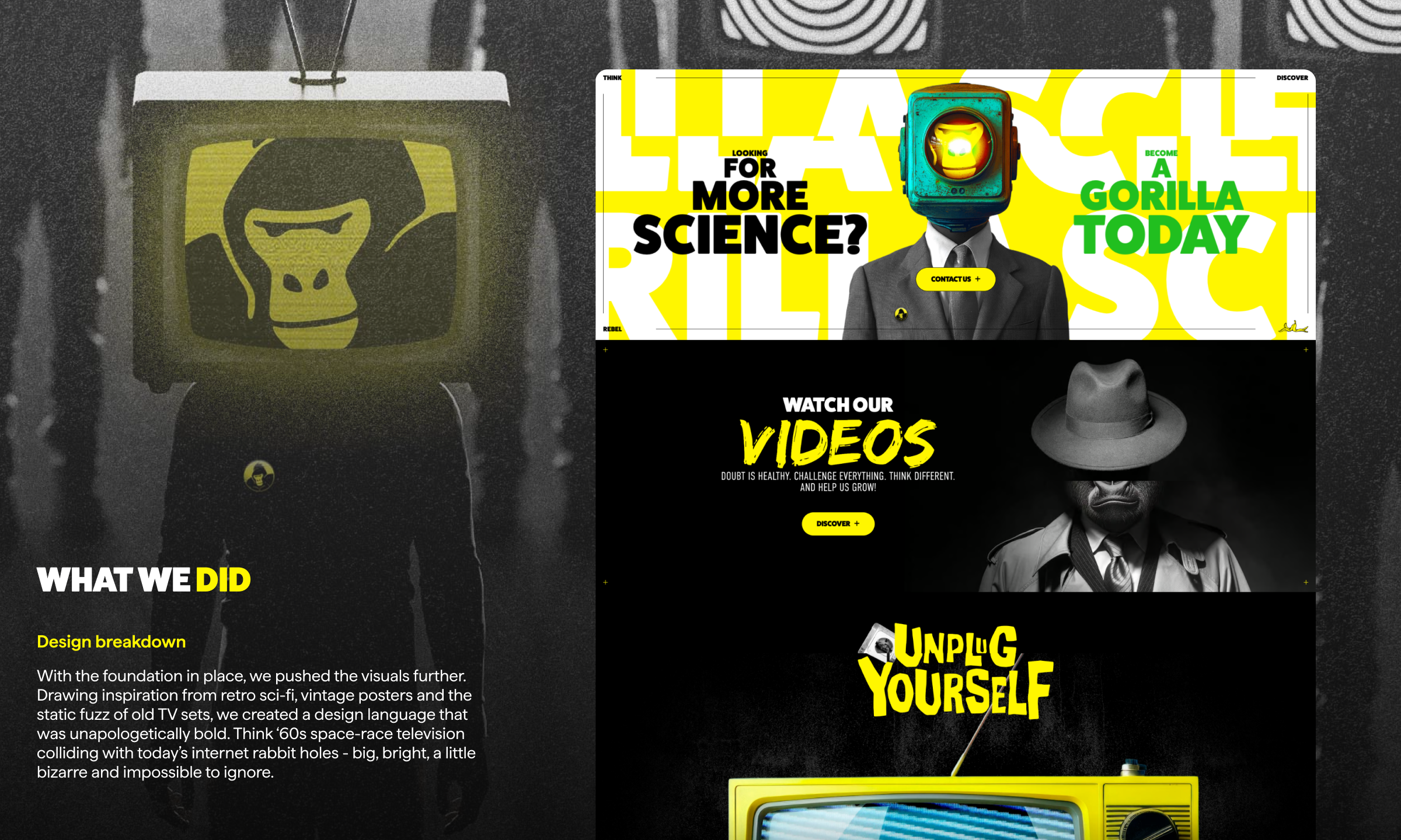 The result is a living, breathing web experience that captures the essence of Gorilla Science: an ever-curious journey through ideas, science and the unexpected.