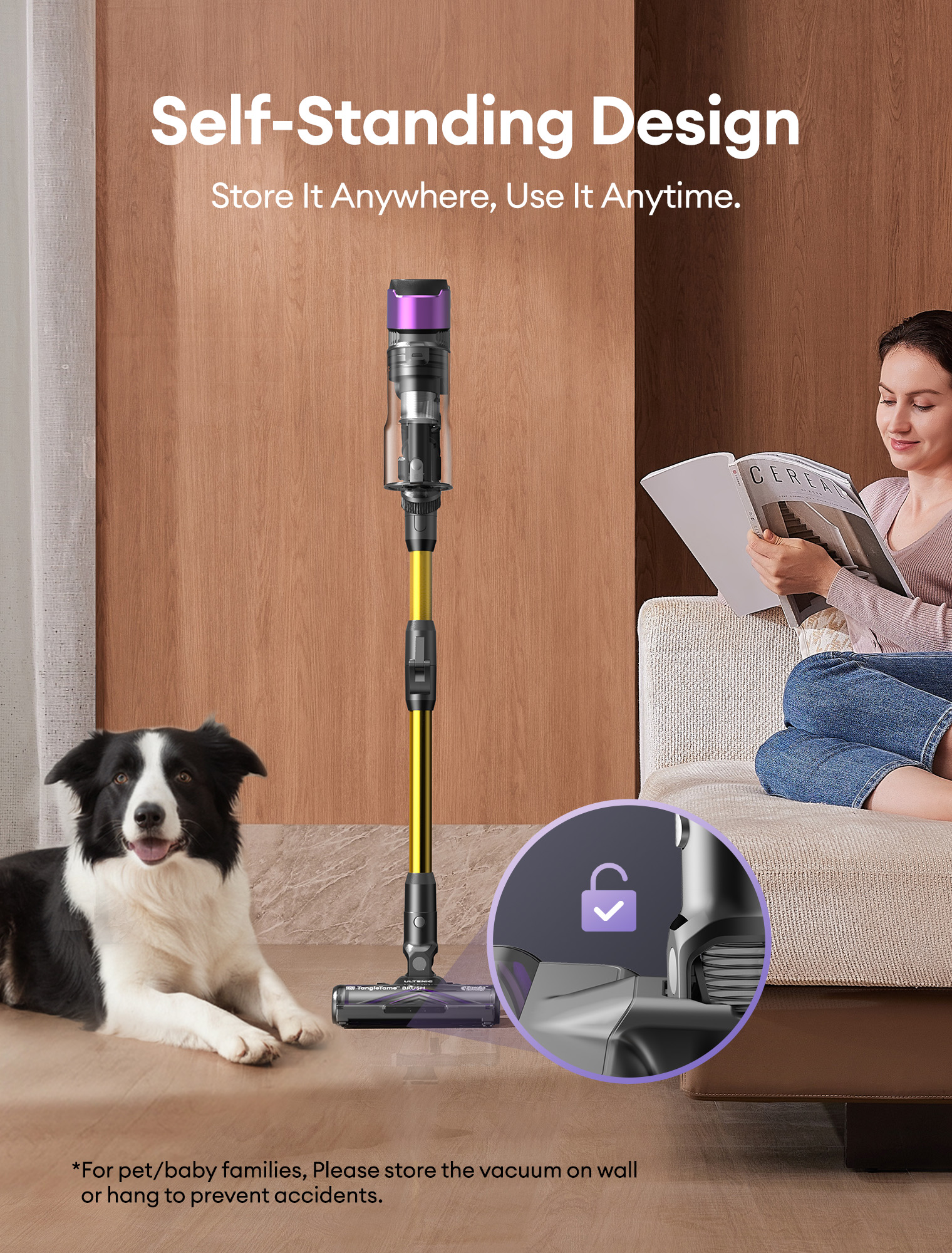Beyond its shape, the U20’s design reveals its intelligence. A built-in green light dust detection system illuminates particles invisible to the naked eye, especially in dim corners or under furniture. Paired with a clear countdown display that shows remaining runtime, users enjoy predictable and stress-free cleaning sessions. While Pet owners will appreciate the anti-hair-wrap brush design. Engineered to prevent fur entanglement, the brush combines textured surfaces and geometry that actively resist tangling, ensuring smooth, continuous performance. It reflects Ultenic’s attention to how users actually live and what nuisances they face day-to-day.