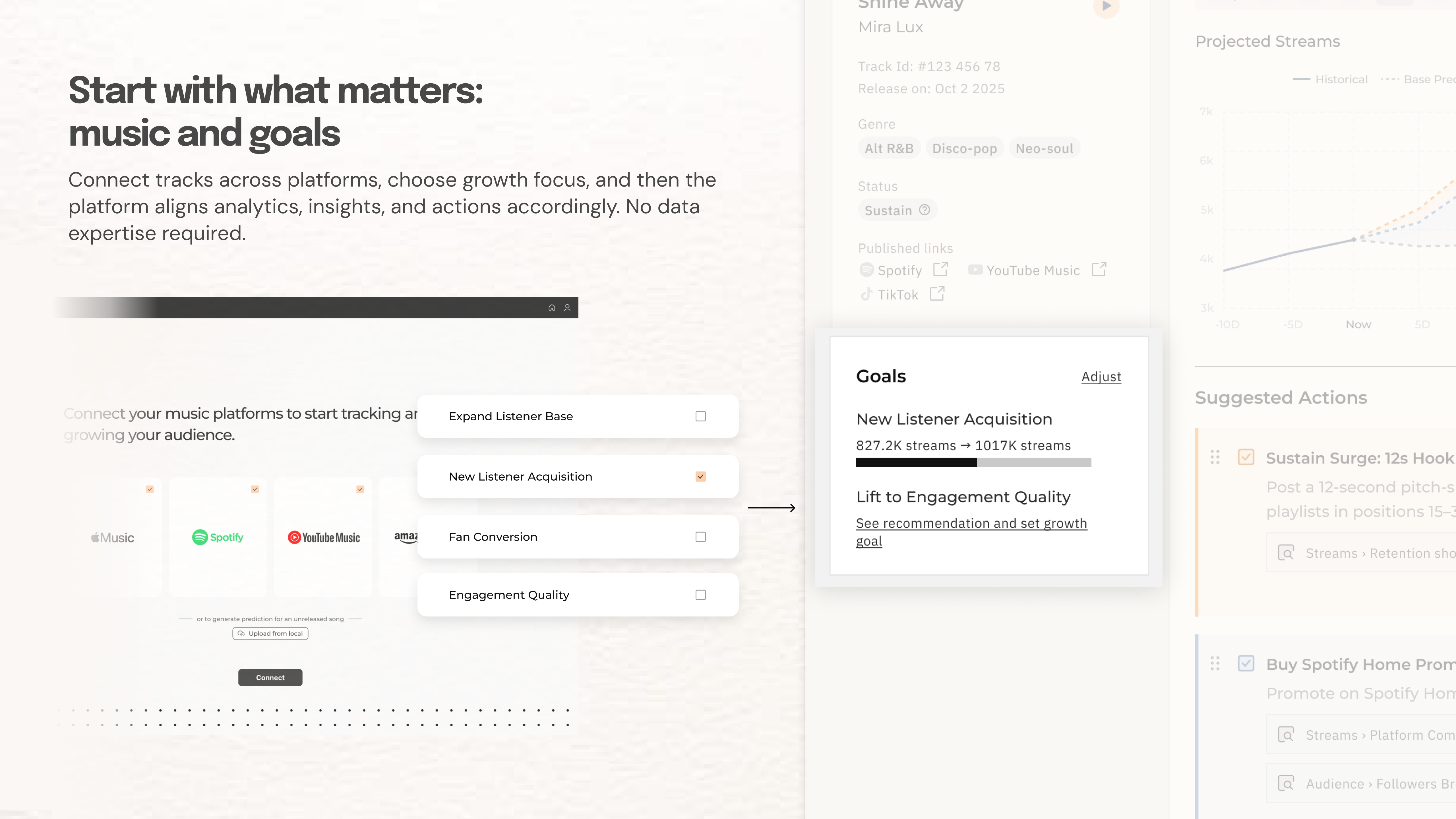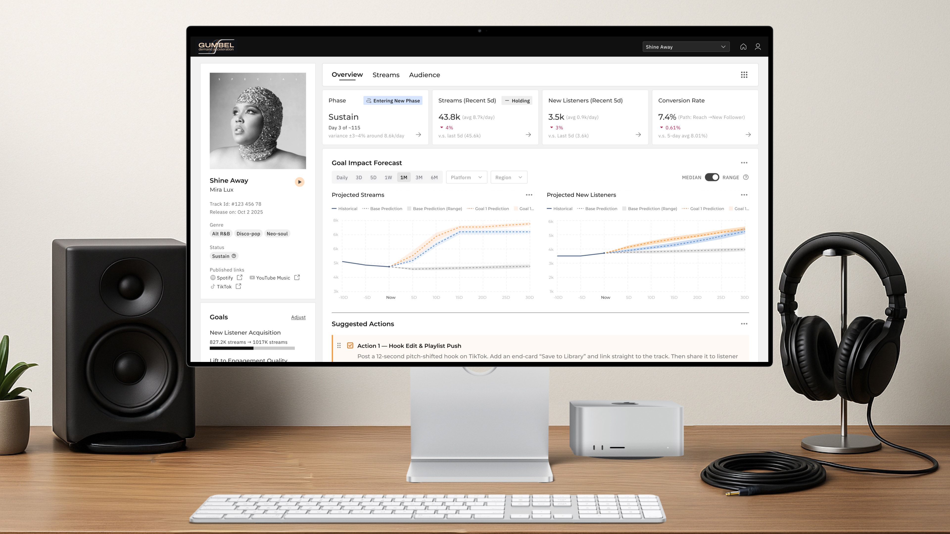 Independent artists often face professional analytics tools that are too dense for day-to-day creative use. Gumbel bridges that gap by translating complex metrics into timely, goal-oriented actions. Whether the artist’s aim is to grow new listeners, deepen fan loyalty, or convert reach into followers, the system aligns insights with intent. Each recommendation is paired with projected lift, turning raw data into strategy.