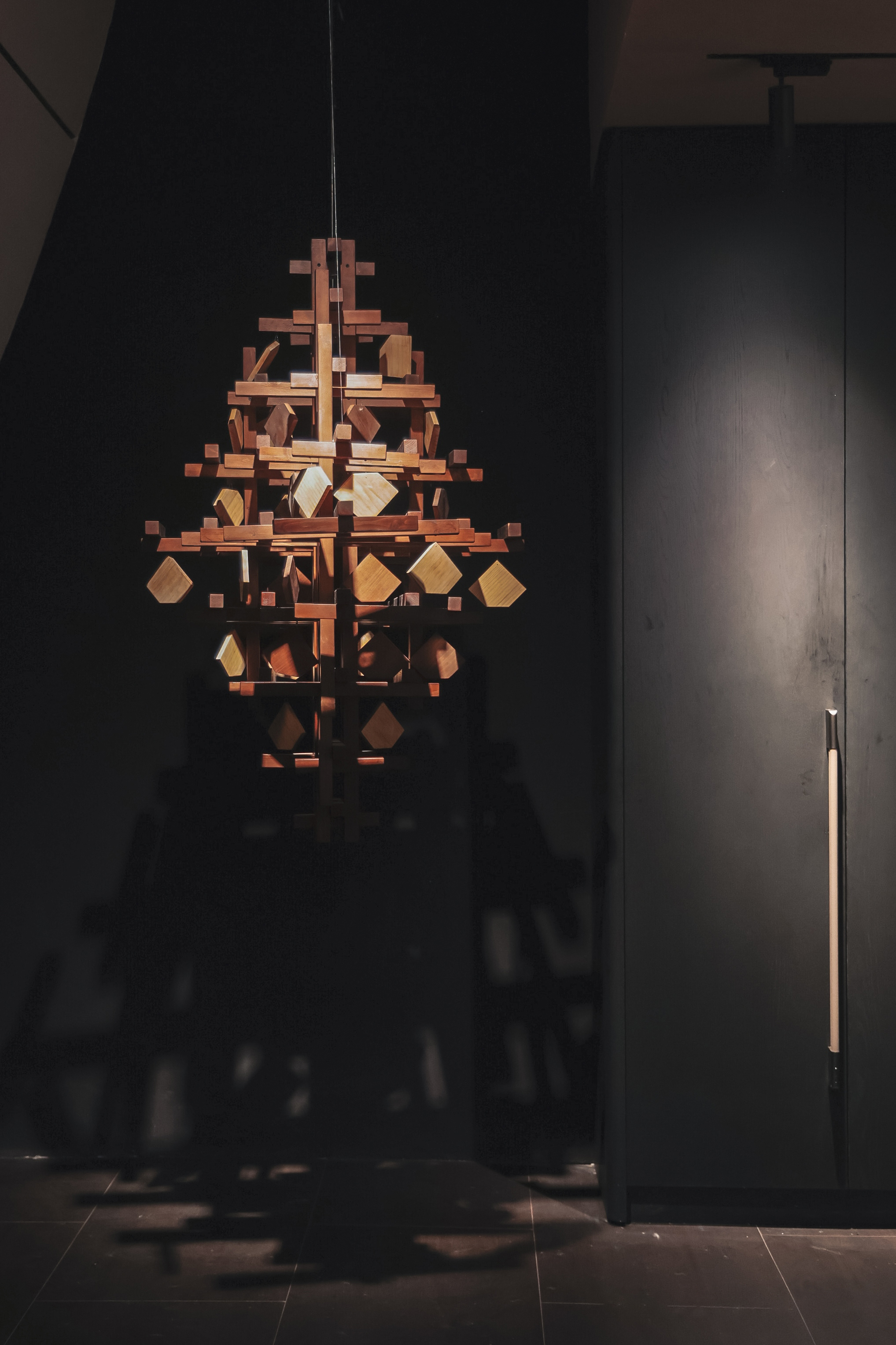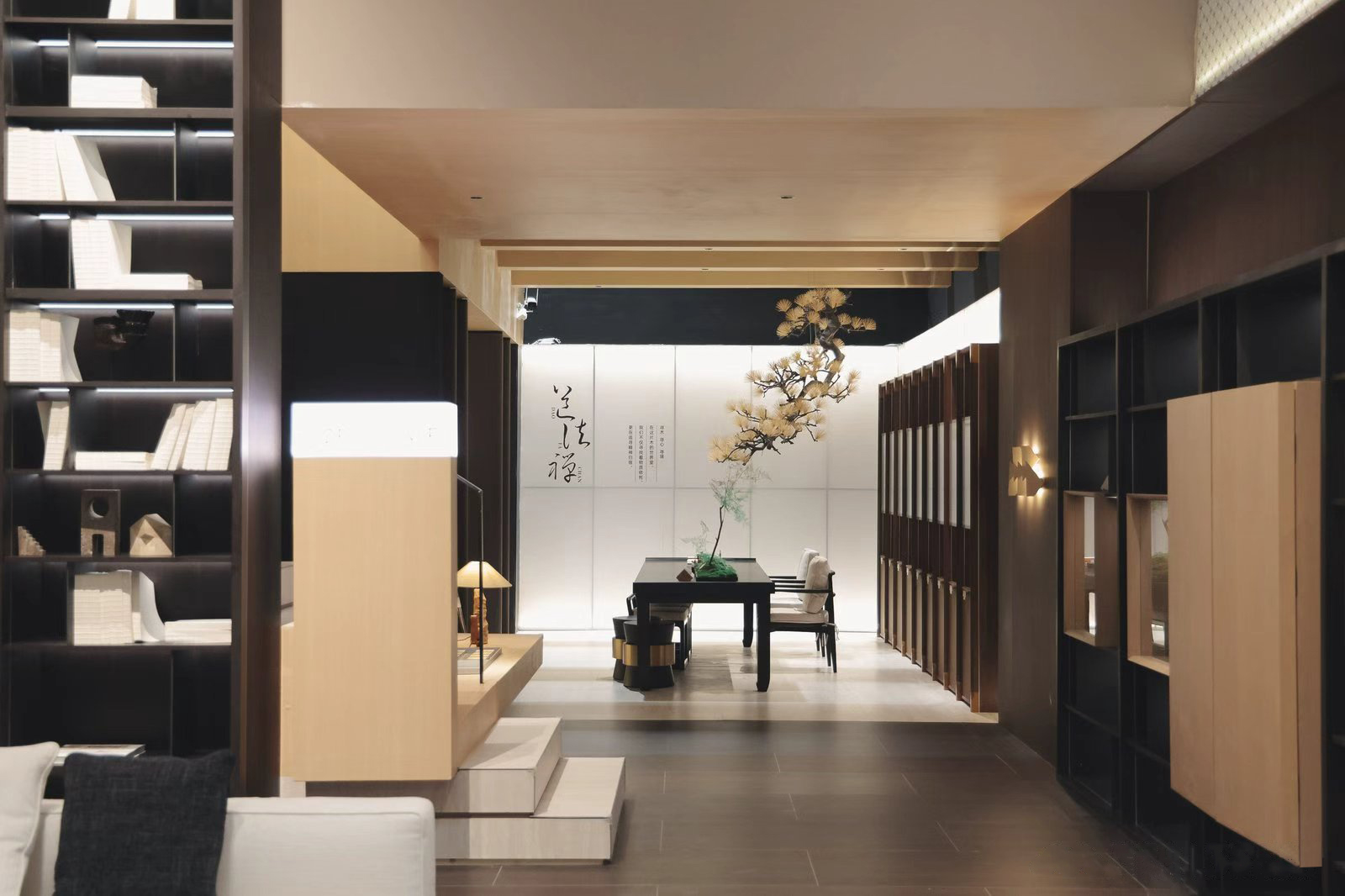 With the theme of "Seeking the Essence of Wood · Building a Home with Wood · Ode to Wood", this project takes wood as the core material for the overall space, supplemented by elements such as metal, fabric, and stone, forming a pattern of "dialogue between wood and other materials". A large number of wooden sculptures and utensils are selected as decorations in the exhibition hall, which not only echo the theme but also convey the warmth of handcraftsmanship and nature. The original decorative paintings extract shapes and lines from architectural elements; together with architectural manuscripts, they integrate rationality and sensibility through abstract compositional language, endowing the space with greater ideological depth and artistic appeal.