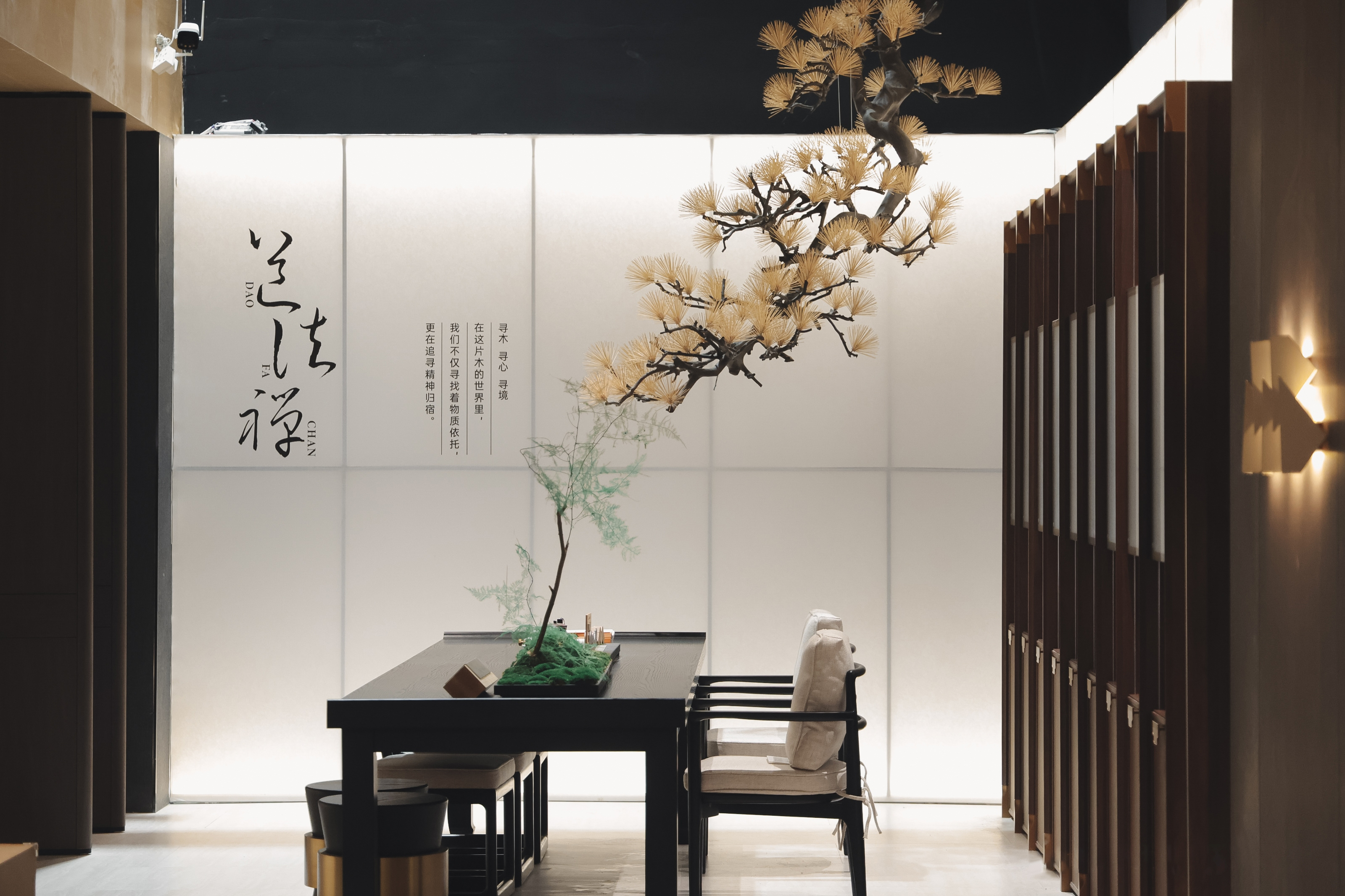 The Oriental tea room adopts dark walnut wood, complemented by metal details, expressing the contemporary interpretation of tranquility, restraint, and Oriental etiquette.