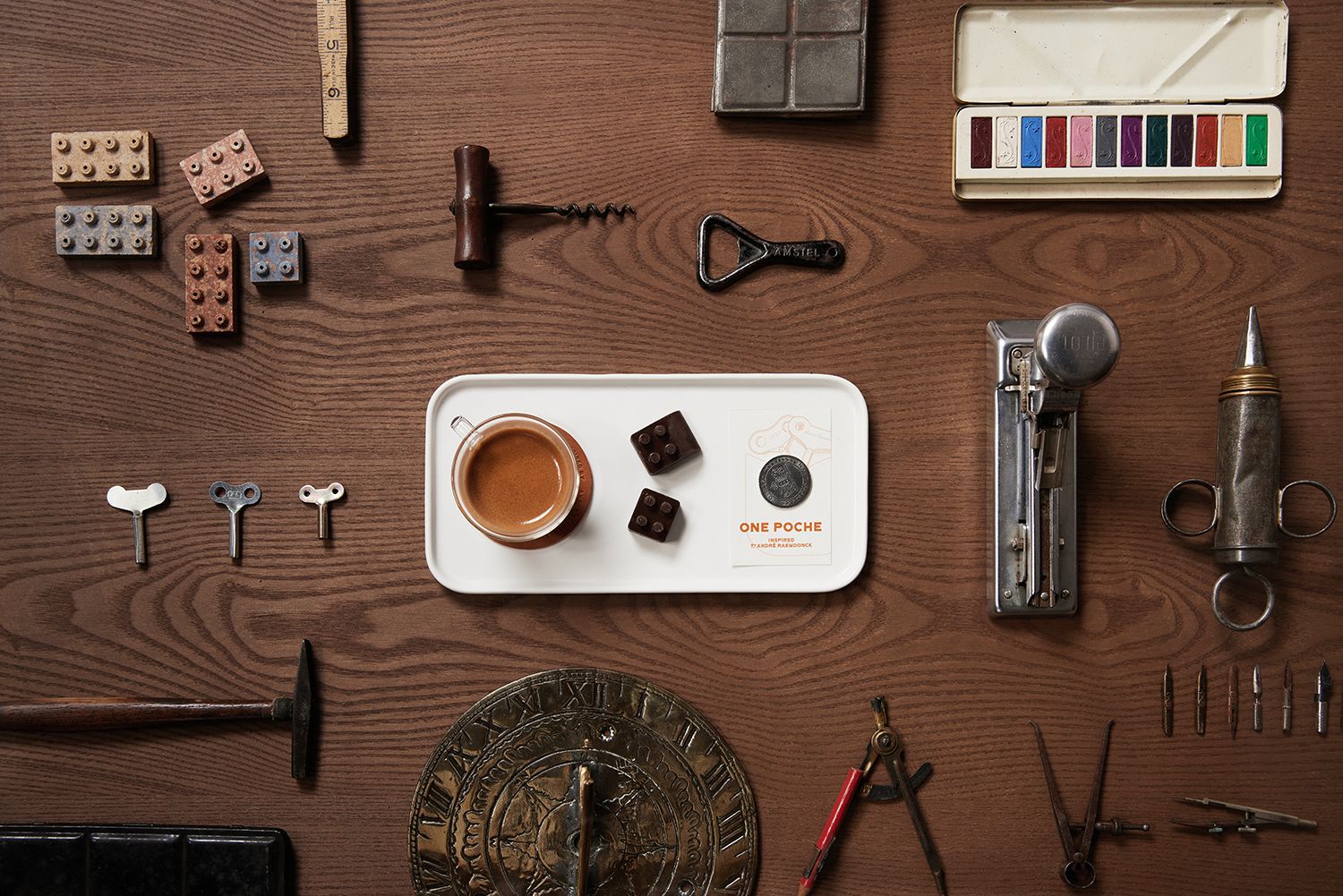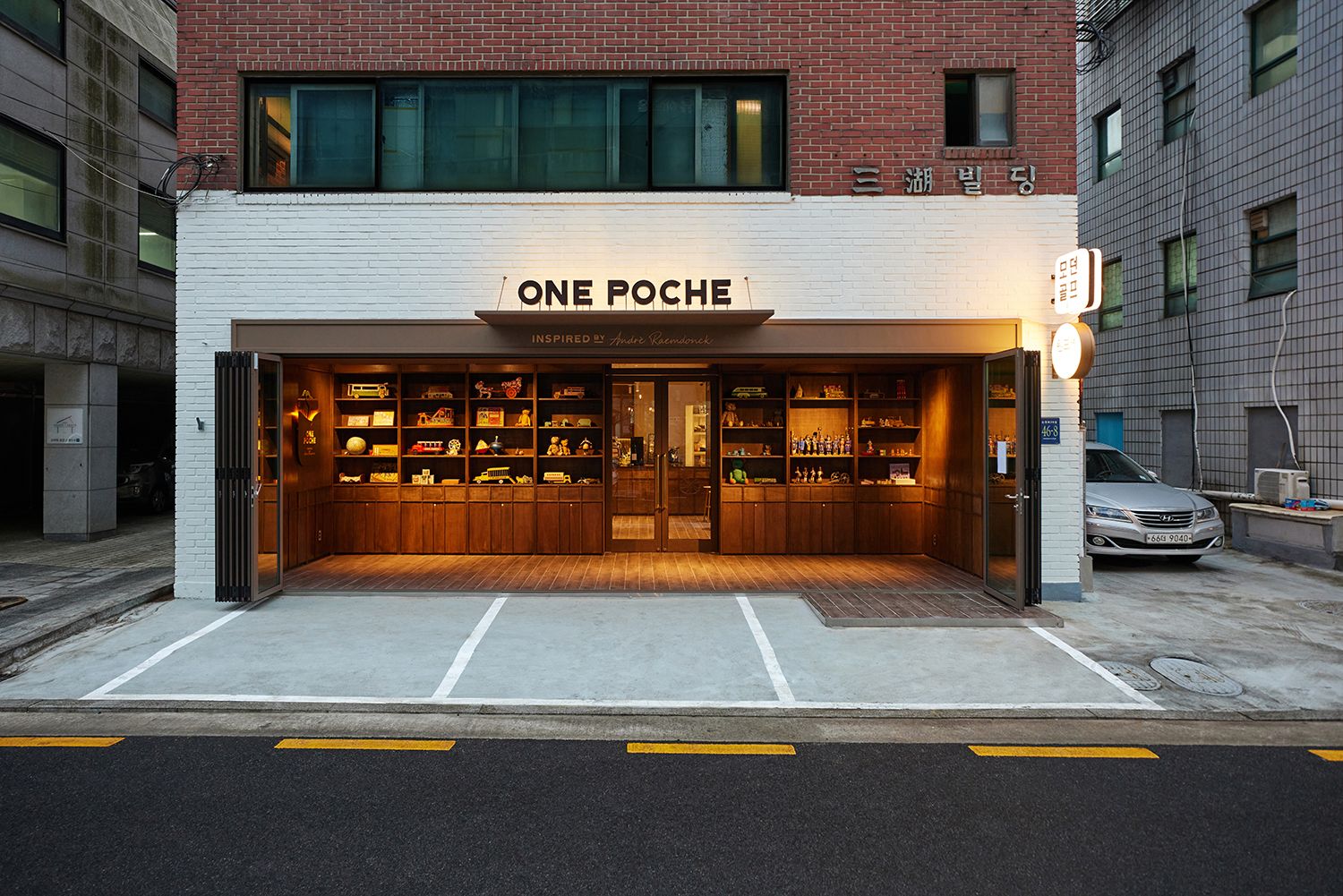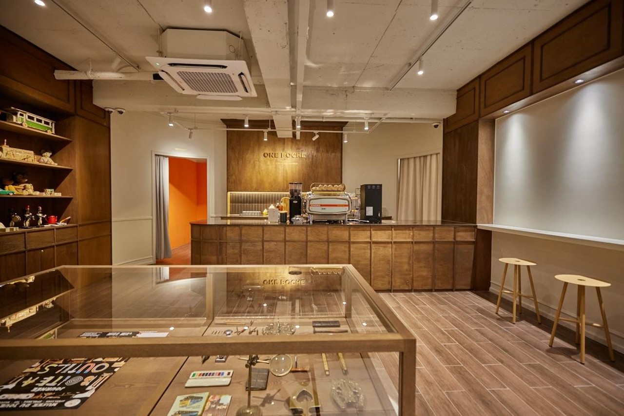 One Poche is a cultural espresso bar and gallery designed as a social salon celebrating the spirit of collecting and sharing. The name comes from the French word poche, meaning “pocket” — a metaphor for the small, precious things we keep close, take out, and pass on. Conceived as an architectural homage to a Belgian toy collector known simply as “A,” the project draws inspiration from his warm tradition of welcoming visitors by pulling wind-up toys, chocolates, or tangerines from his pockets to share.