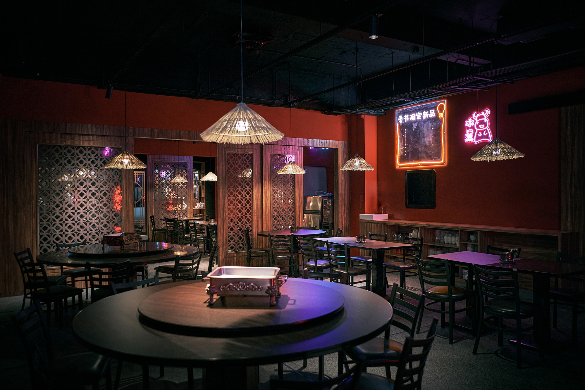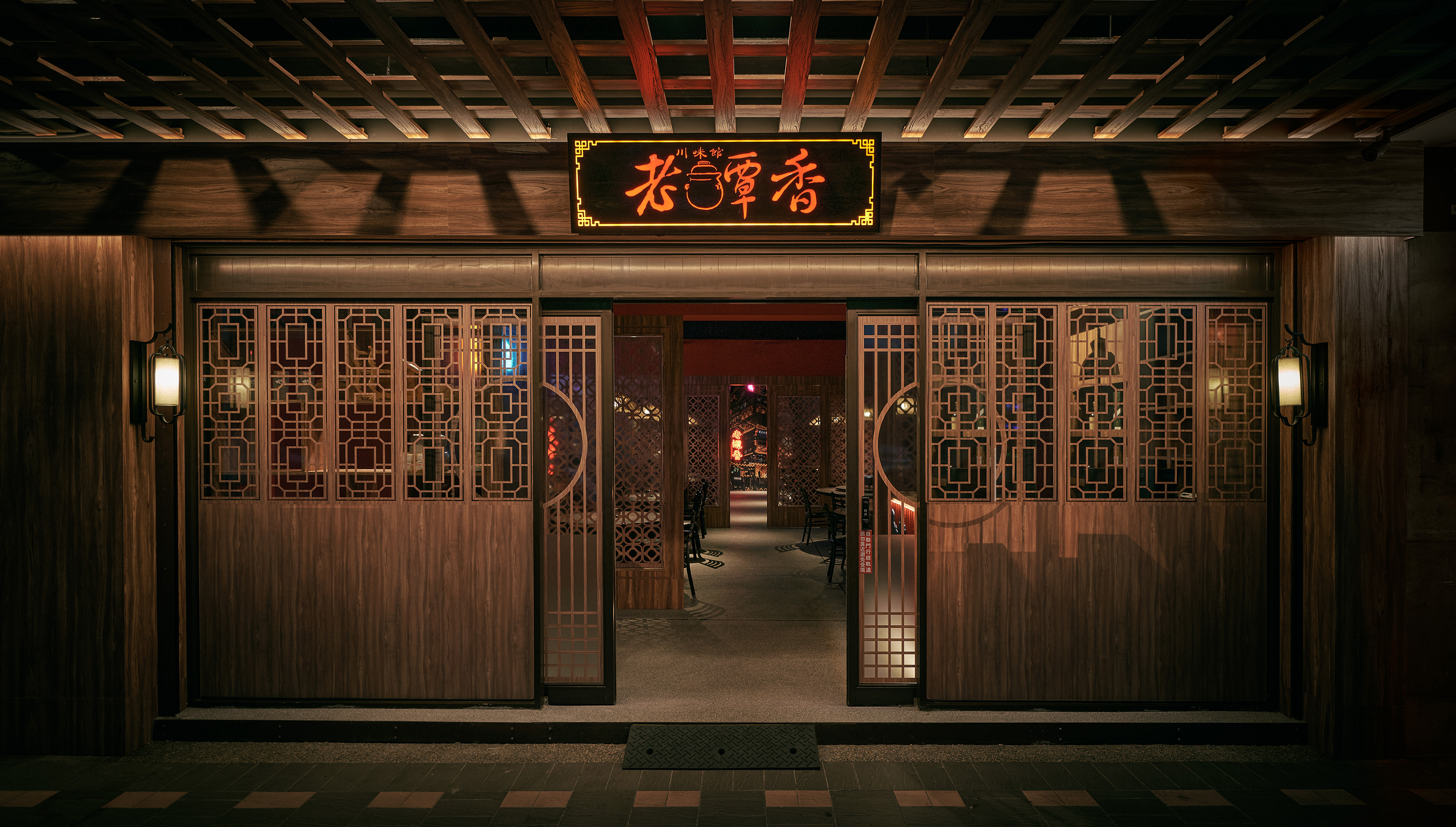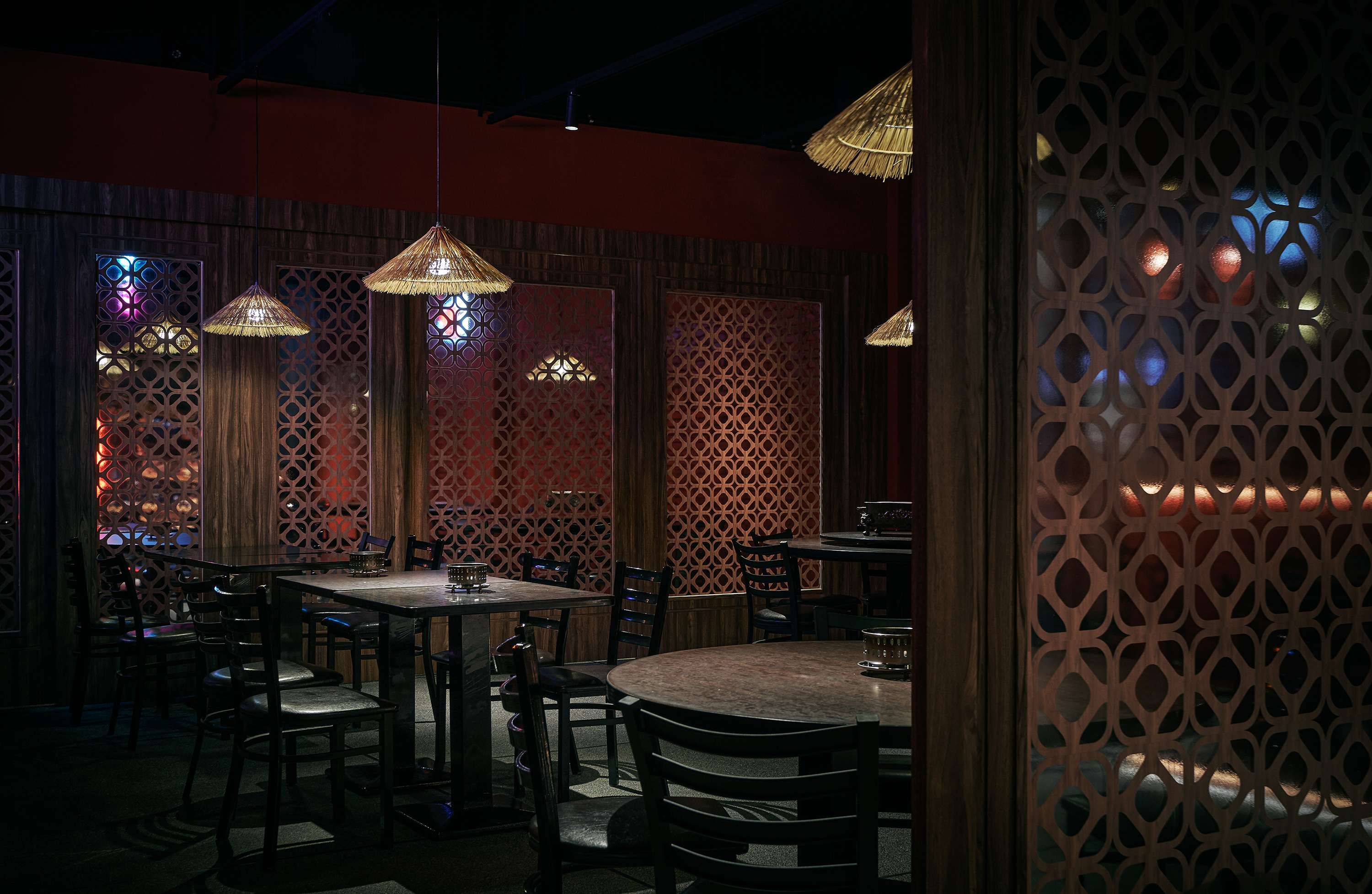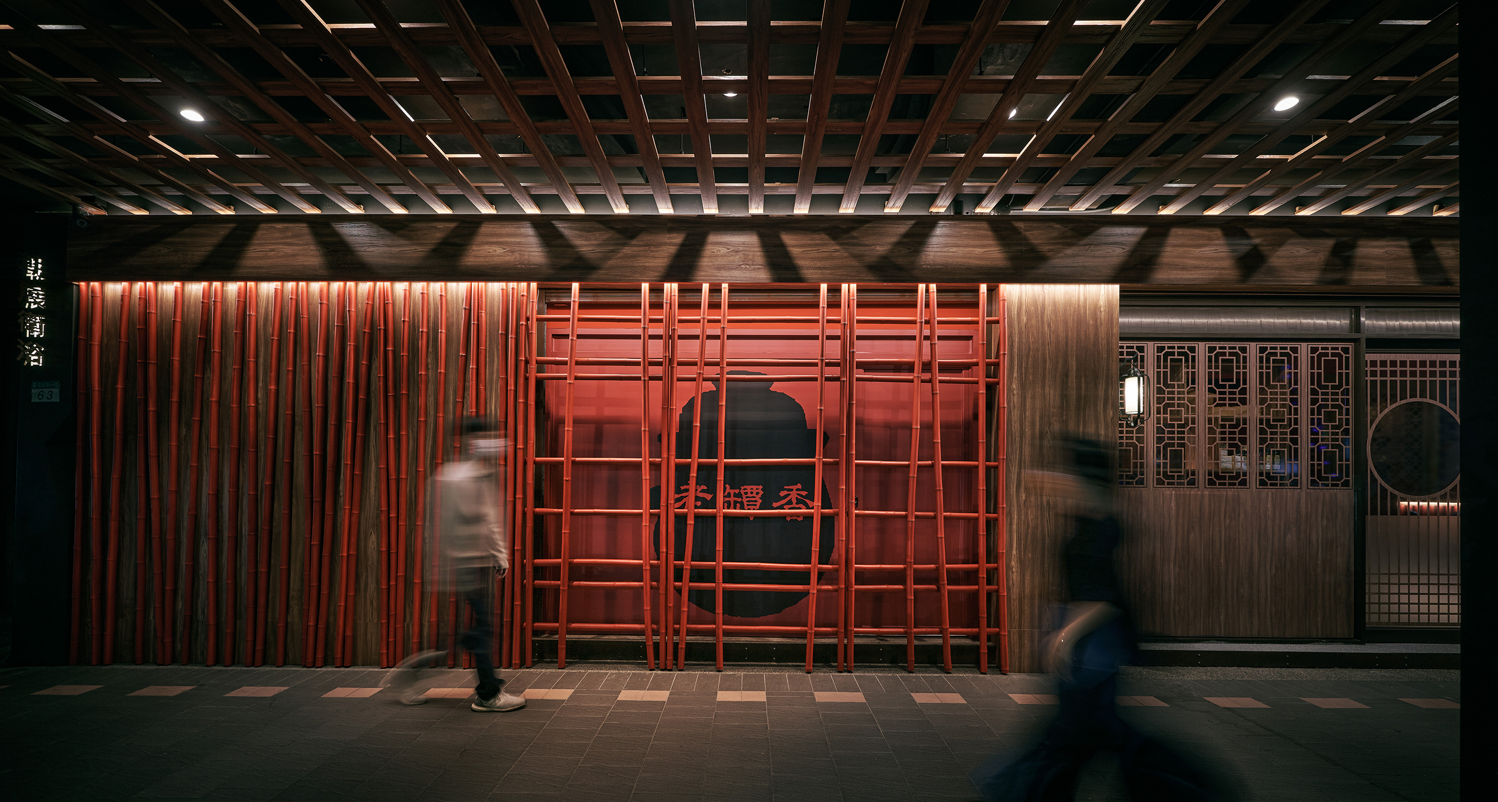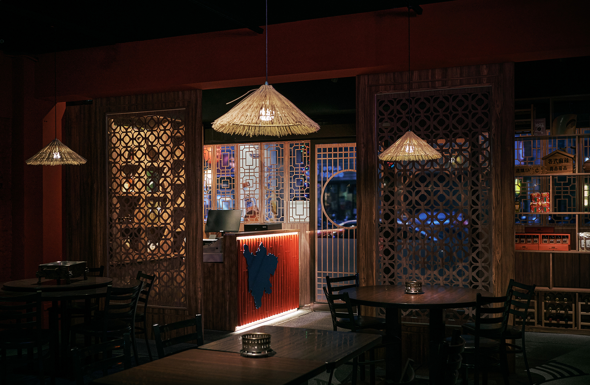 Warm wood tones carry the familiarity of home, like the slow simmer of flavor, while the juxtaposition of iron and glass introduces modern transparency and tension. Together, they balance tradition and the present age. At the entrance, a bamboo-joint featured counter, illuminated by linear lighting, symbolizes the resilience and vitality of Sichuan’s bamboo culture. Behind it, an openwork patterns glow under light like fermentation bubbles rising from an old crock—subtly suggesting the taste of time. Rather than relying on decorative excess, the design conveys atmosphere through material interplay and lighting performance, evoking the heat, depth, and human warmth inherent in Sichuan cuisine. The moment one steps inside, it feels like entering an extended taste experience.