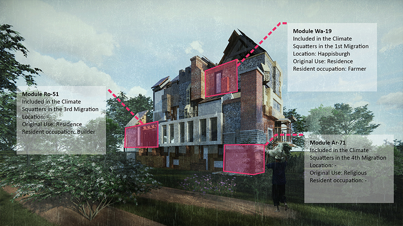 This project takes Happisburgh - a coastal village experiencing aggressive coastal erosion, as a hypothetical site to explore a system to enable the communities to travel intelligently as modern squatters through the use of a platform, enabling them to be active agents in their process of relocation, habitation and migration.