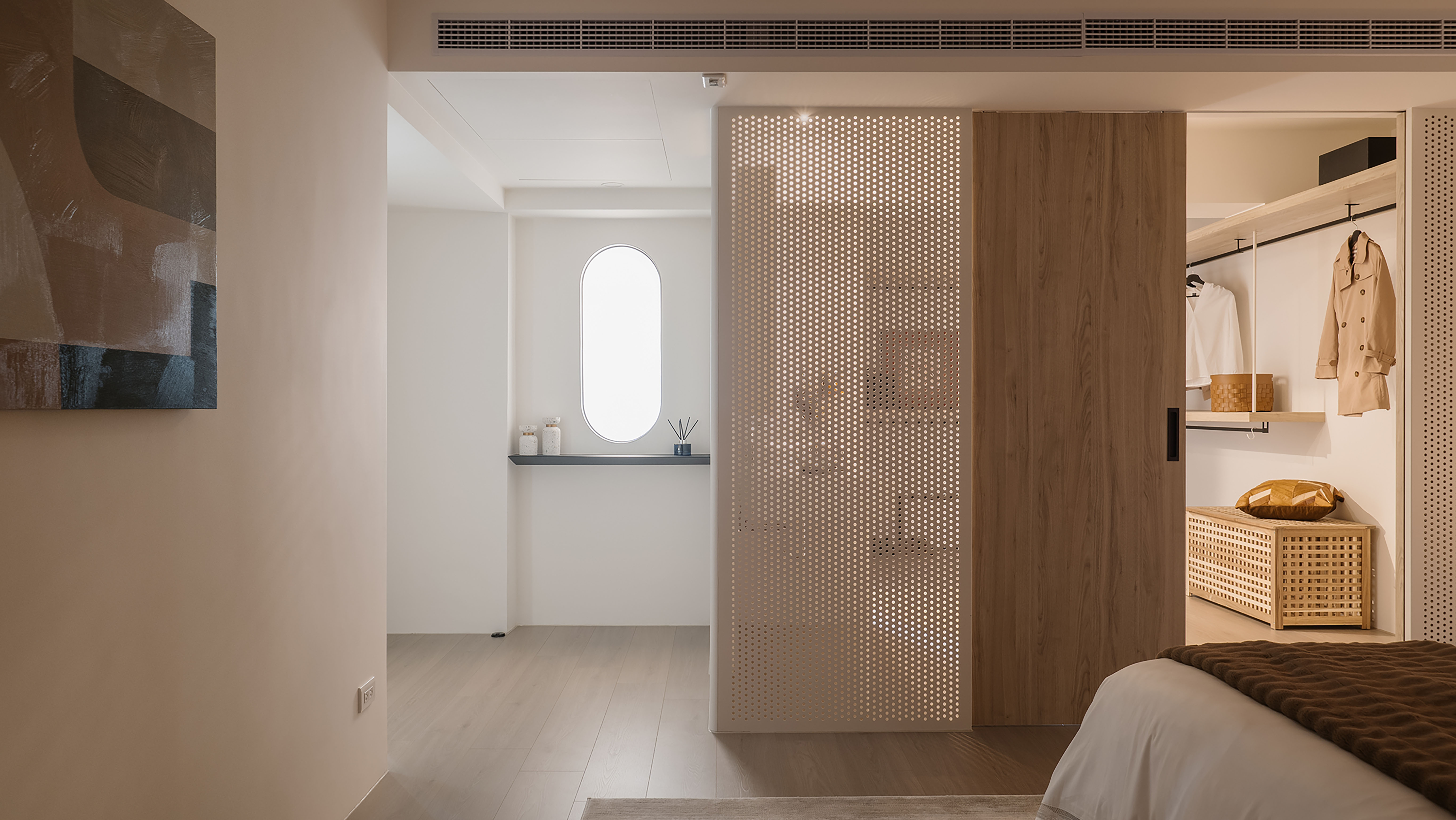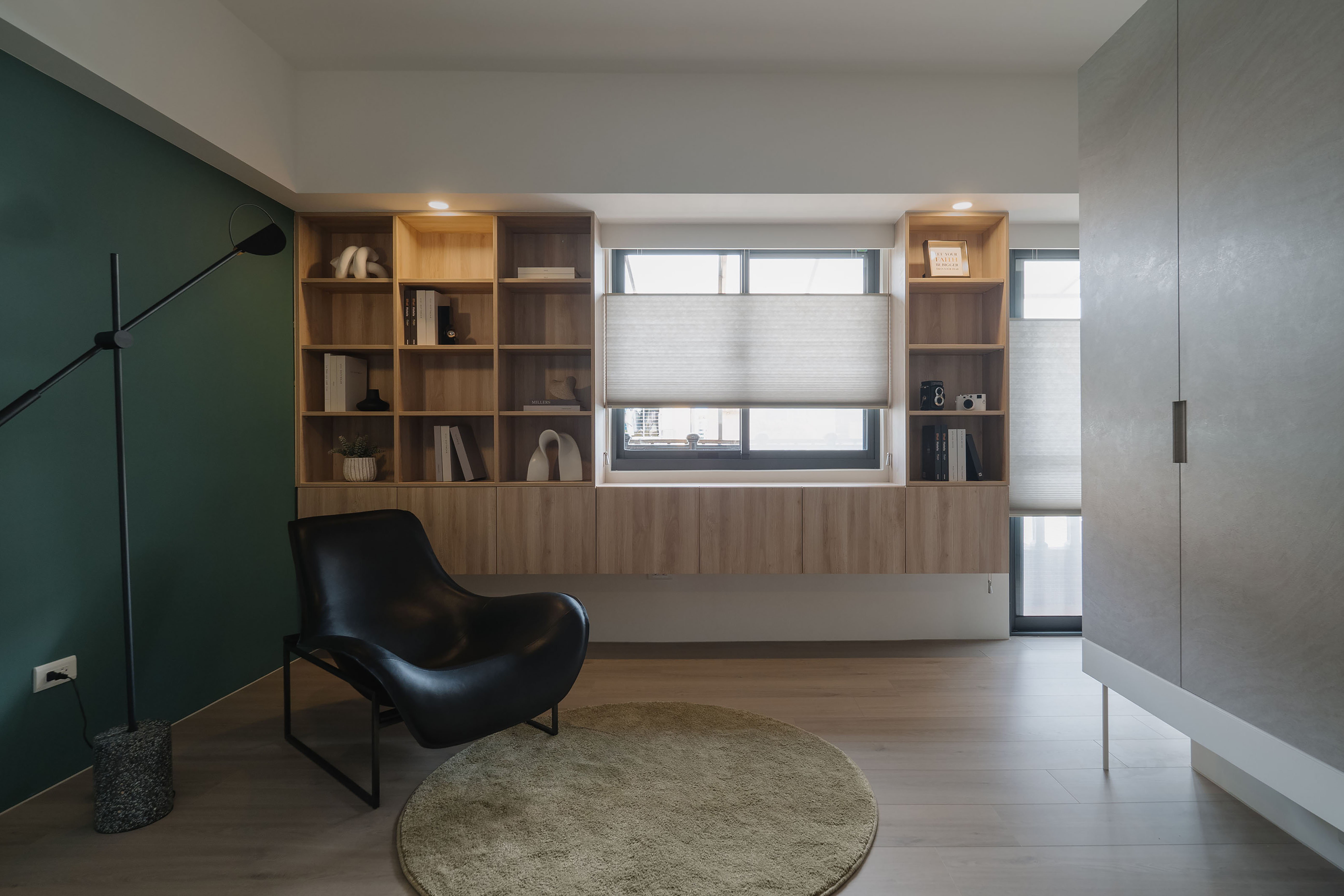 Storage design follows the principle of “hidden yet present.” Handle-less cabinets create clean, uninterrupted surfaces, while rounded edges reduce safety concerns. A thoughtful combination of open display and concealed storage provides room for daily objects as well as treasured keepsakes, allowing memories and personal stories to form the home’s most distinctive landscape.